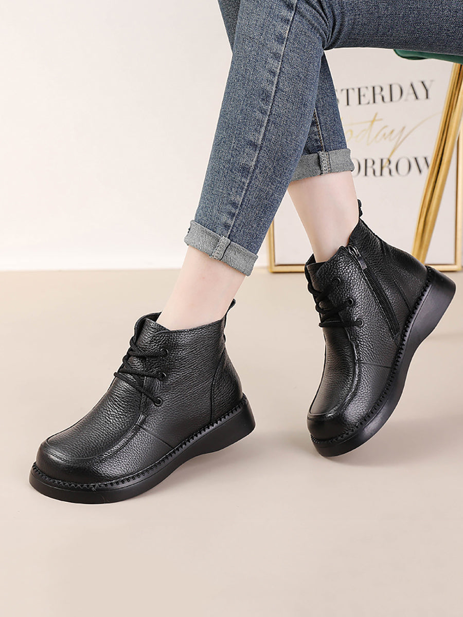 Women Winter Genuine Leather Fleece-lined Ankle Boots