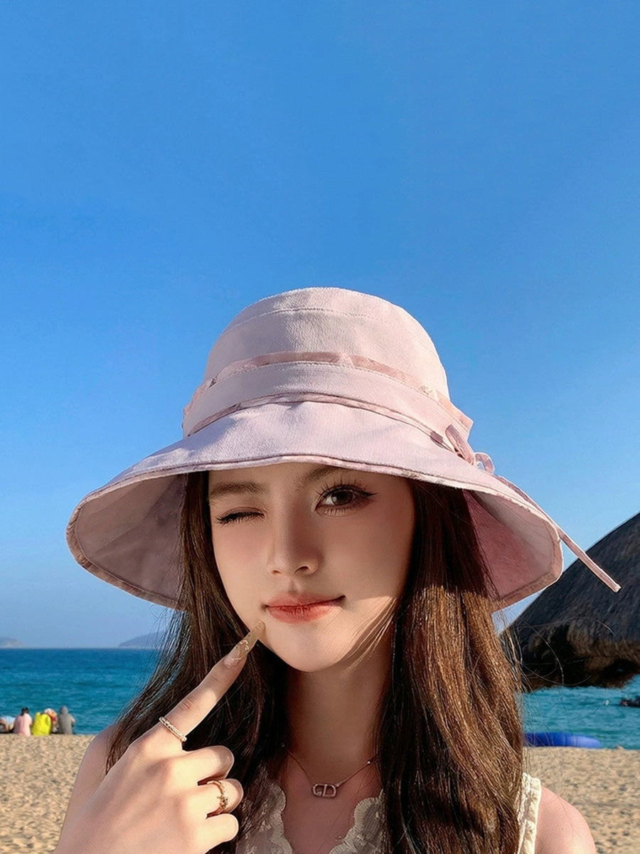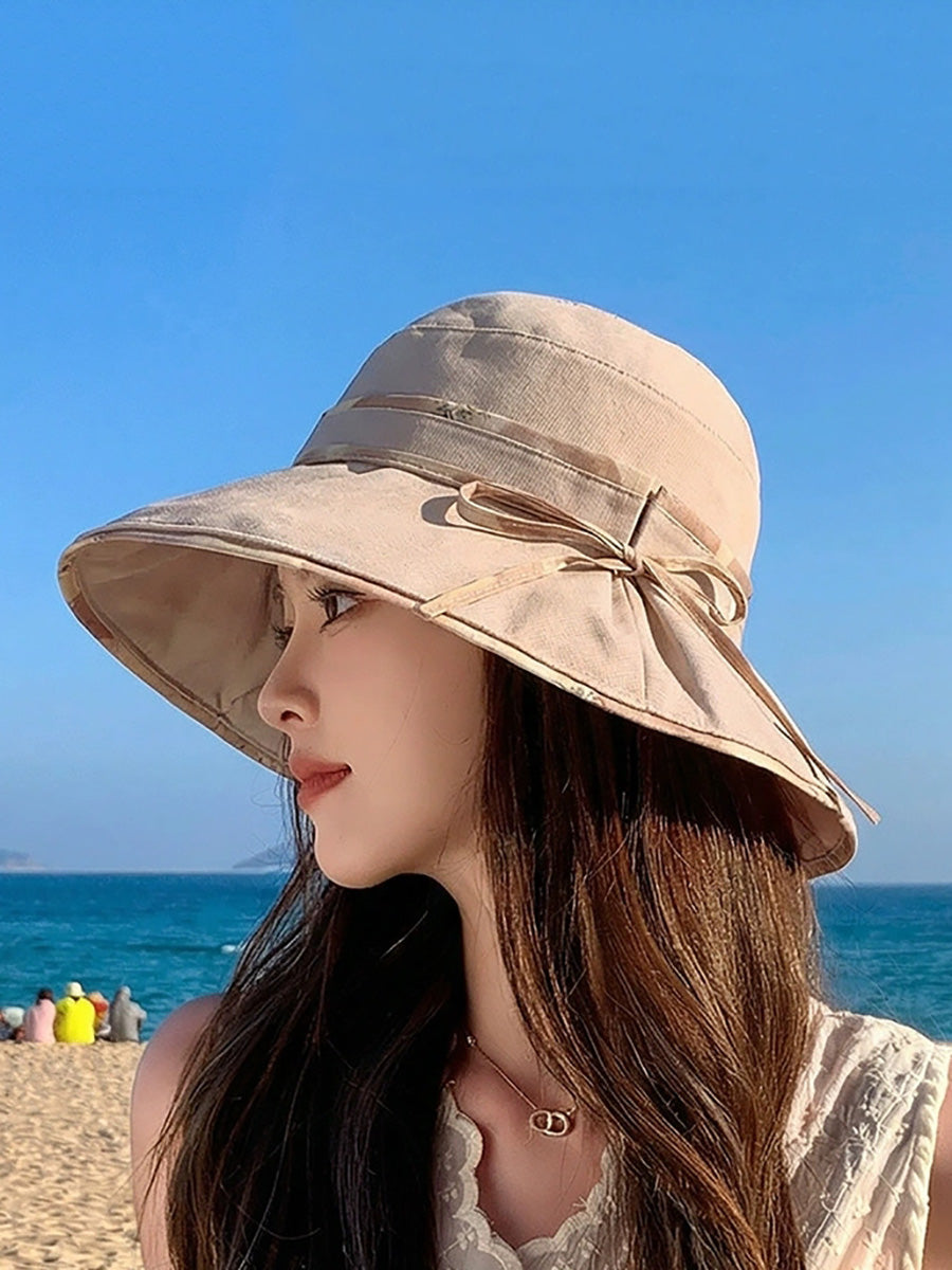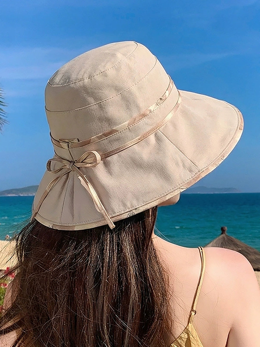 Women Summer Pure Color Sunproof Travel Hat