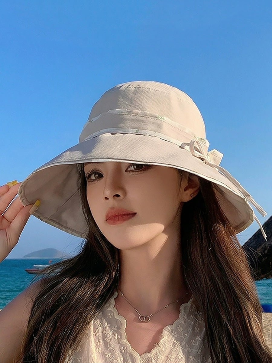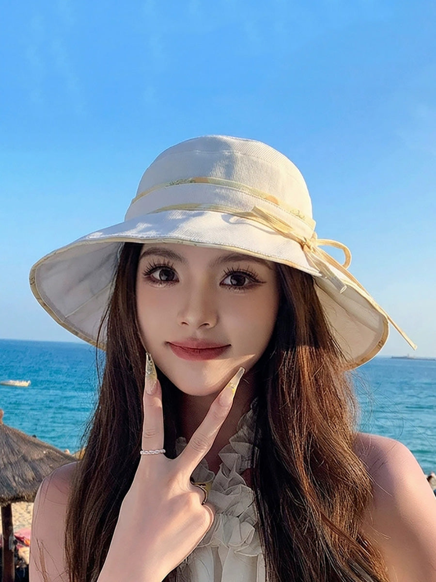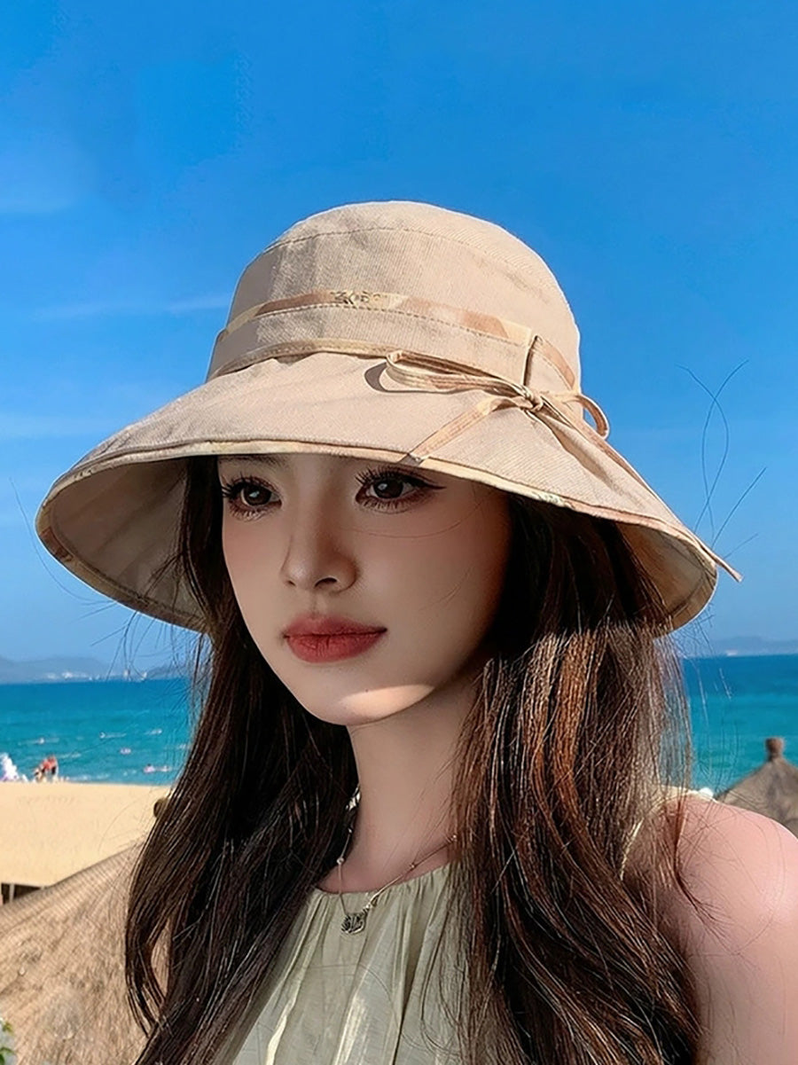 Women Summer Pure Color Sunproof Travel Hat