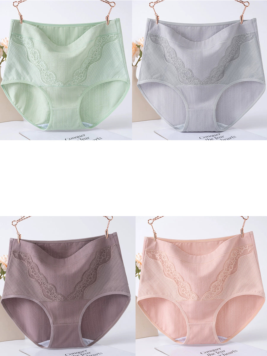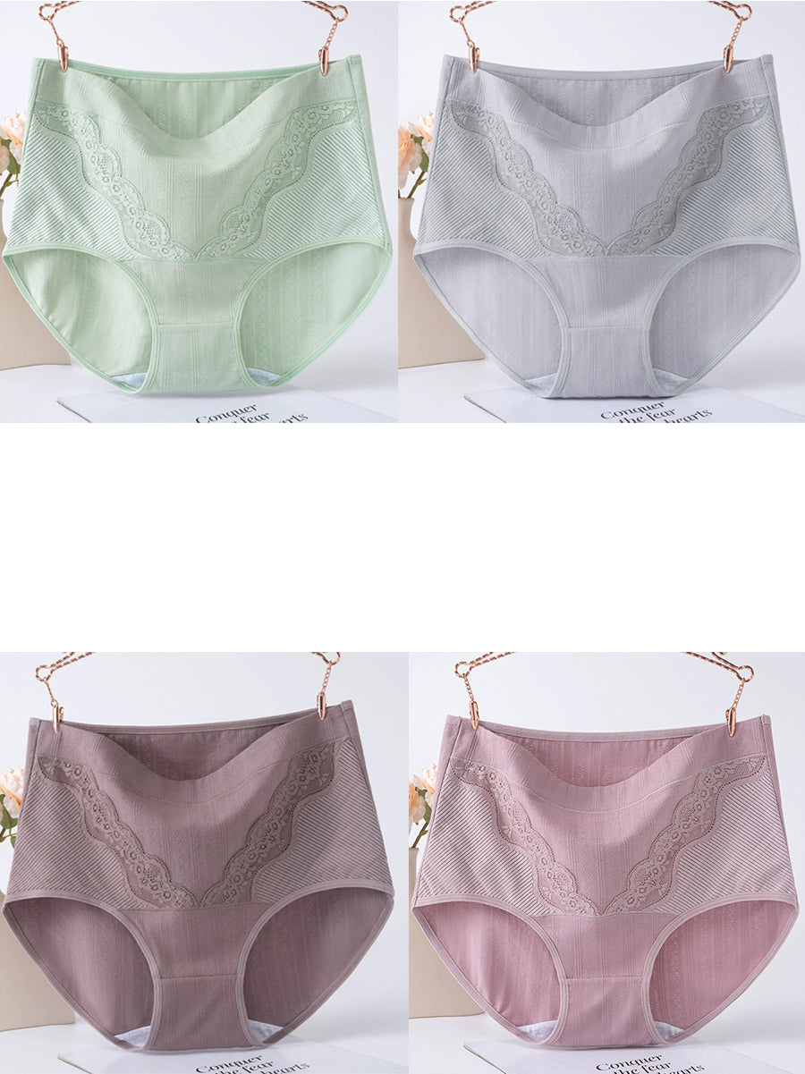 4 Pieces Women Artsy Lace Spliced High Waist Underwear