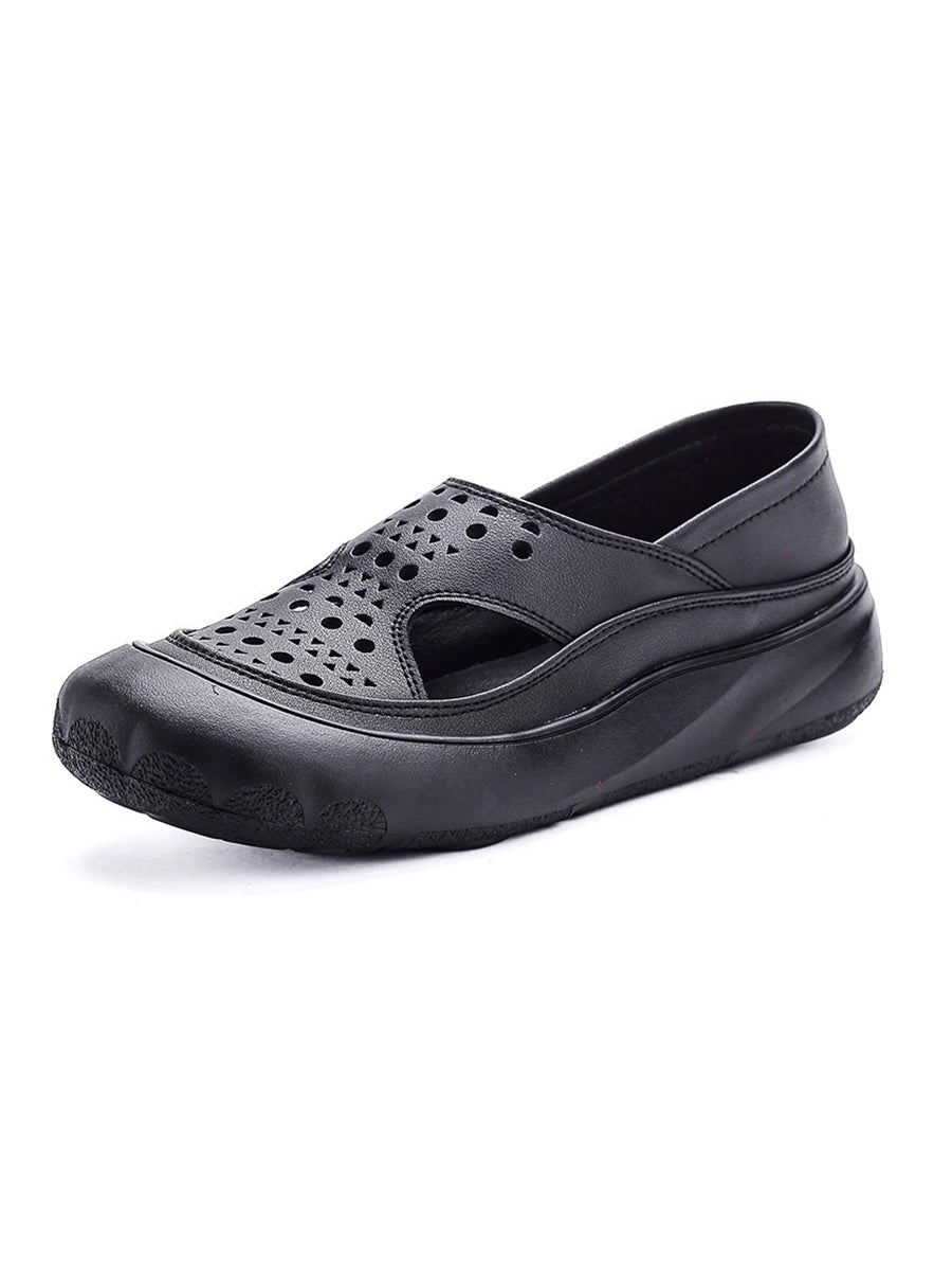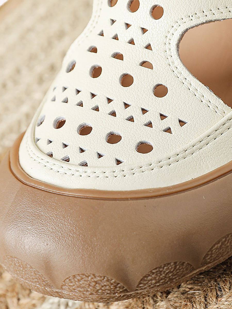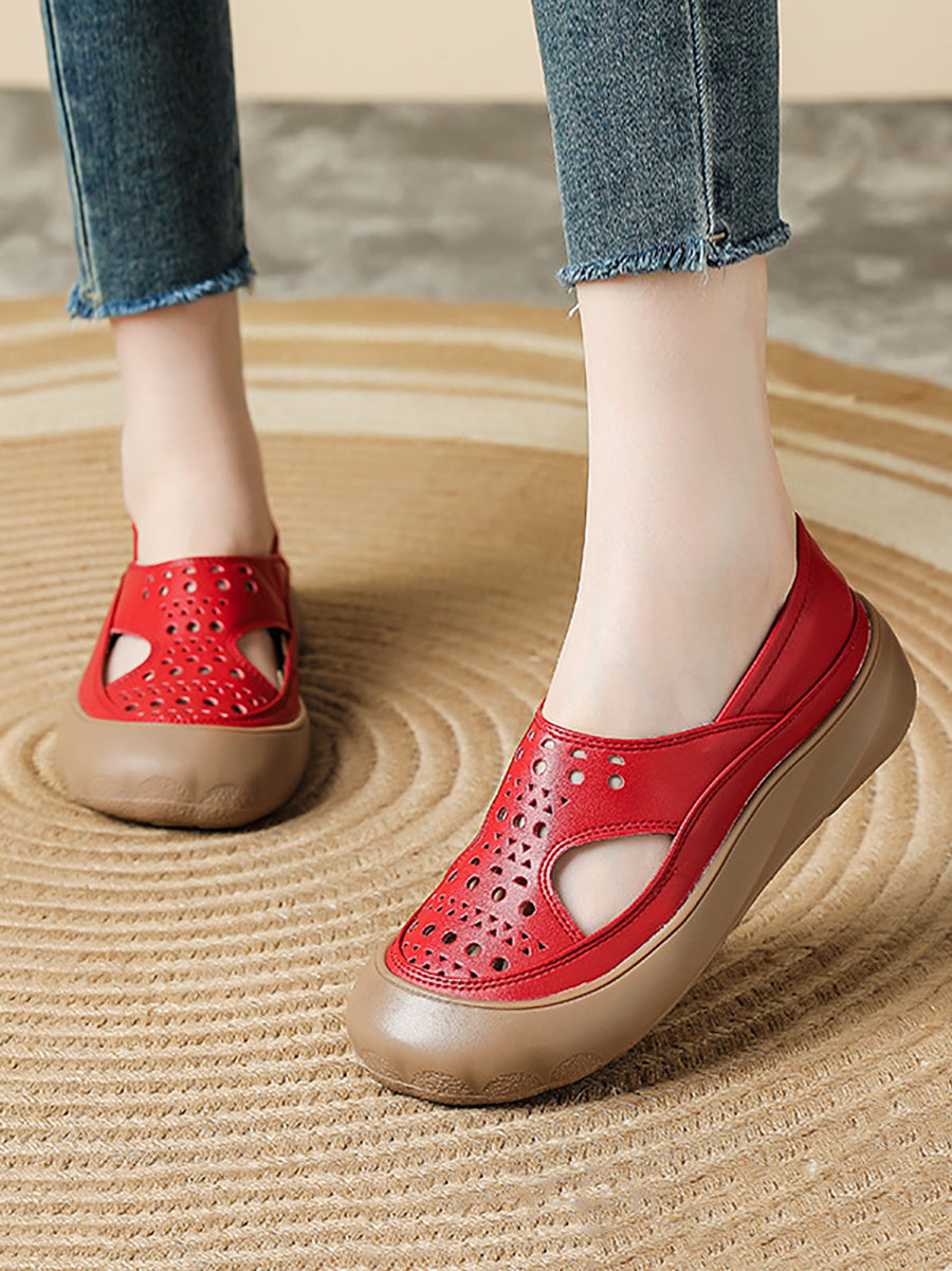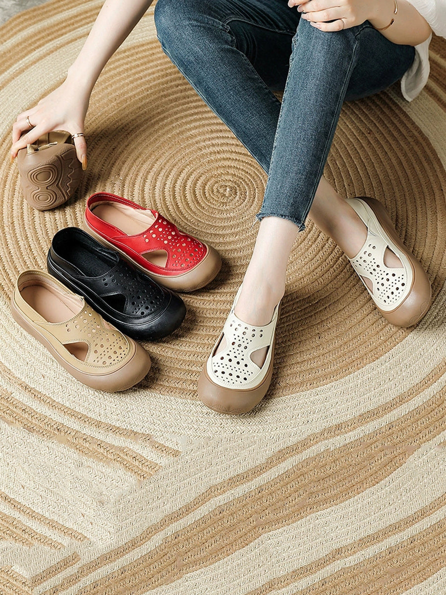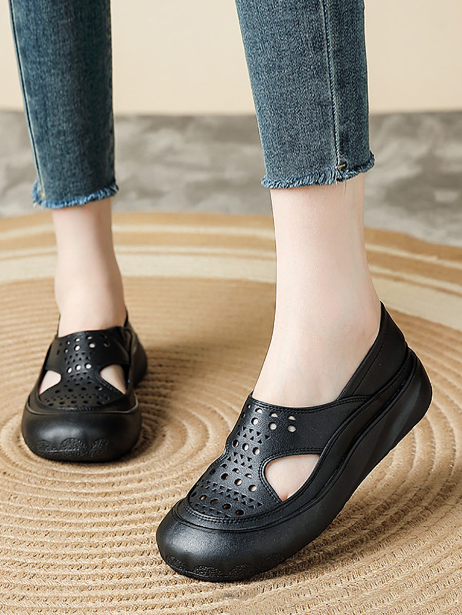 Women Summer Hollow Out Genuine Leather Flat Shoes