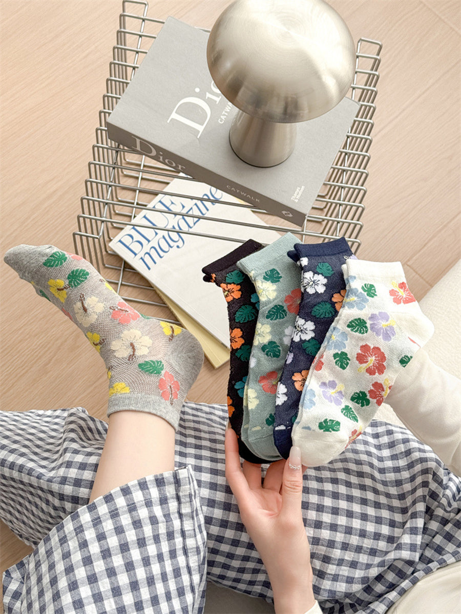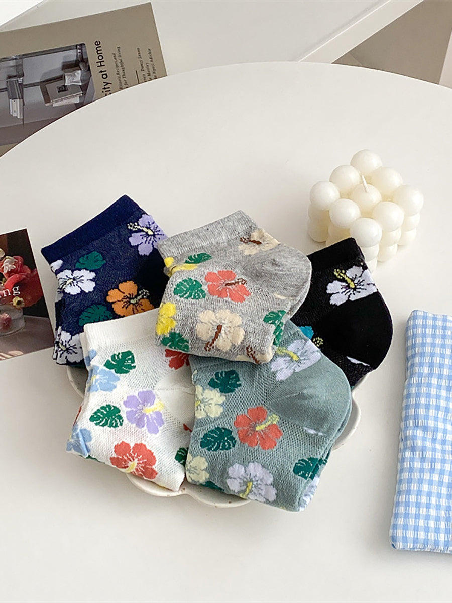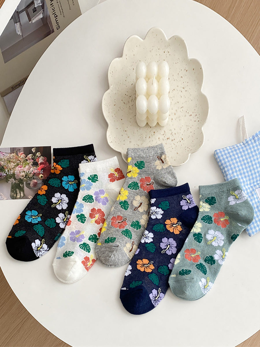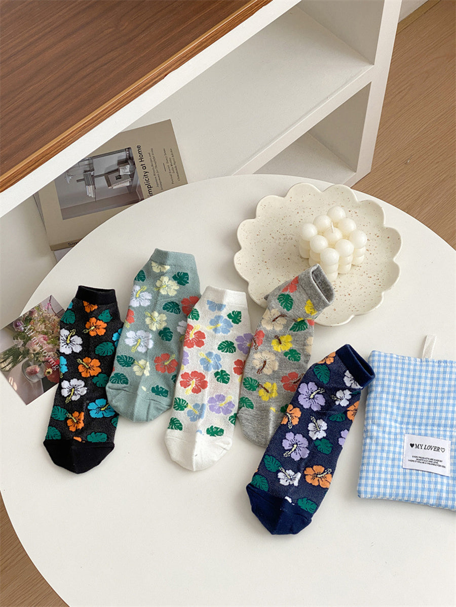 5 Pairs Women Artsy Flower Cotton Socks
