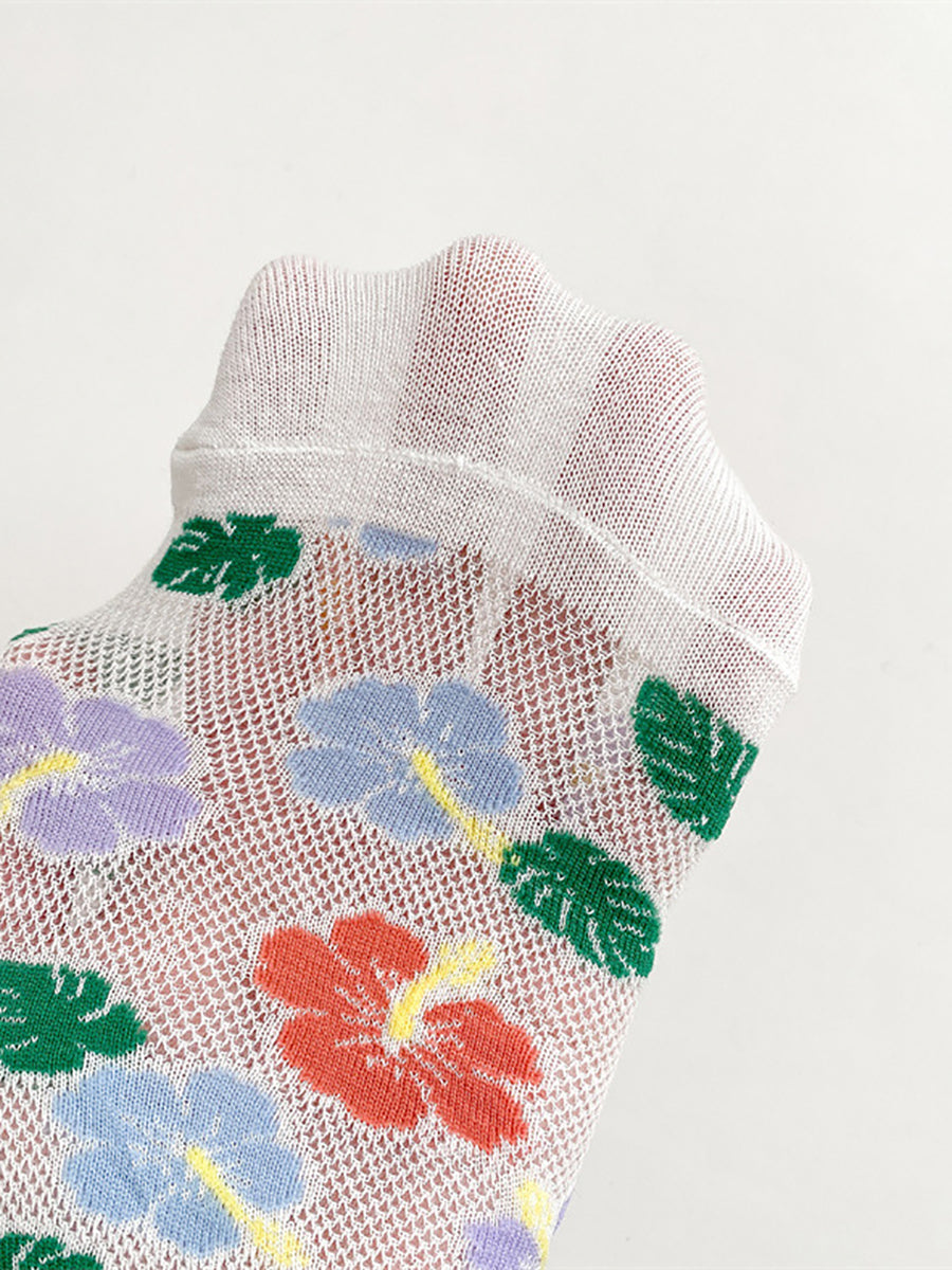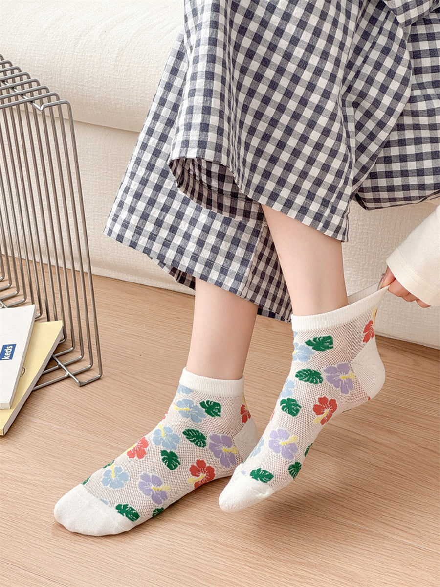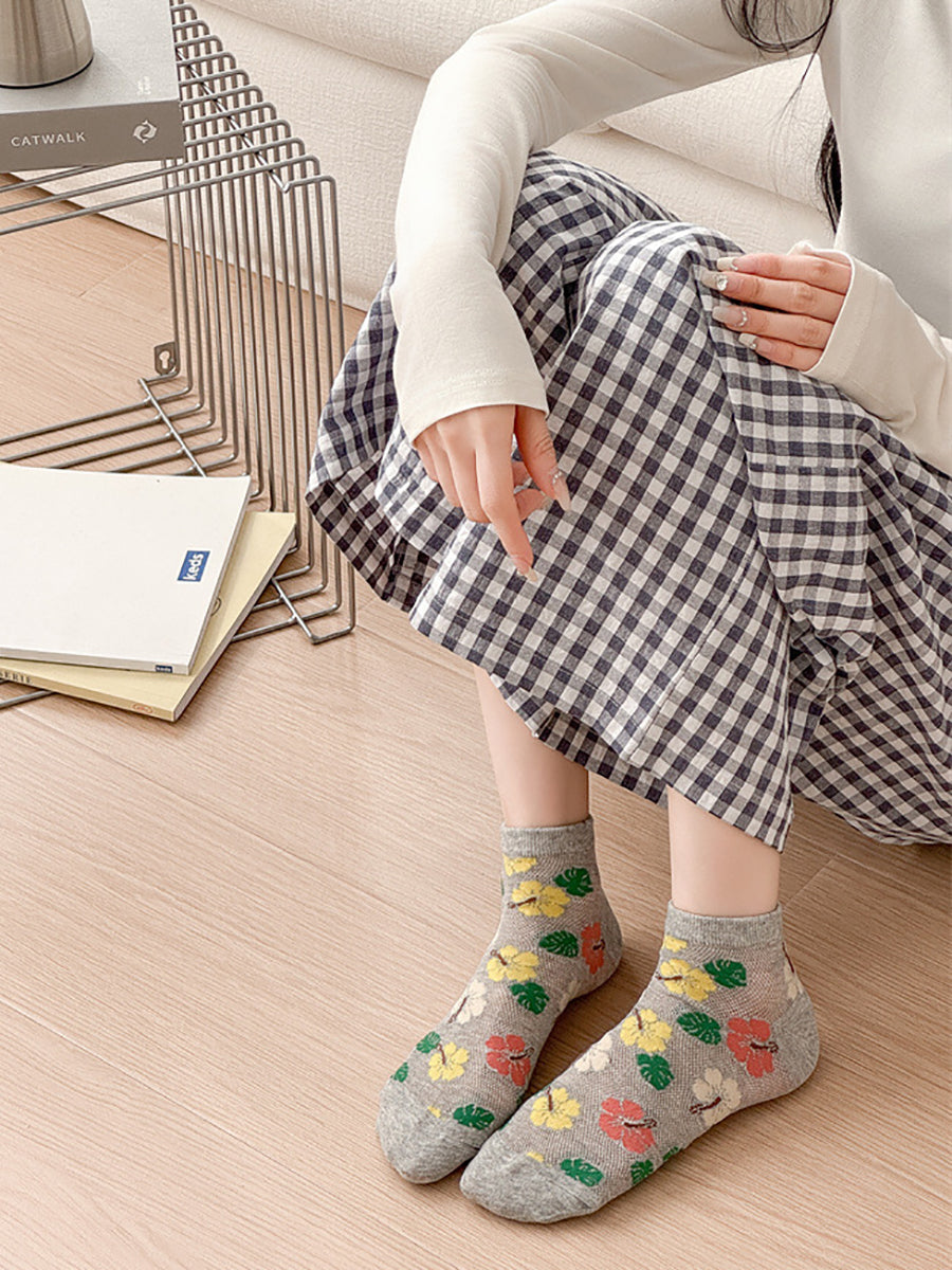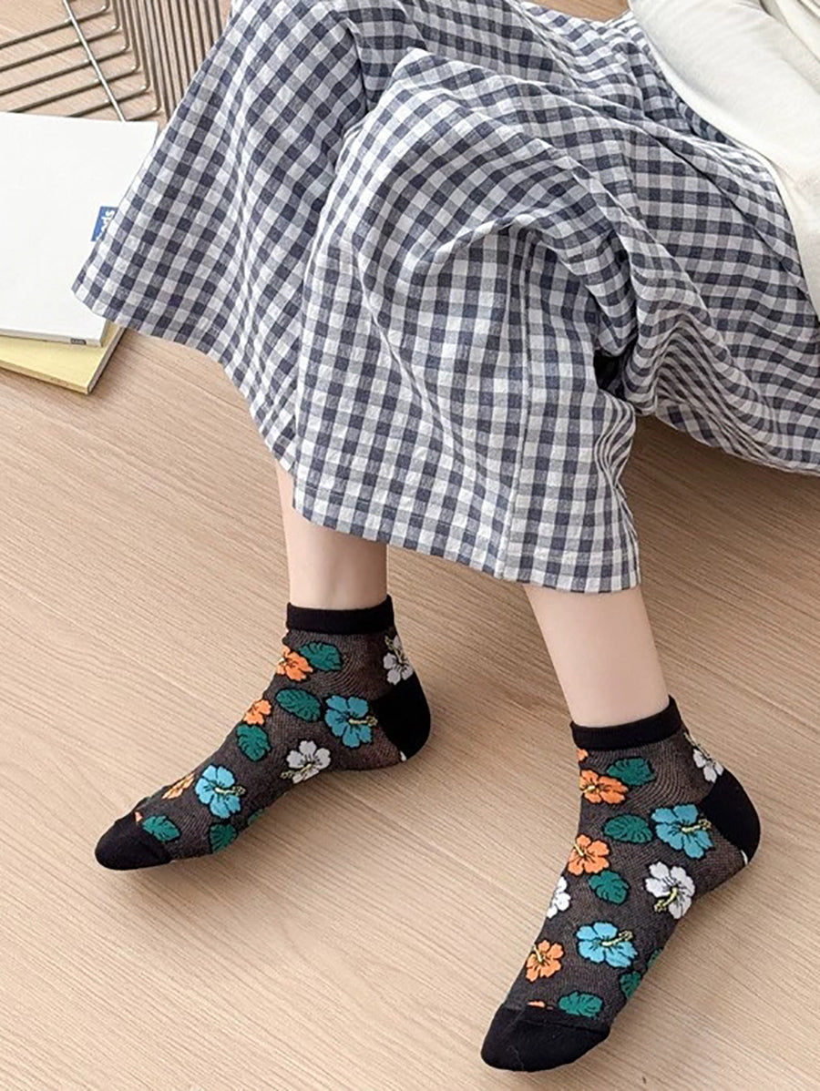 5 Pairs Women Artsy Flower Cotton Socks