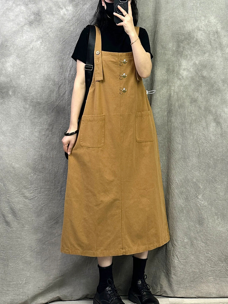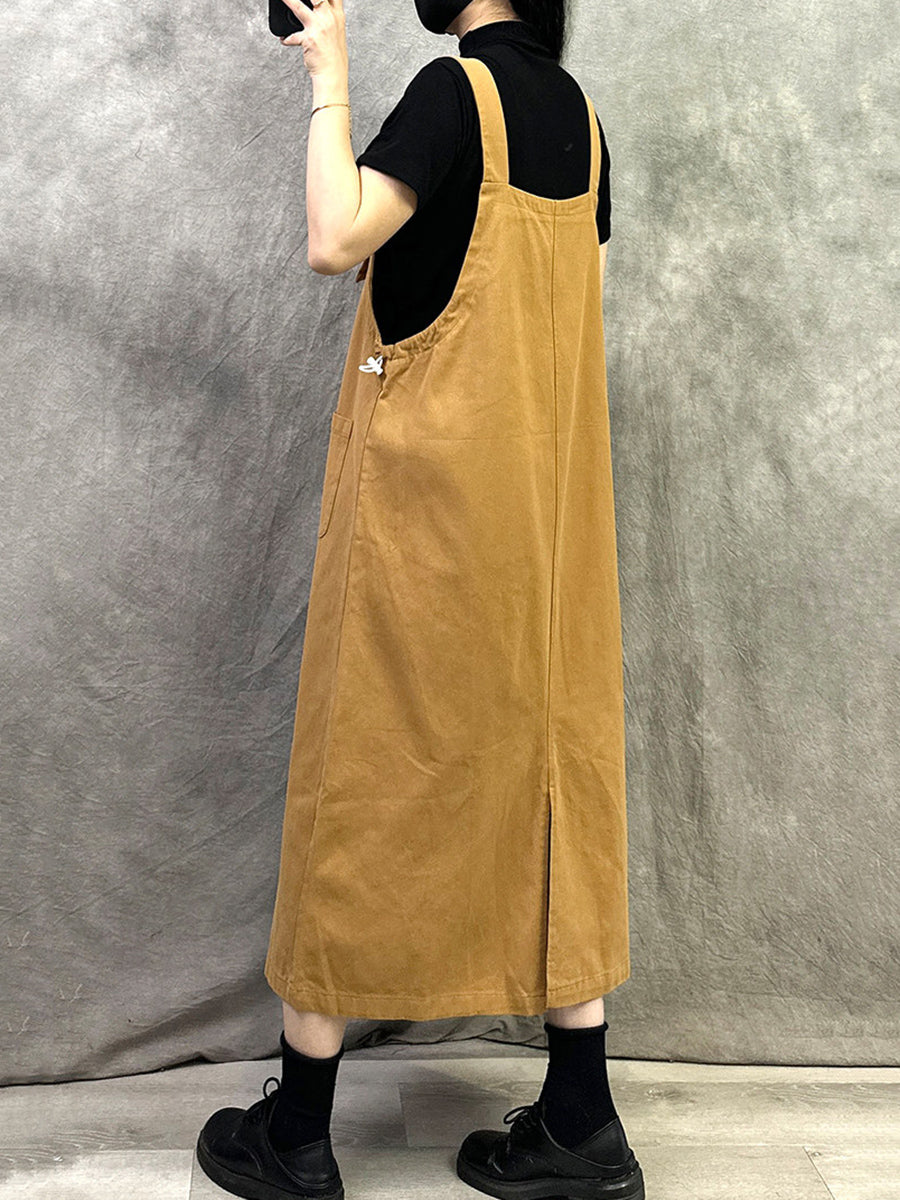 Women Casual Pure Color Cotton Overall Dress