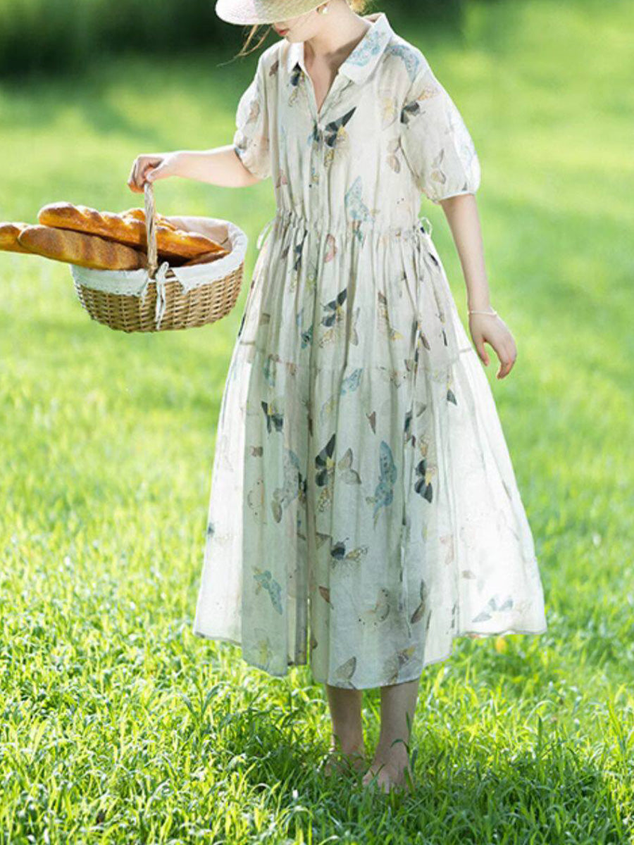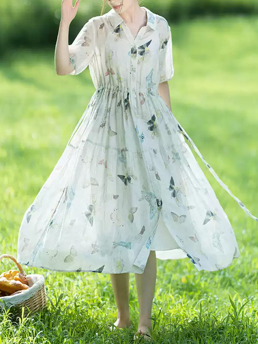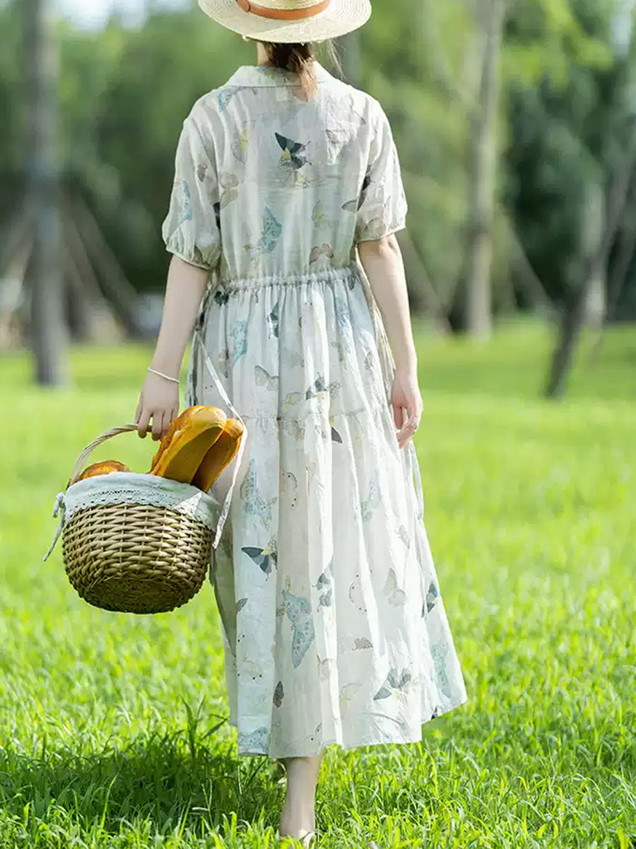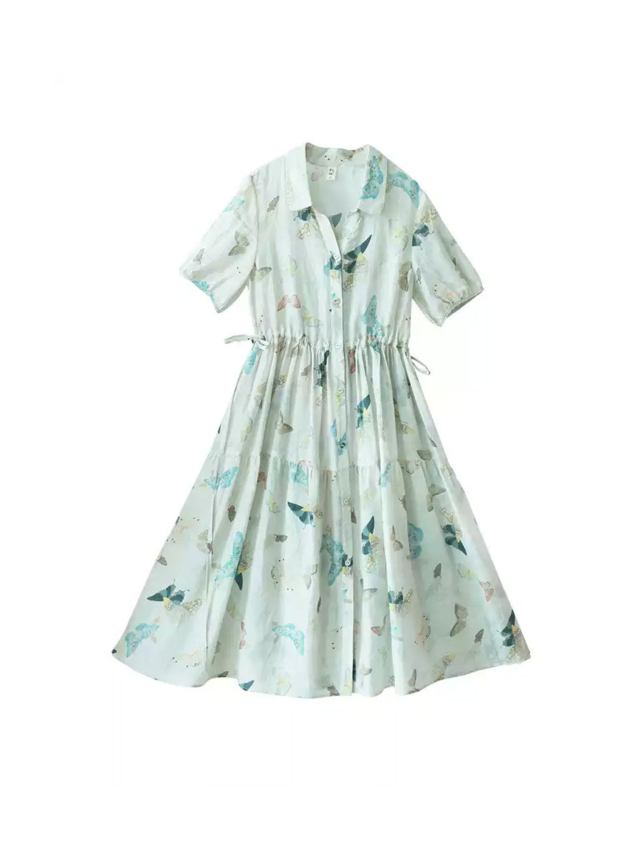Women Summer Artsy Flower Waist-hugging Dress