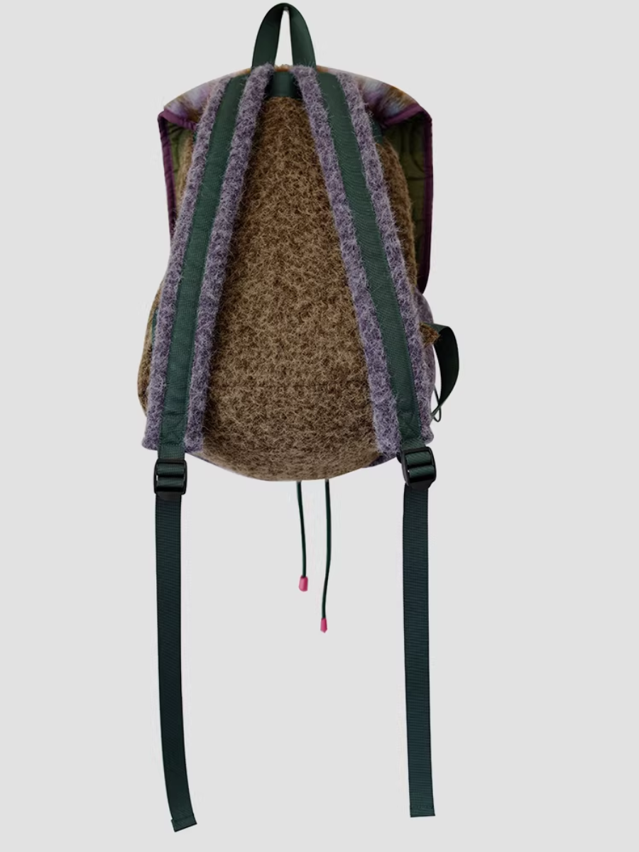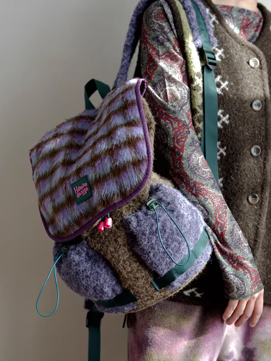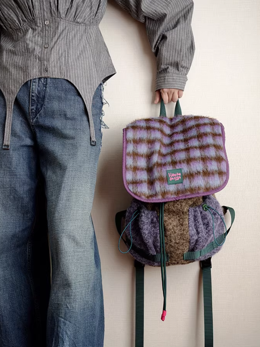 Retro Fluffy Purple Plaids Spliced Backpack
