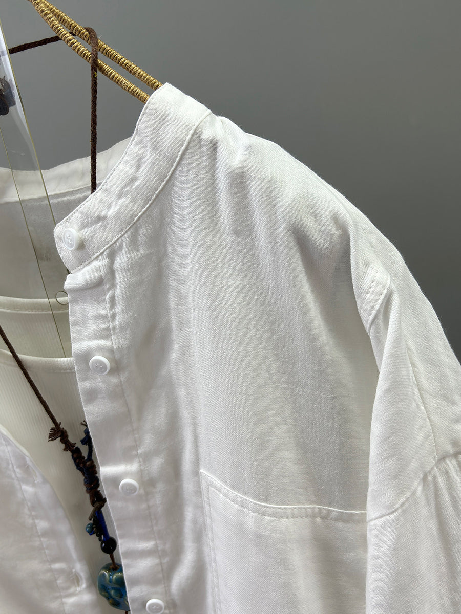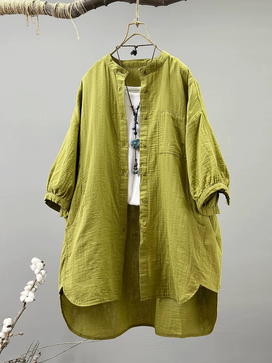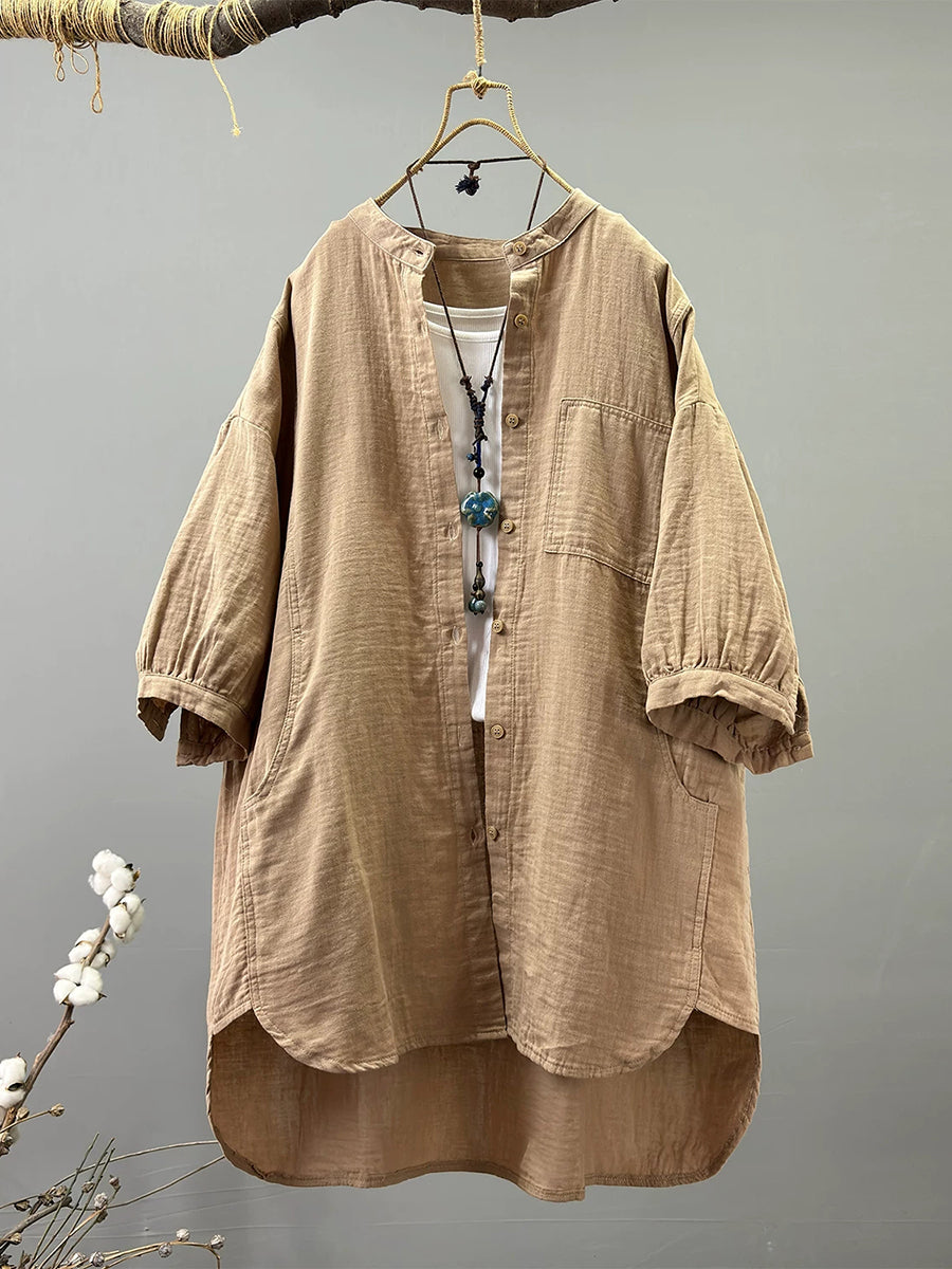 Women Summer Artsy Stand Collar 100%Cotton Shirt
