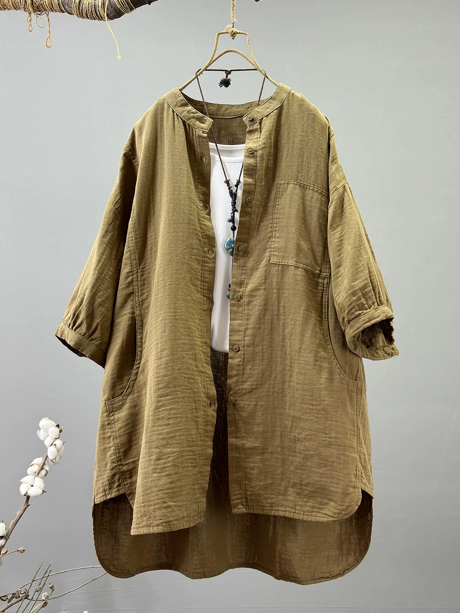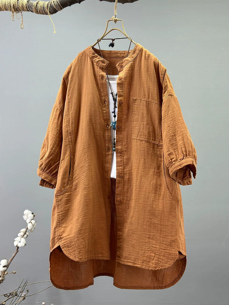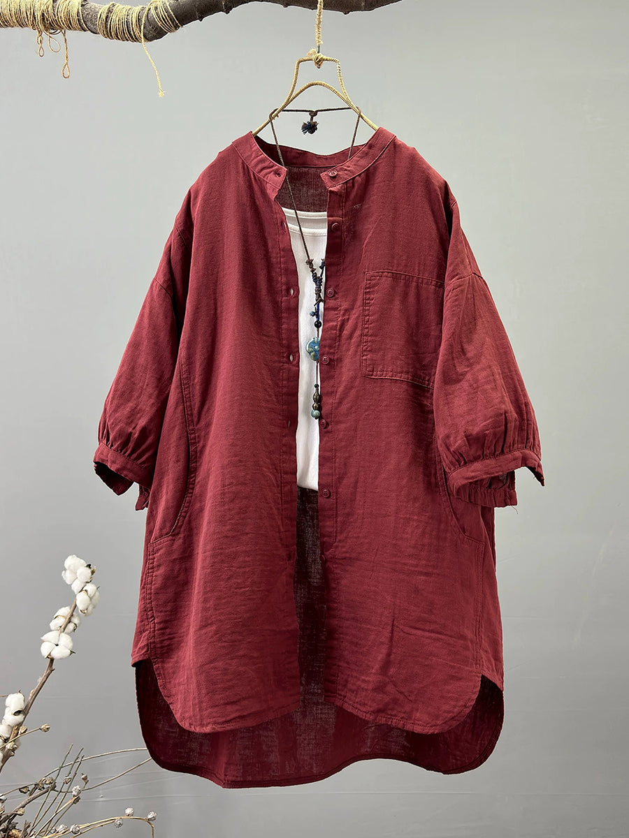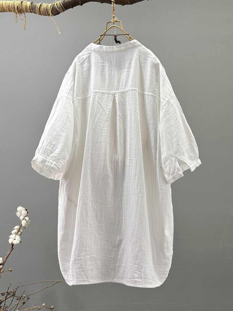 Women Summer Artsy Stand Collar 100%Cotton Shirt