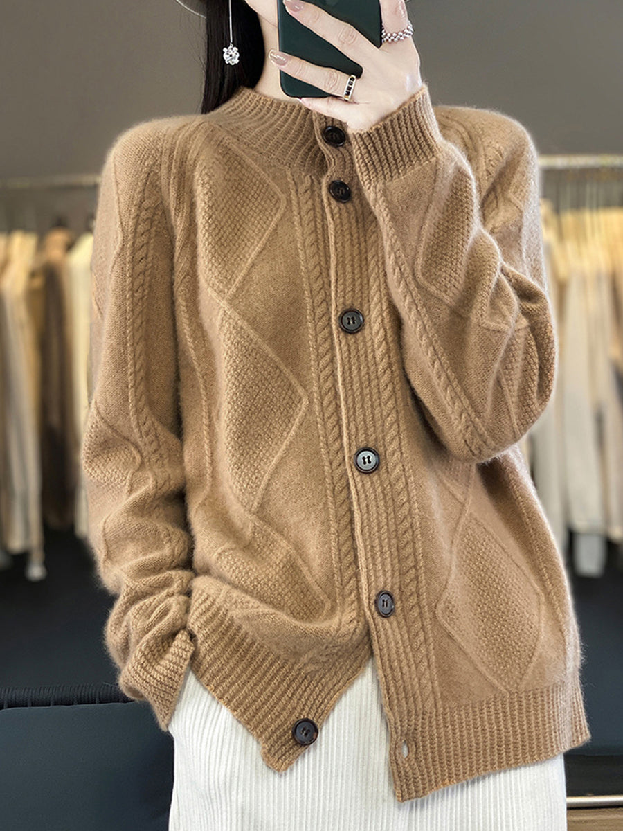 Women Autumn Pure Color Wool Stand Collar Sweater