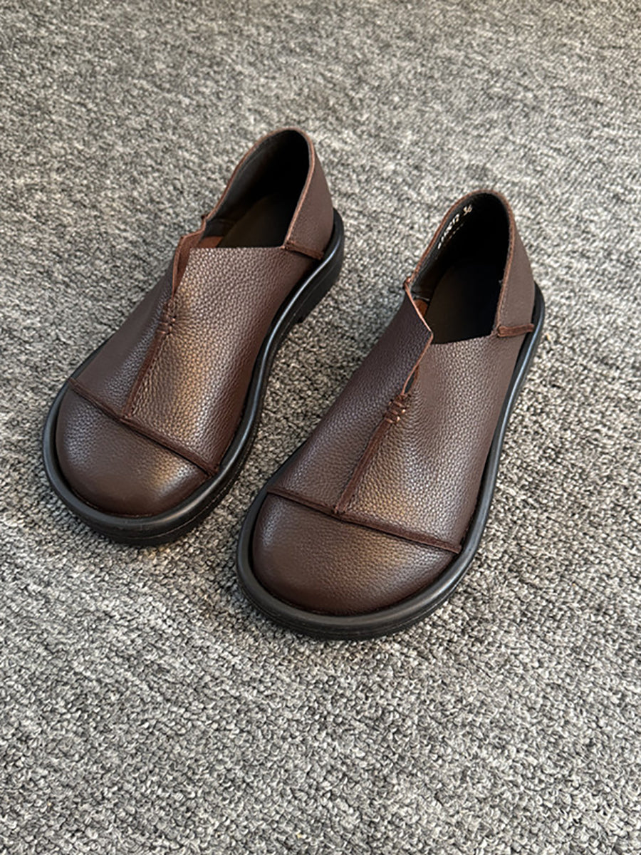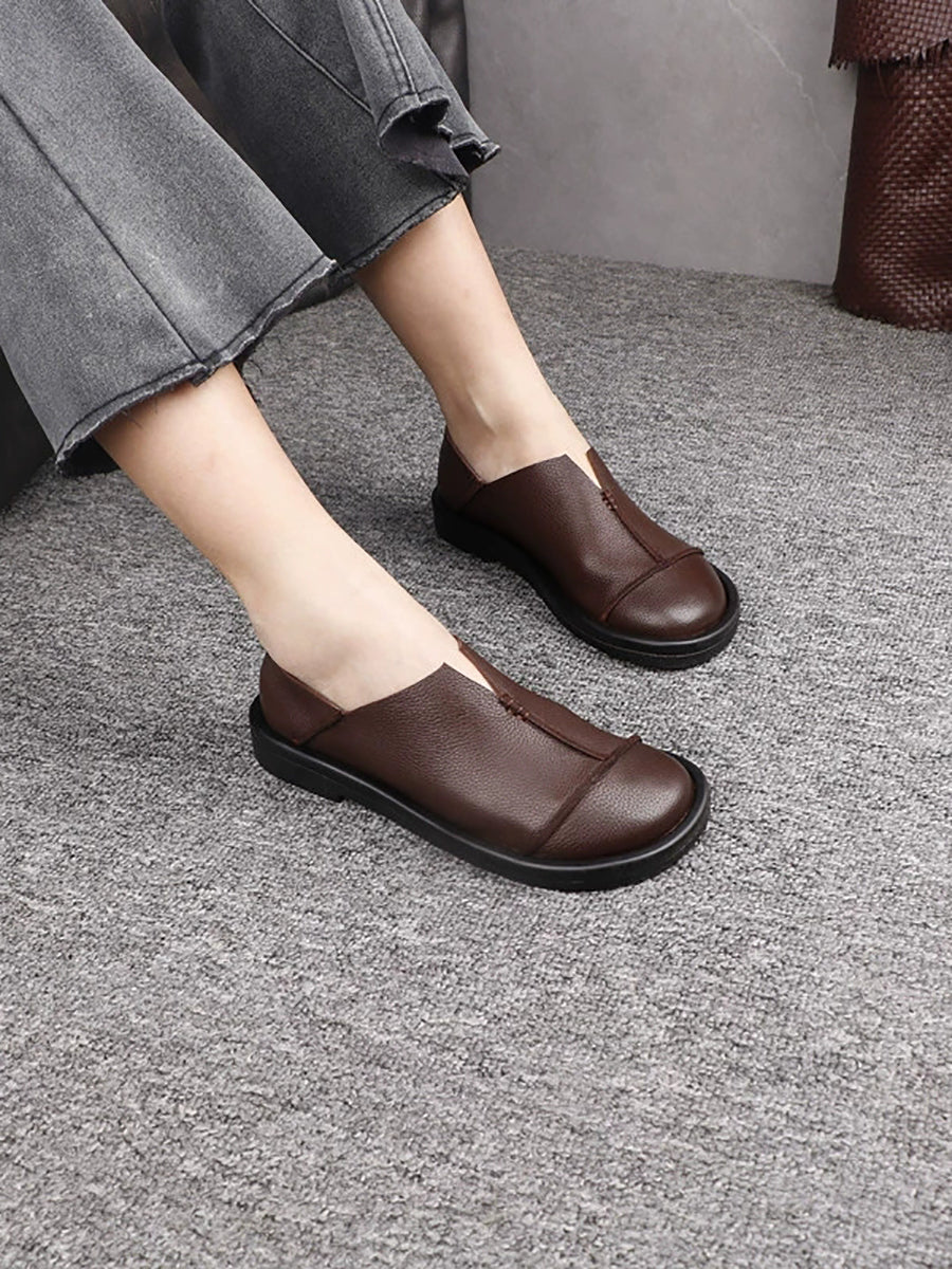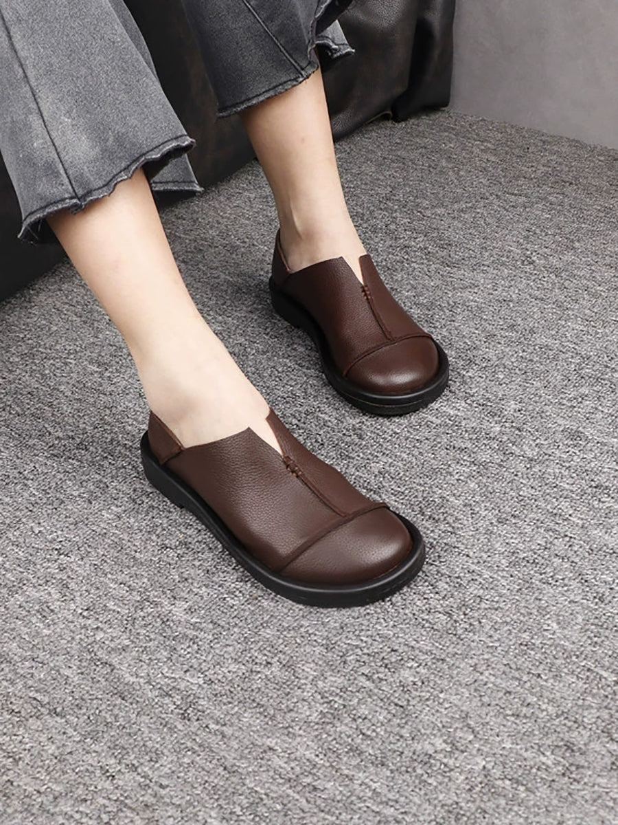 Women Casual Genuine Leather Spliced Low Heel Shoes