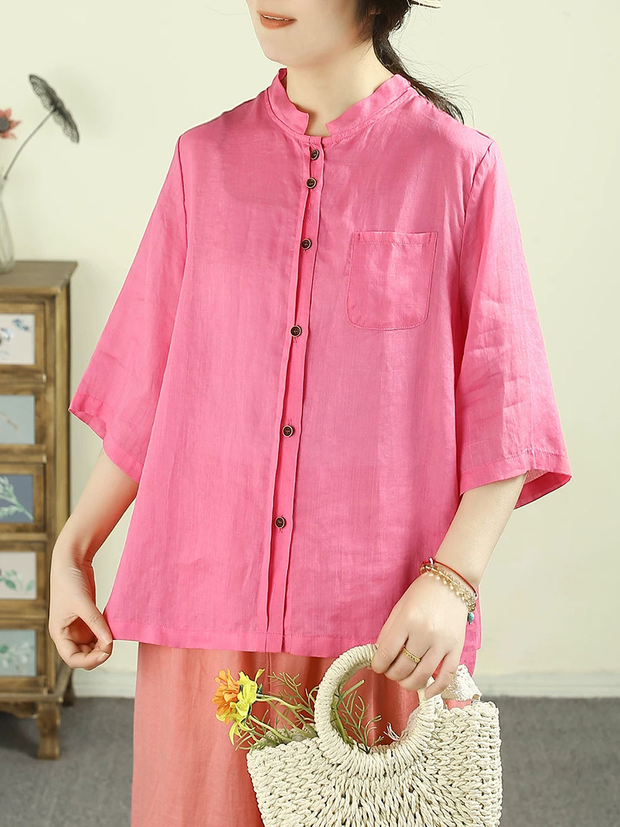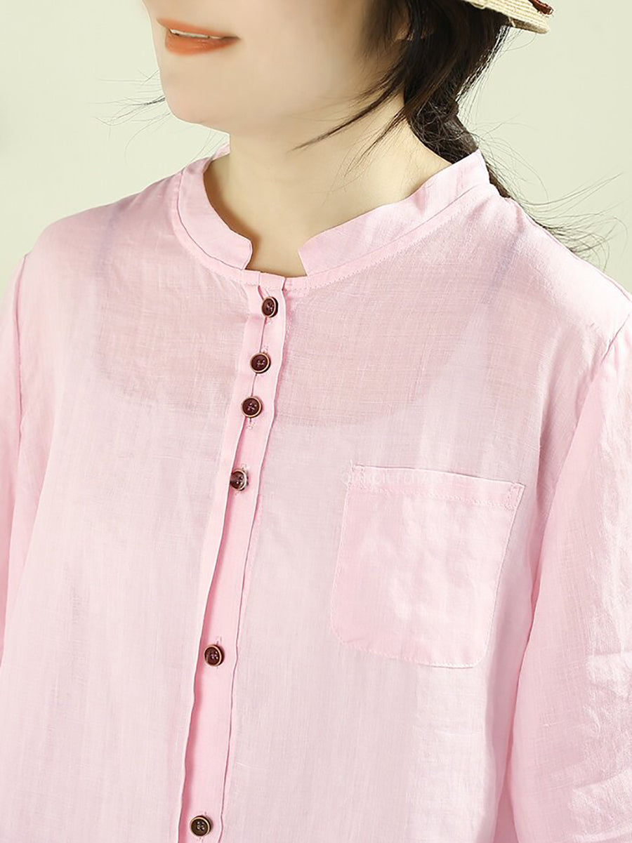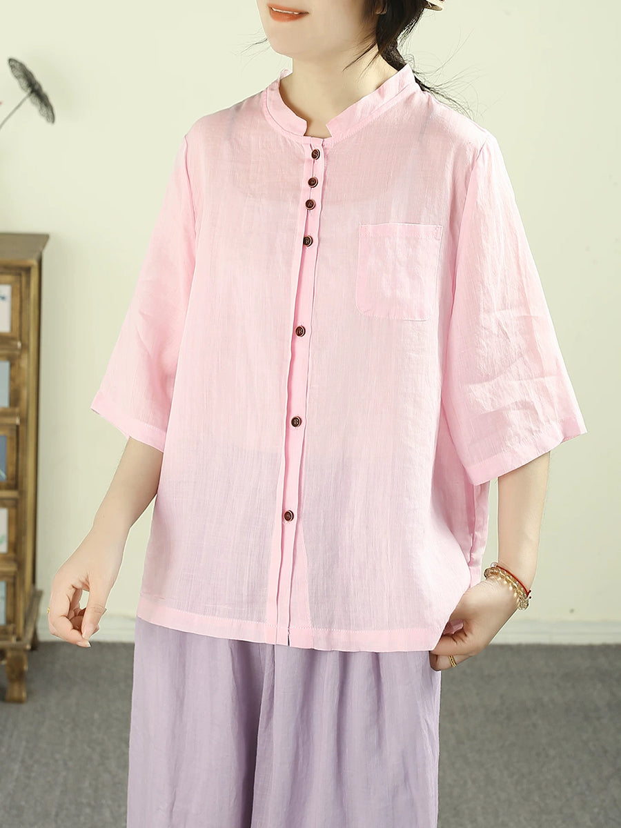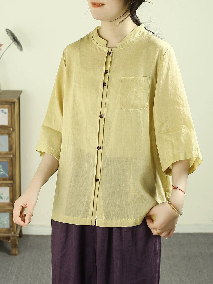 Women Summer Artsy Pure Color 100%Ramie Shirt
