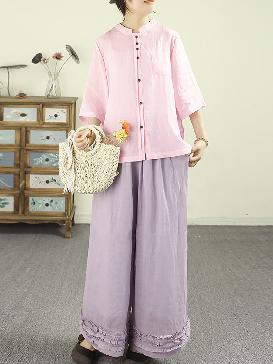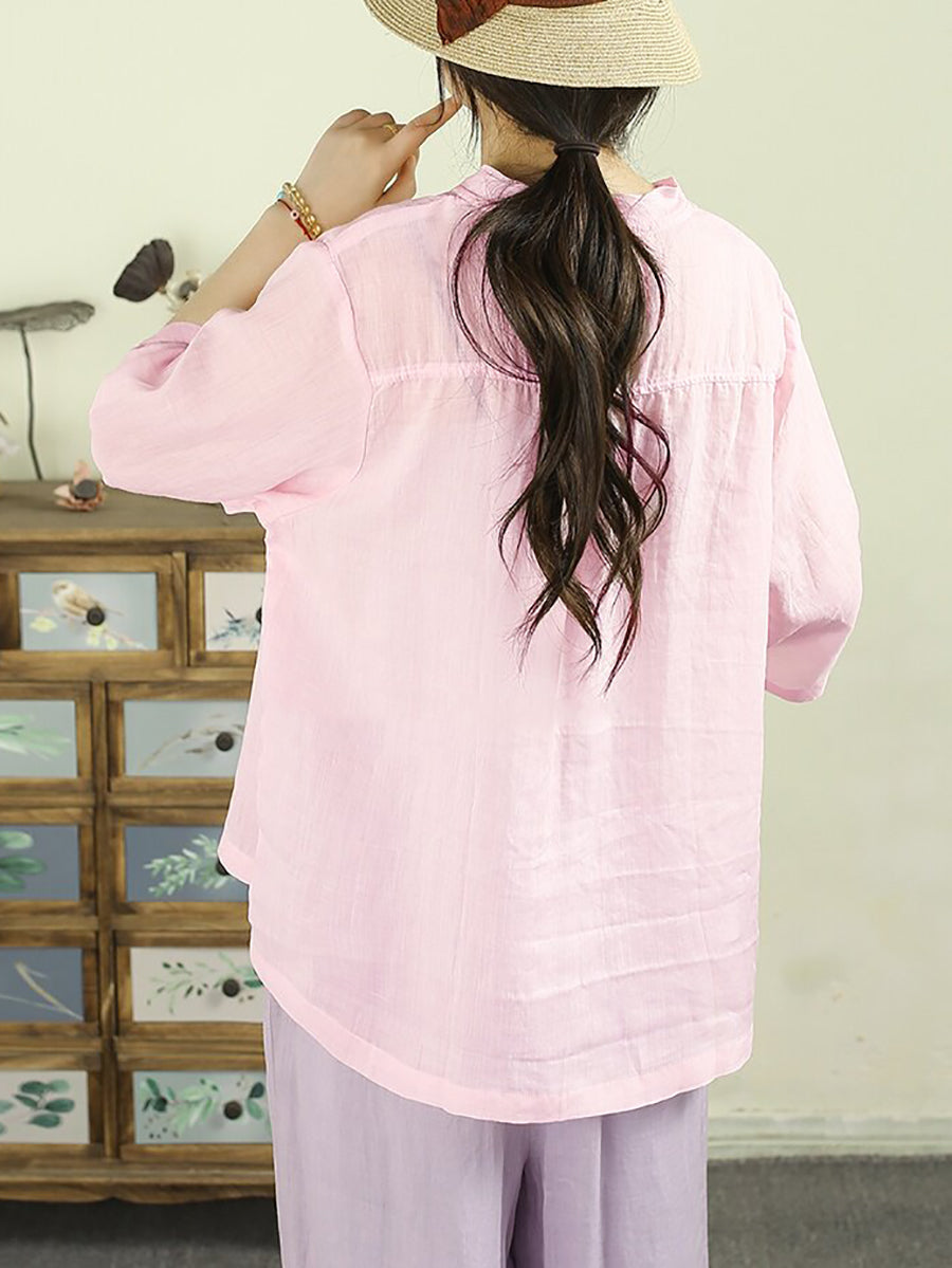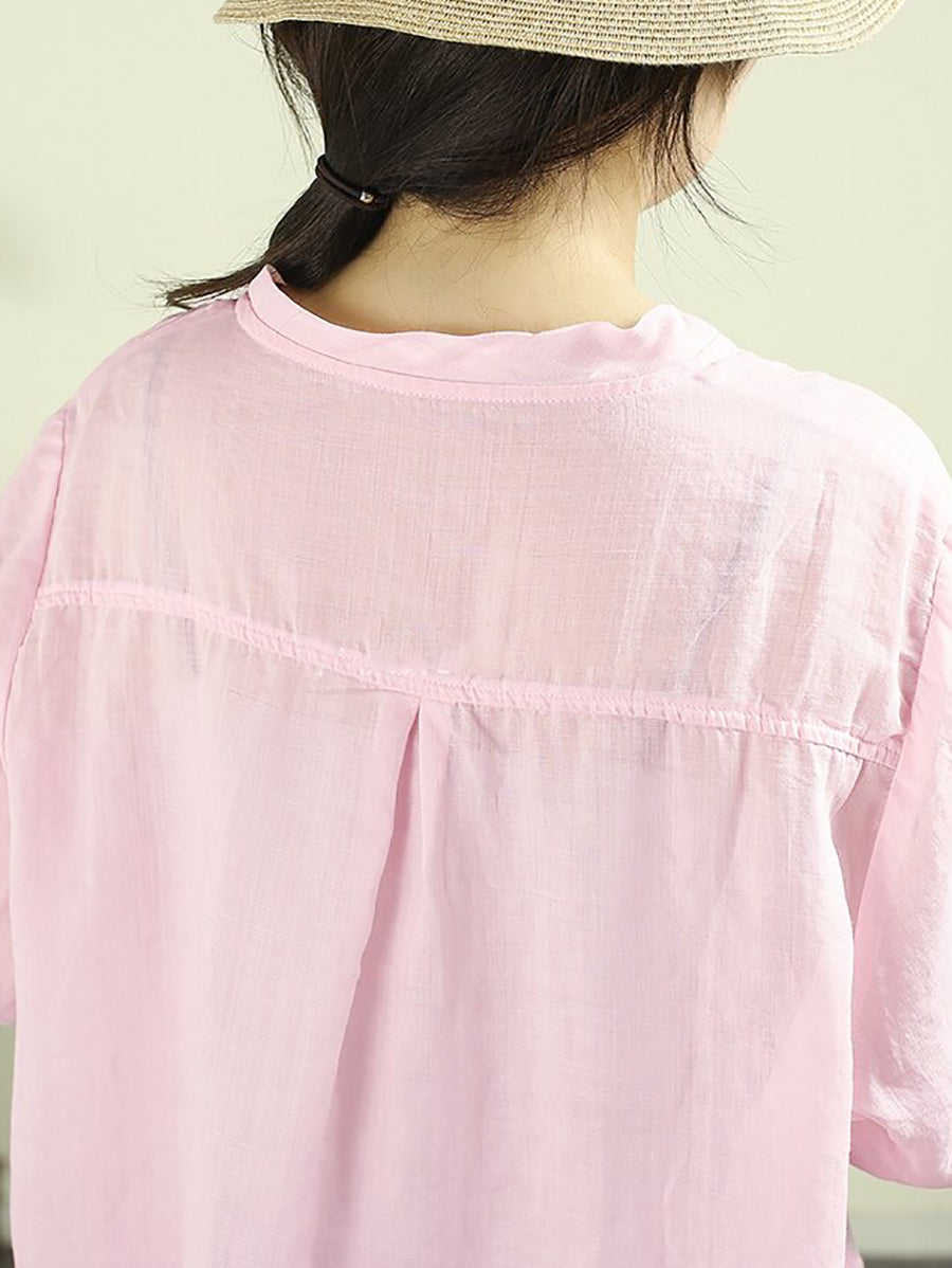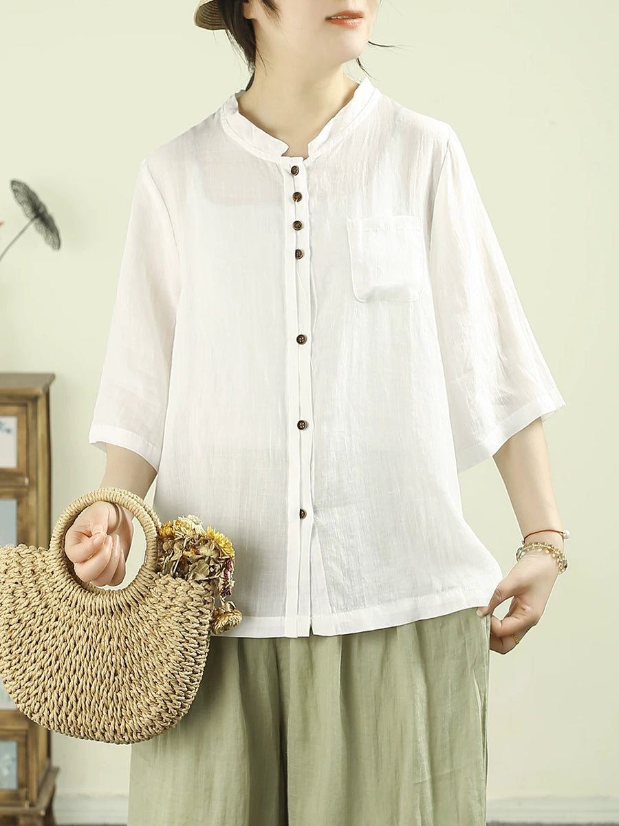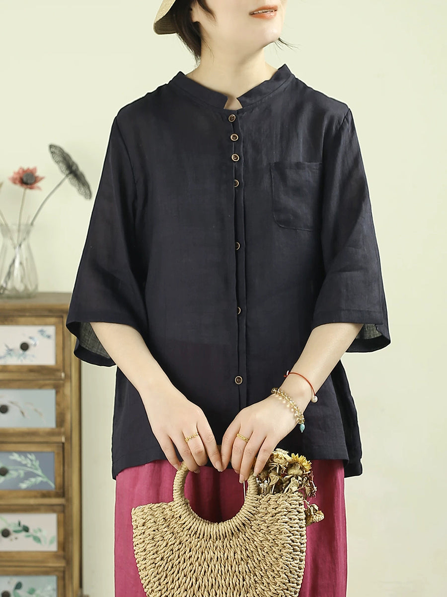Women Summer Artsy Pure Color 100%Ramie Shirt