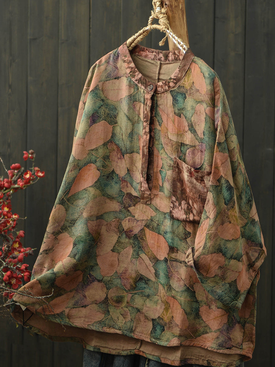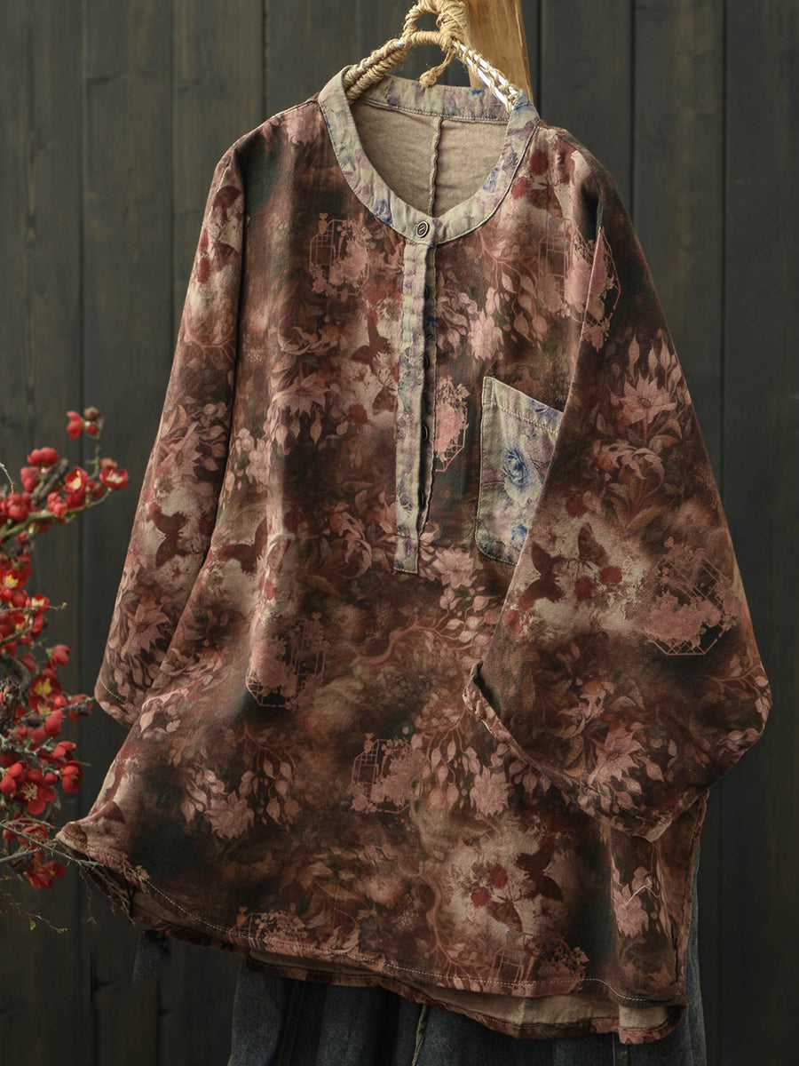 Women Summer Retro Flower Stand Collar Blouse