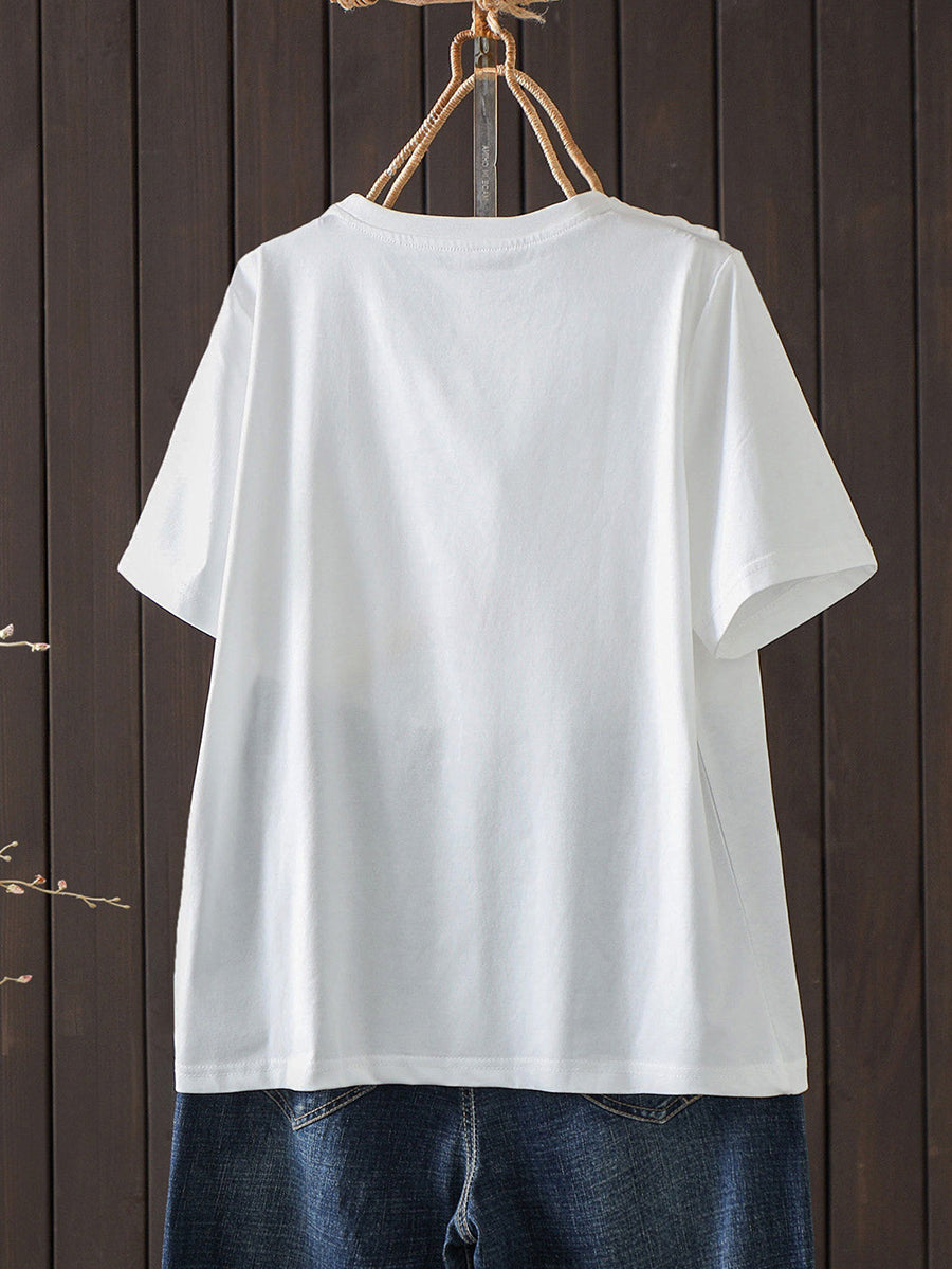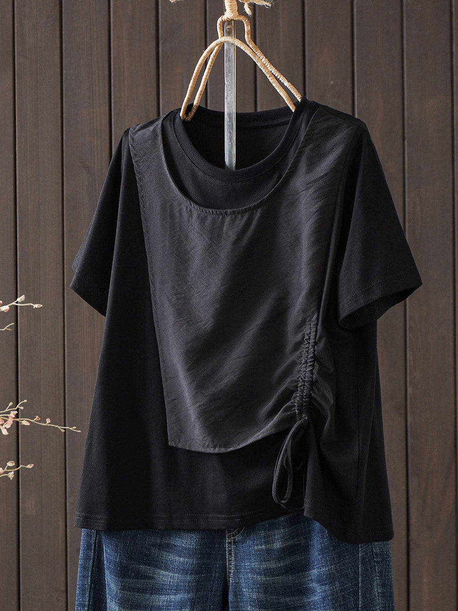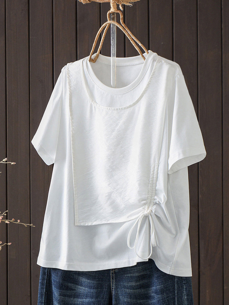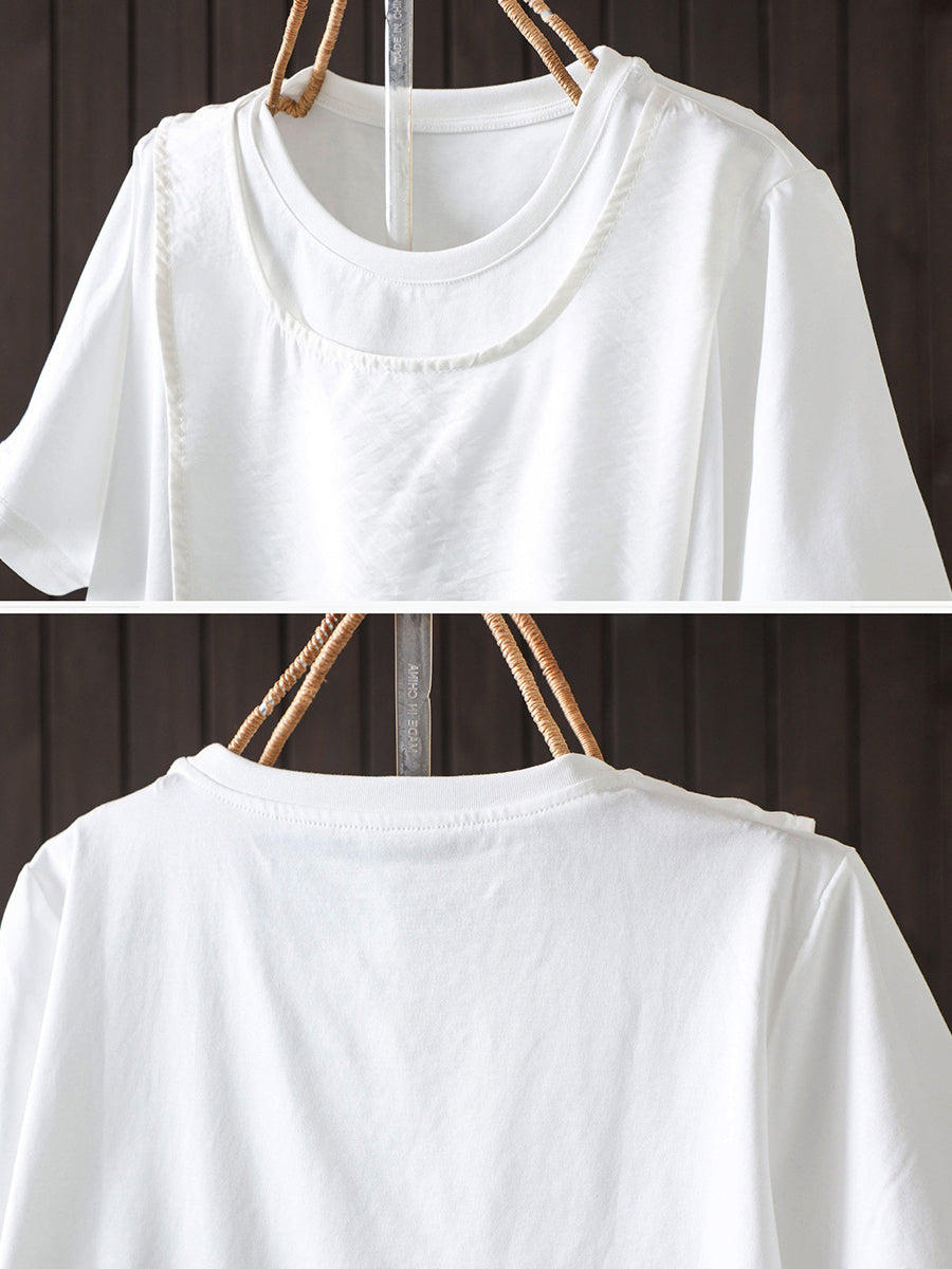 Women Summer Versatile Fake Two O-Neck T-Shirt