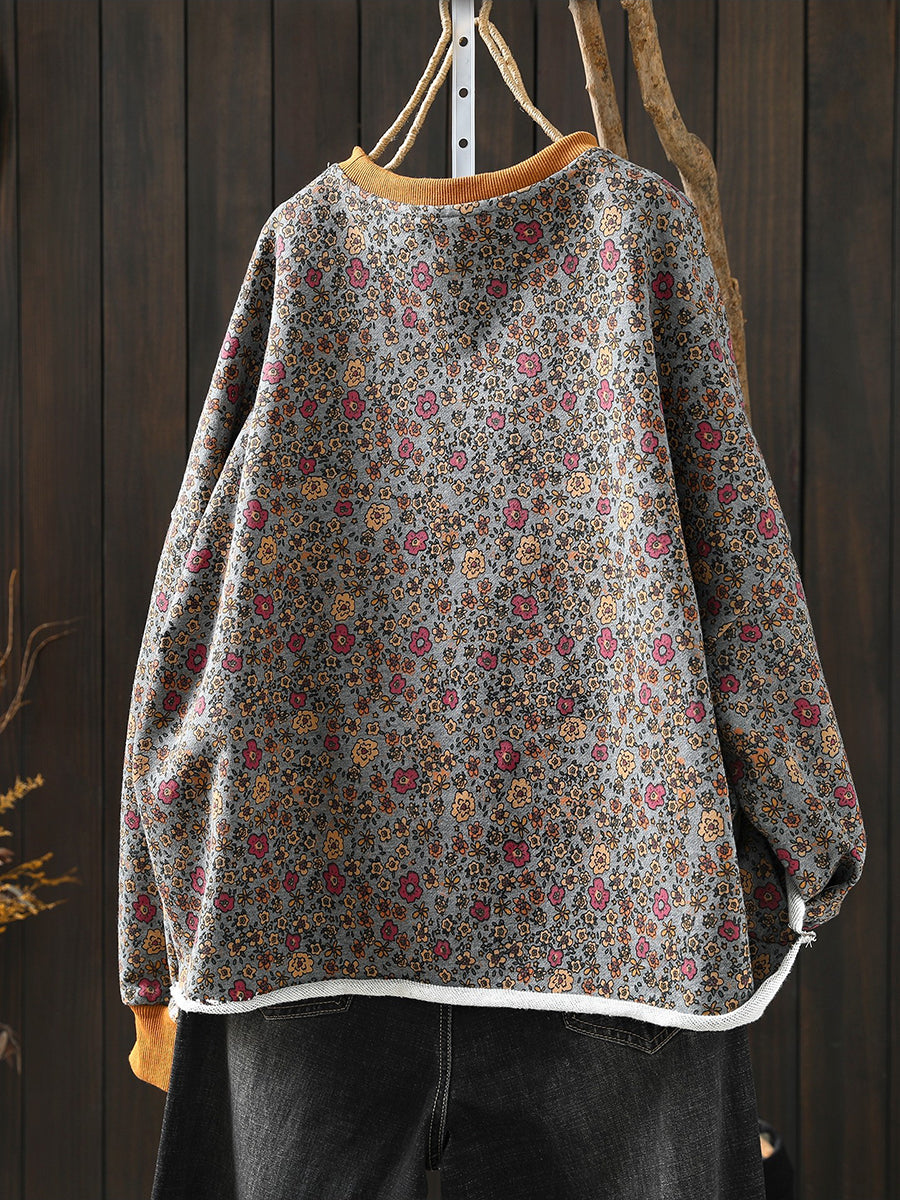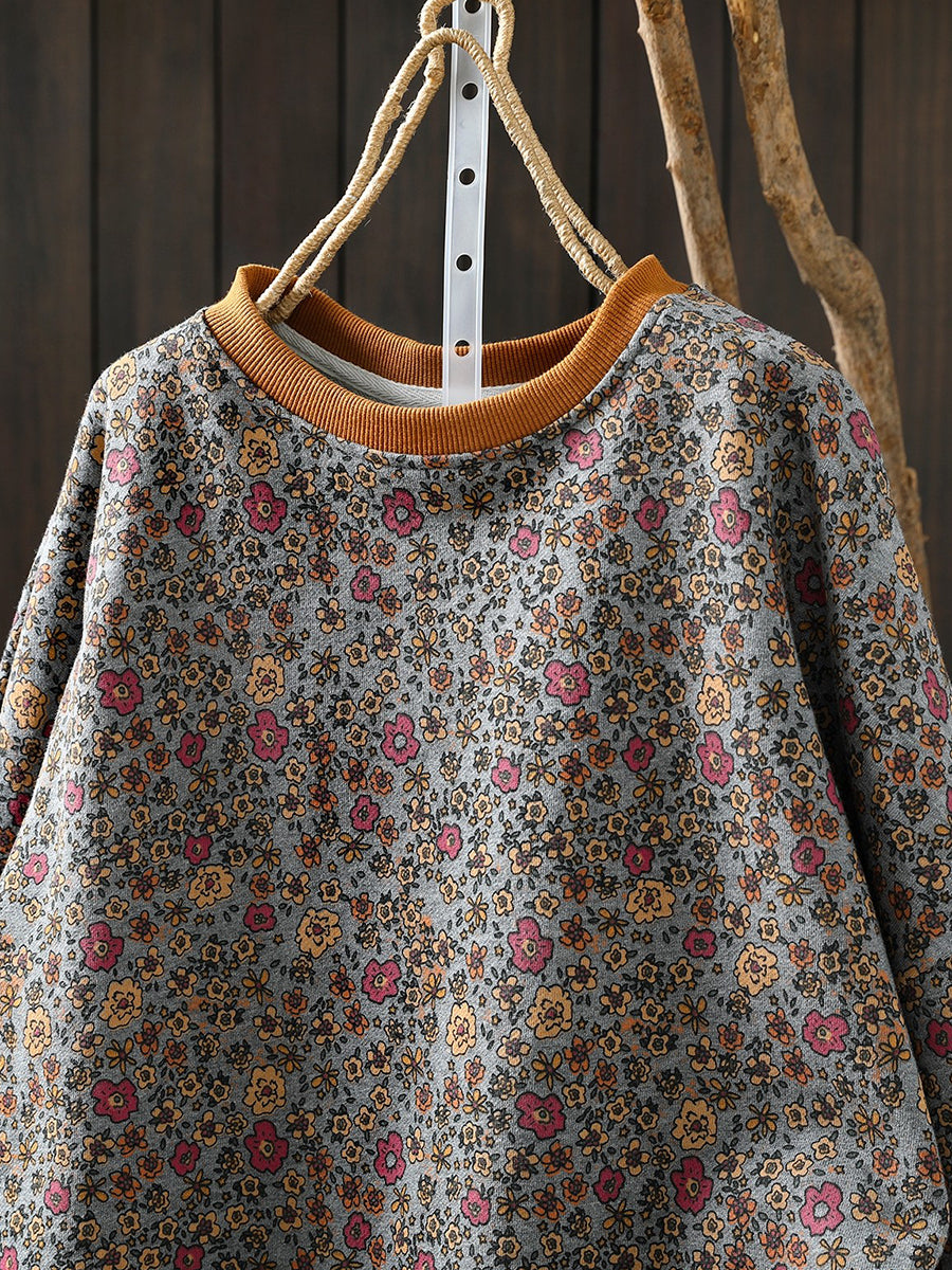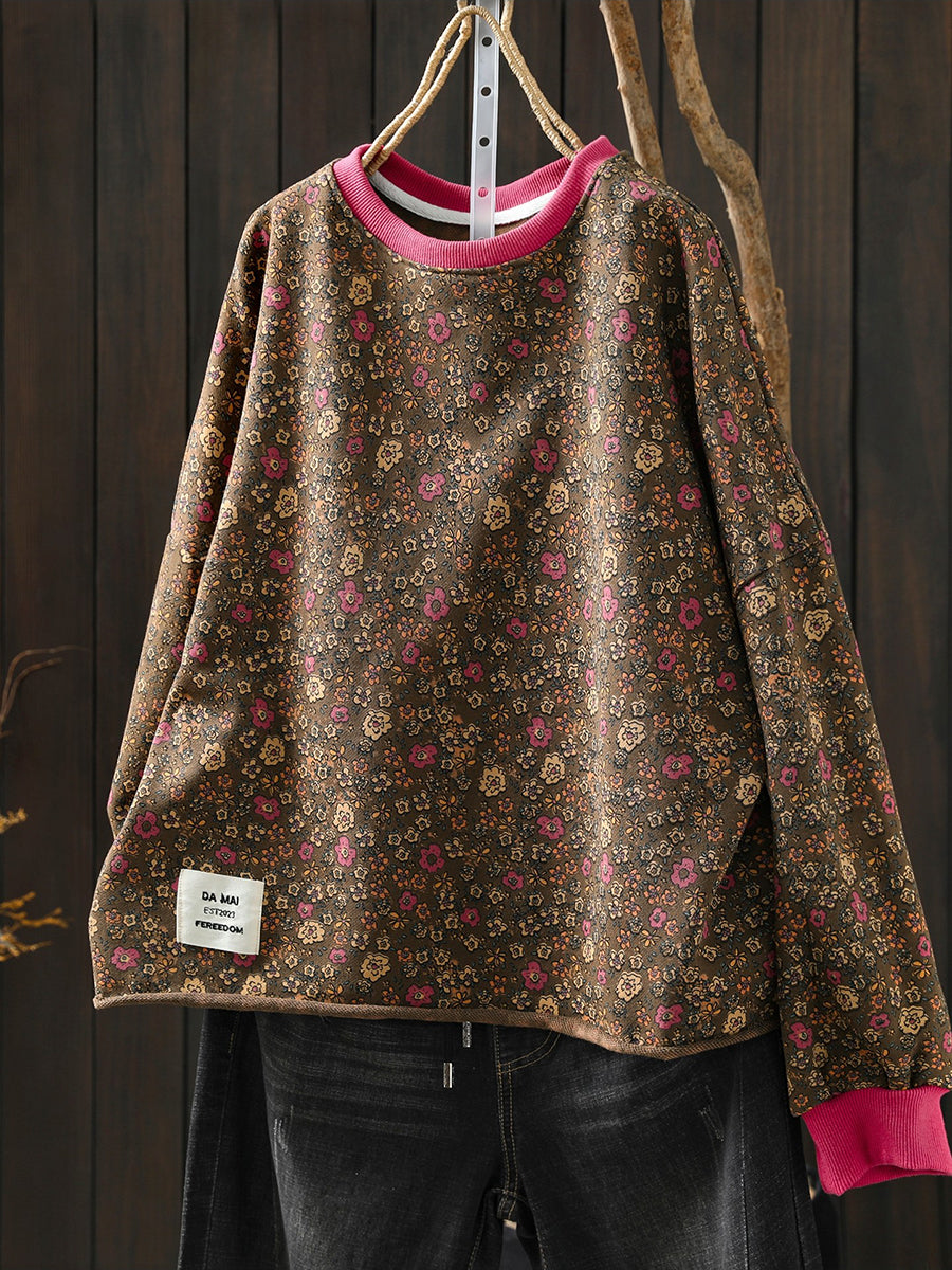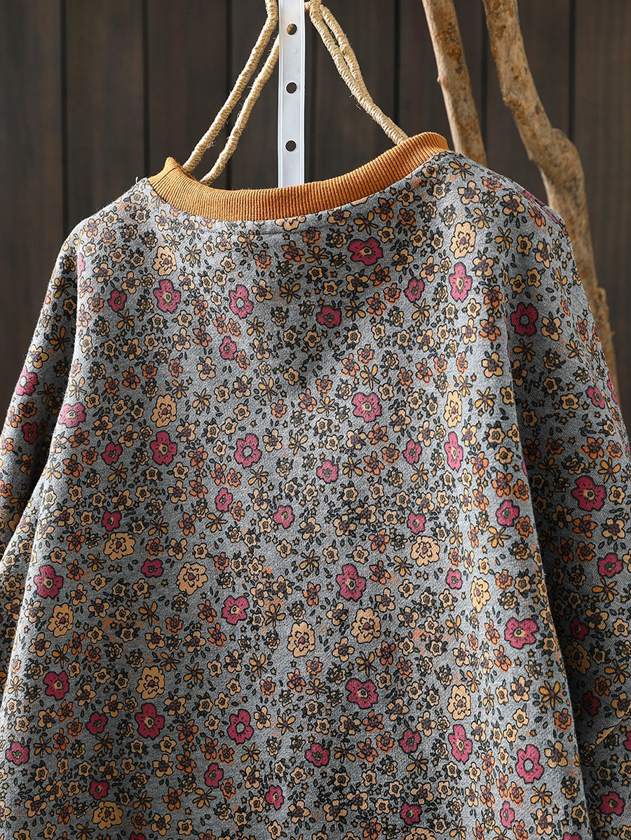 Women Artsy Spring Floral O-Neck 100%Cotton Blouse
