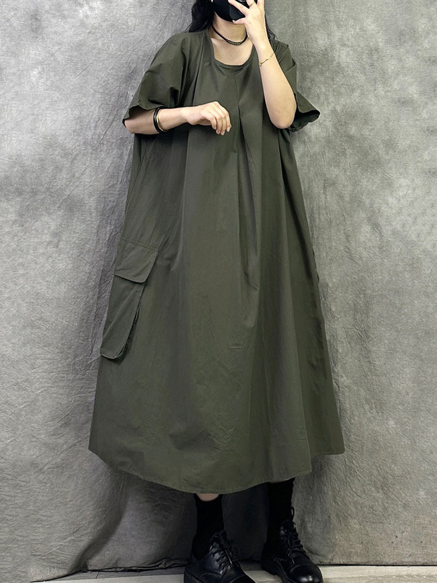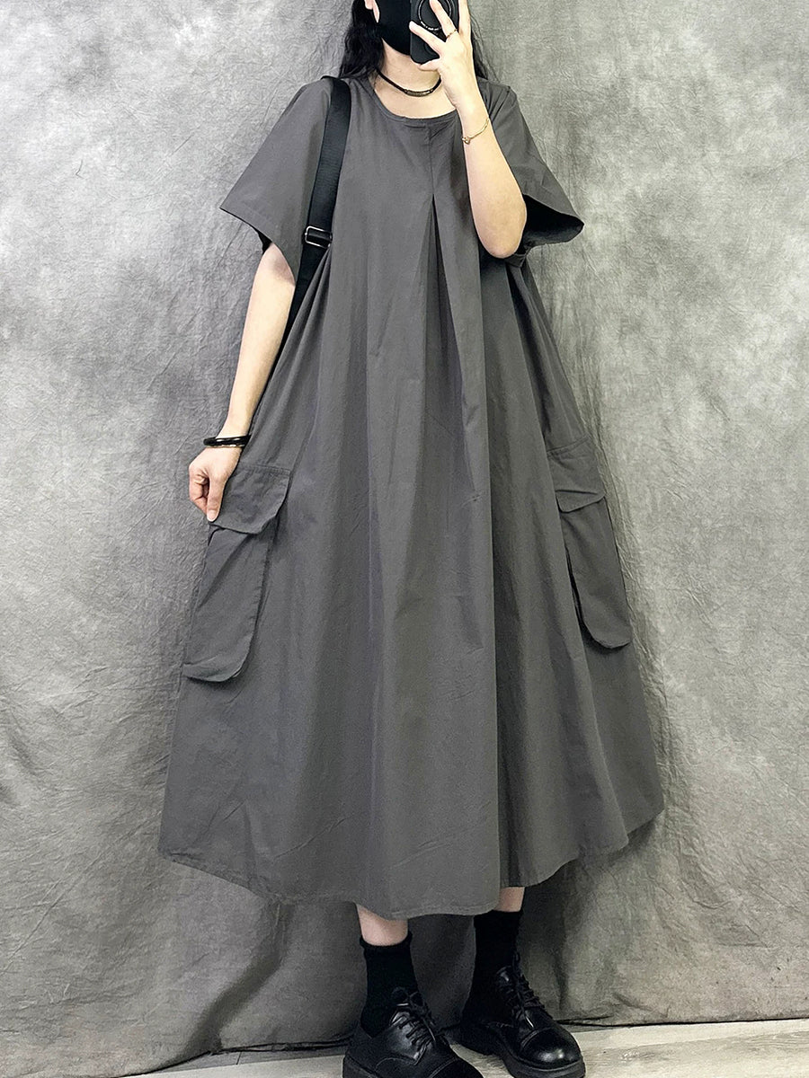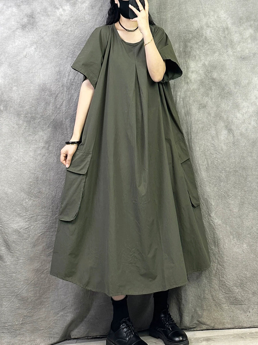 Women Summer Casual Pure Color Cotton O-Neck Dress