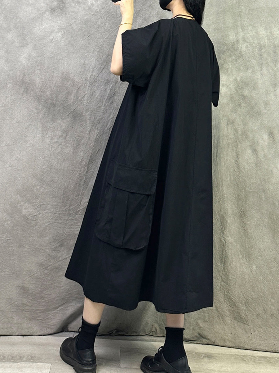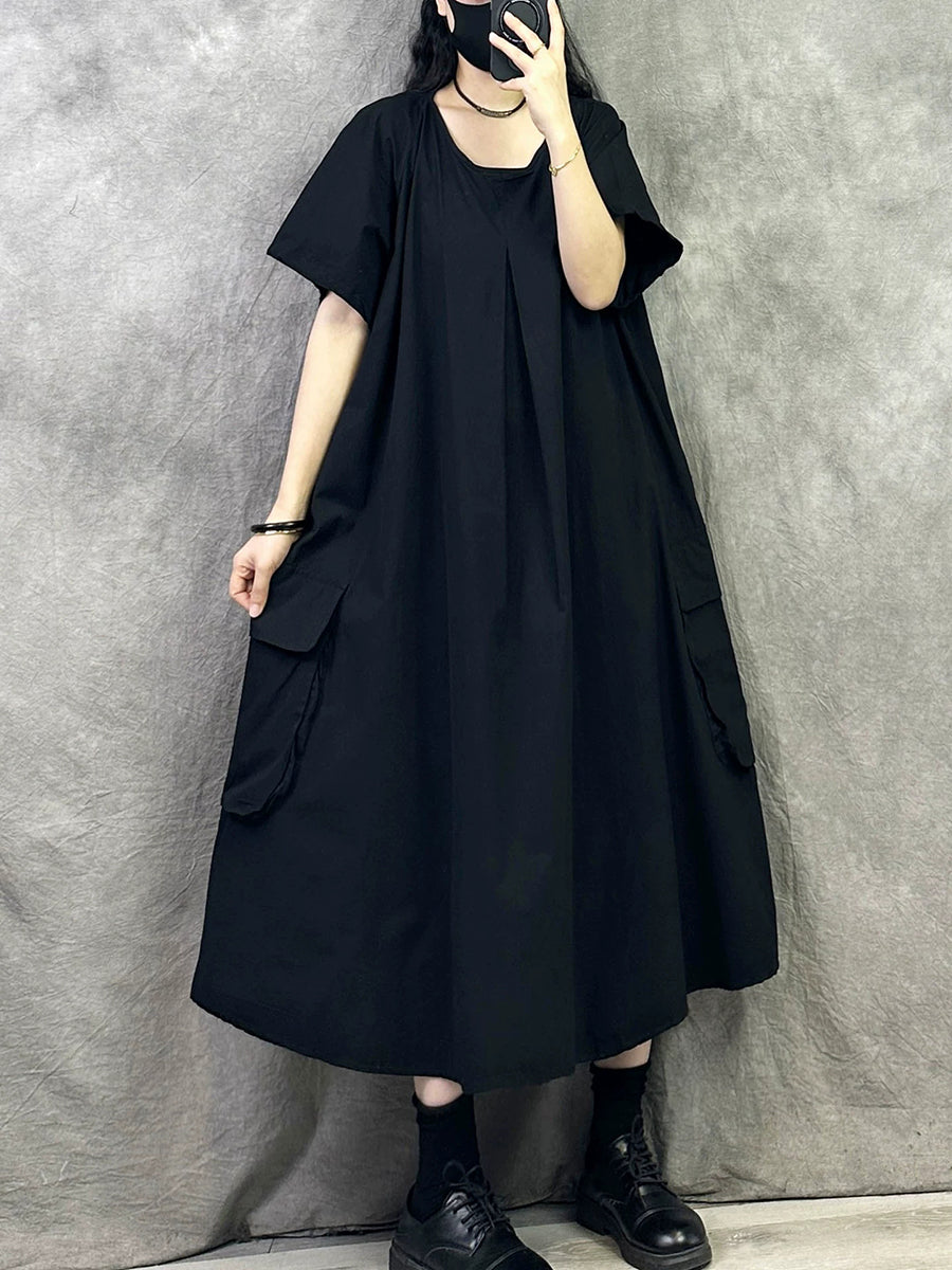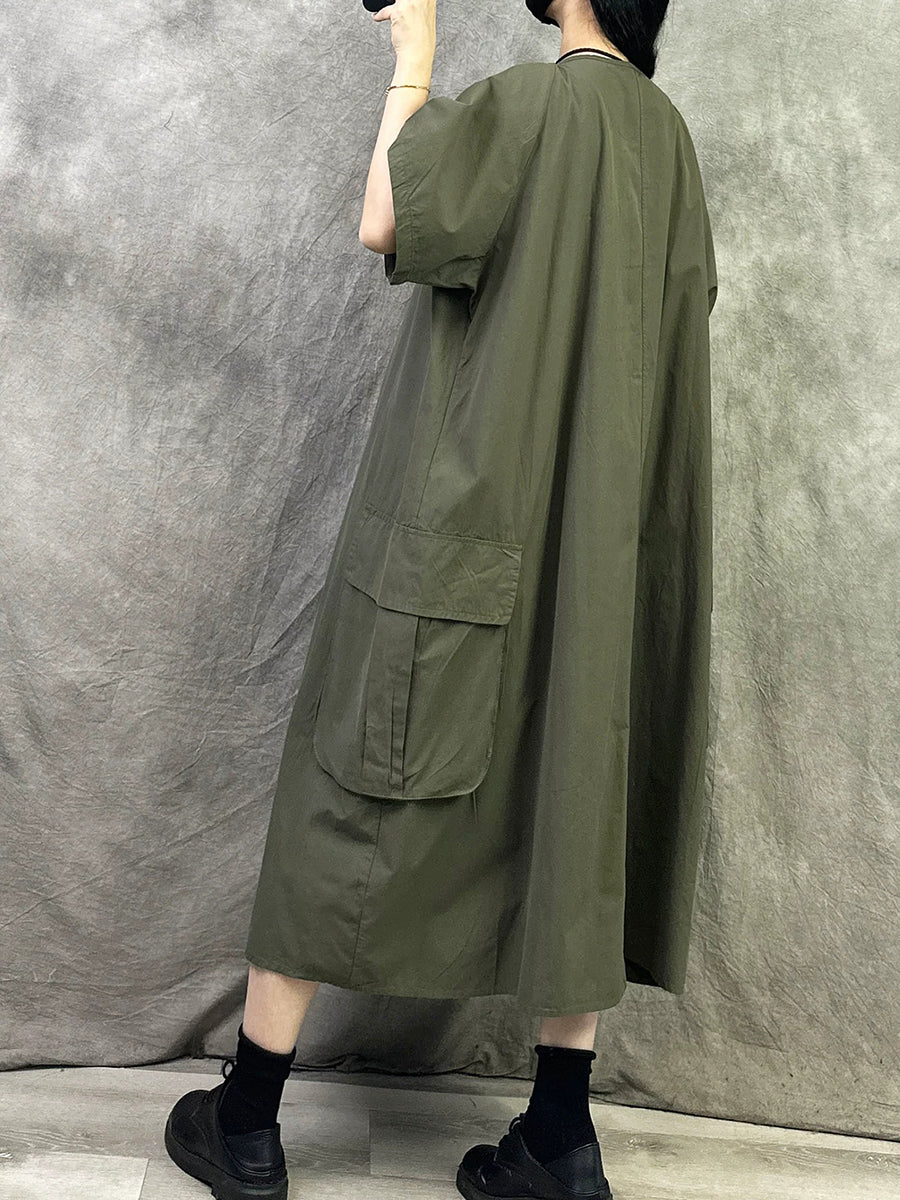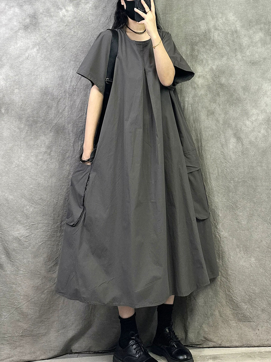 Women Summer Casual Pure Color Cotton O-Neck Dress