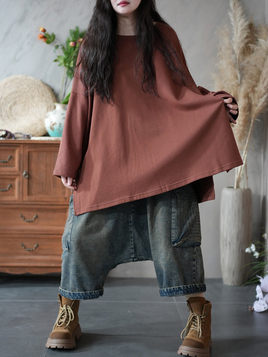 Women Spring Artsy Pure Color 100%Cotton Hoodie