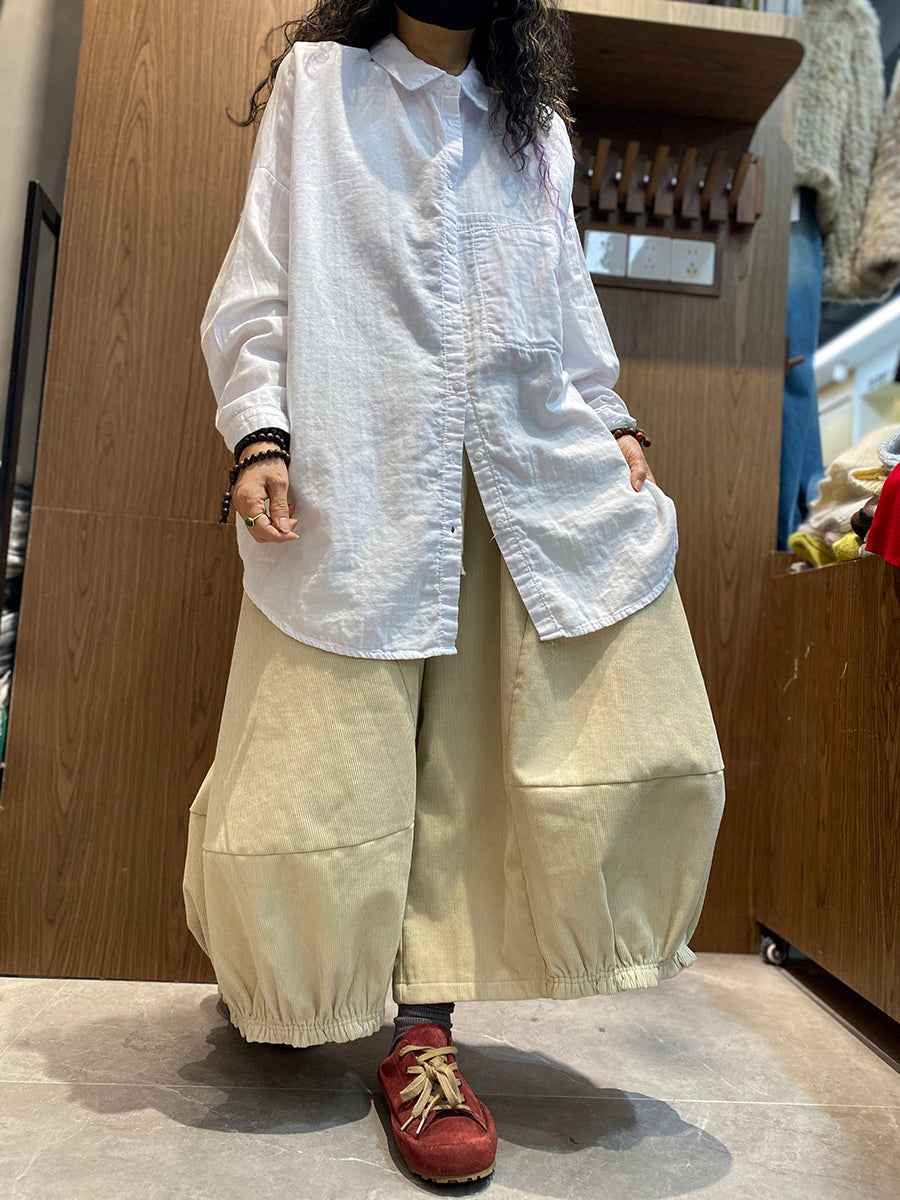 Women Spring Artsy Pure Color Turn-down Collar Shirt