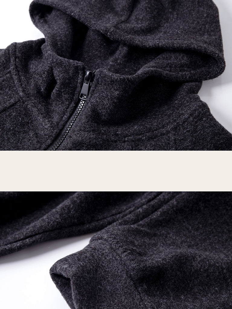Plus Size Women Winter Casual Pure Color Fleece-lined Hoodie