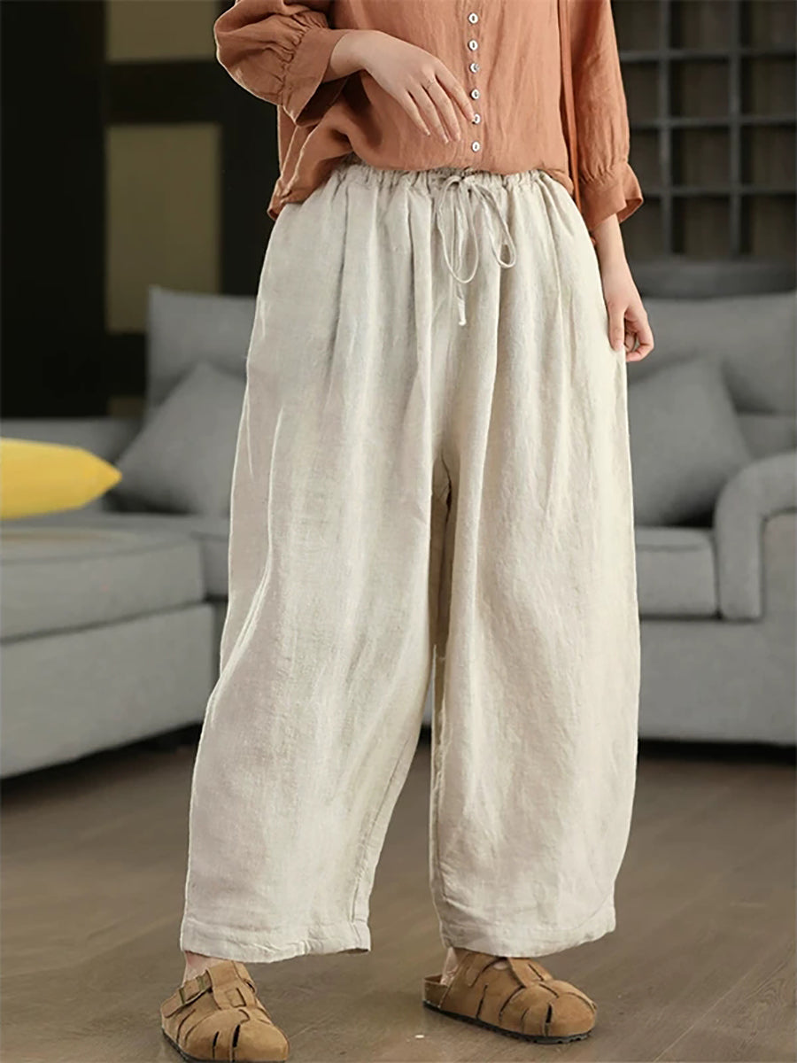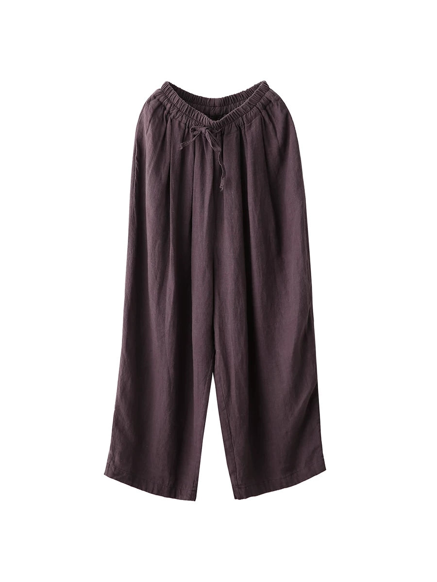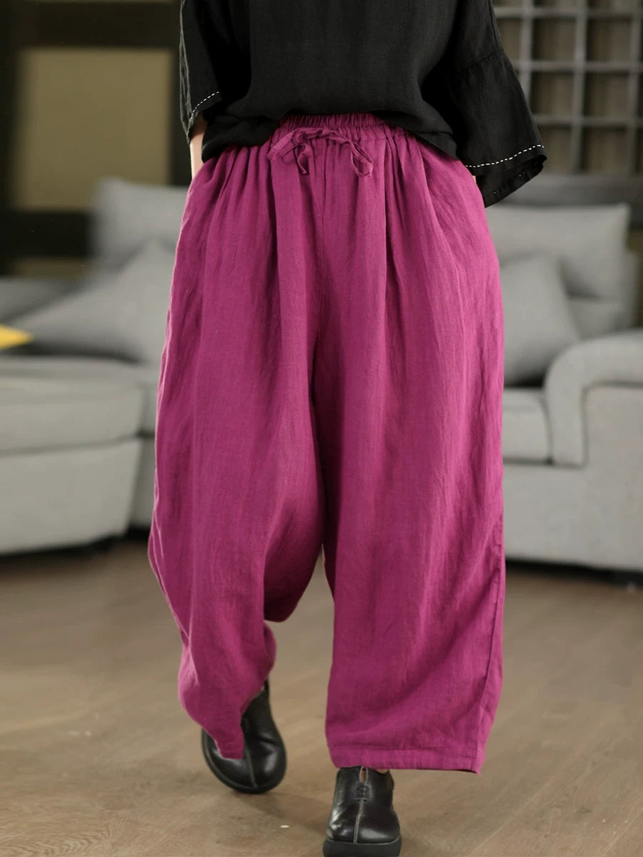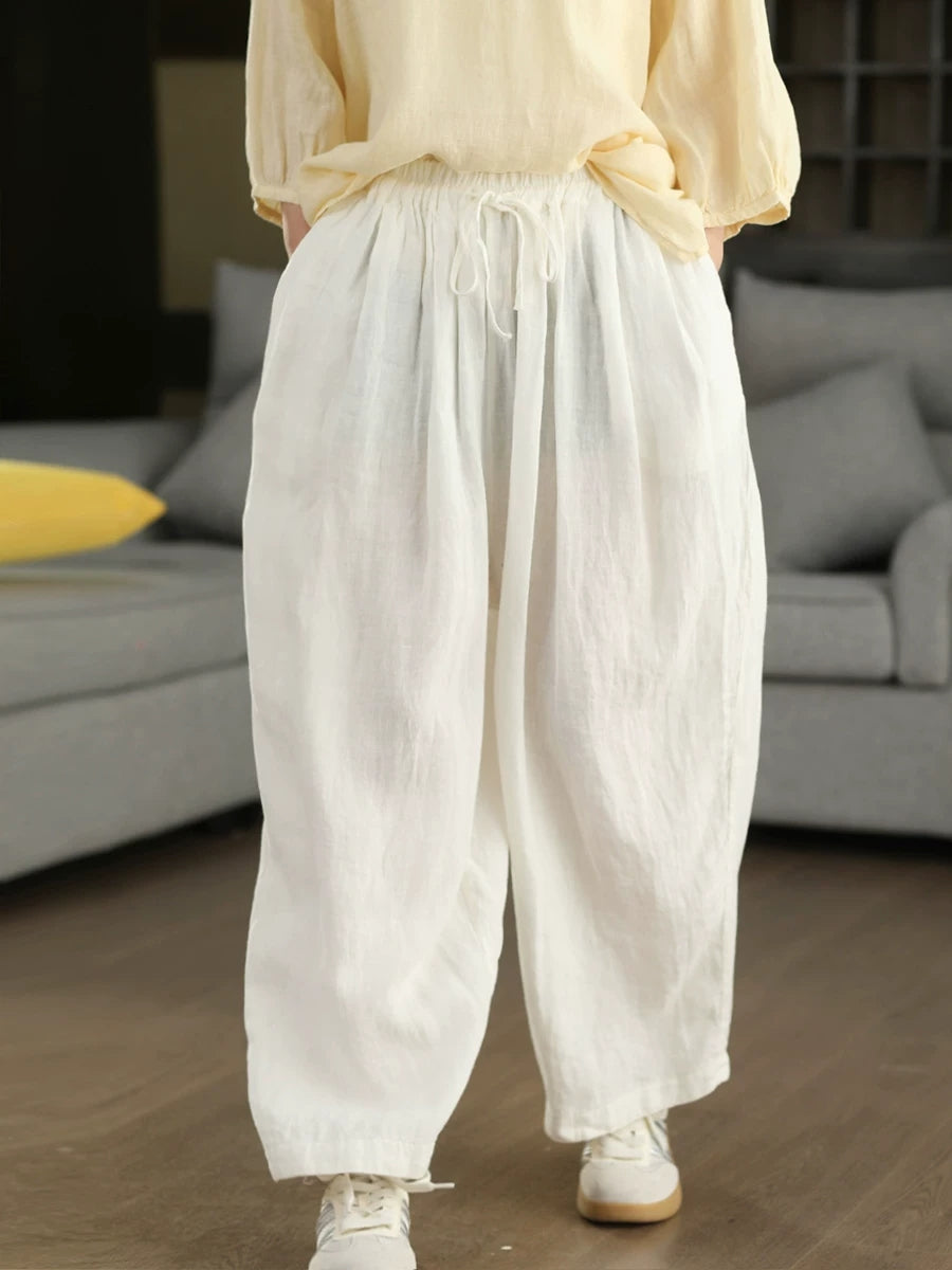 Women Summer Pure Color 100%Linen Harem Pants