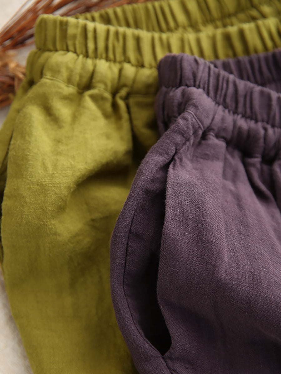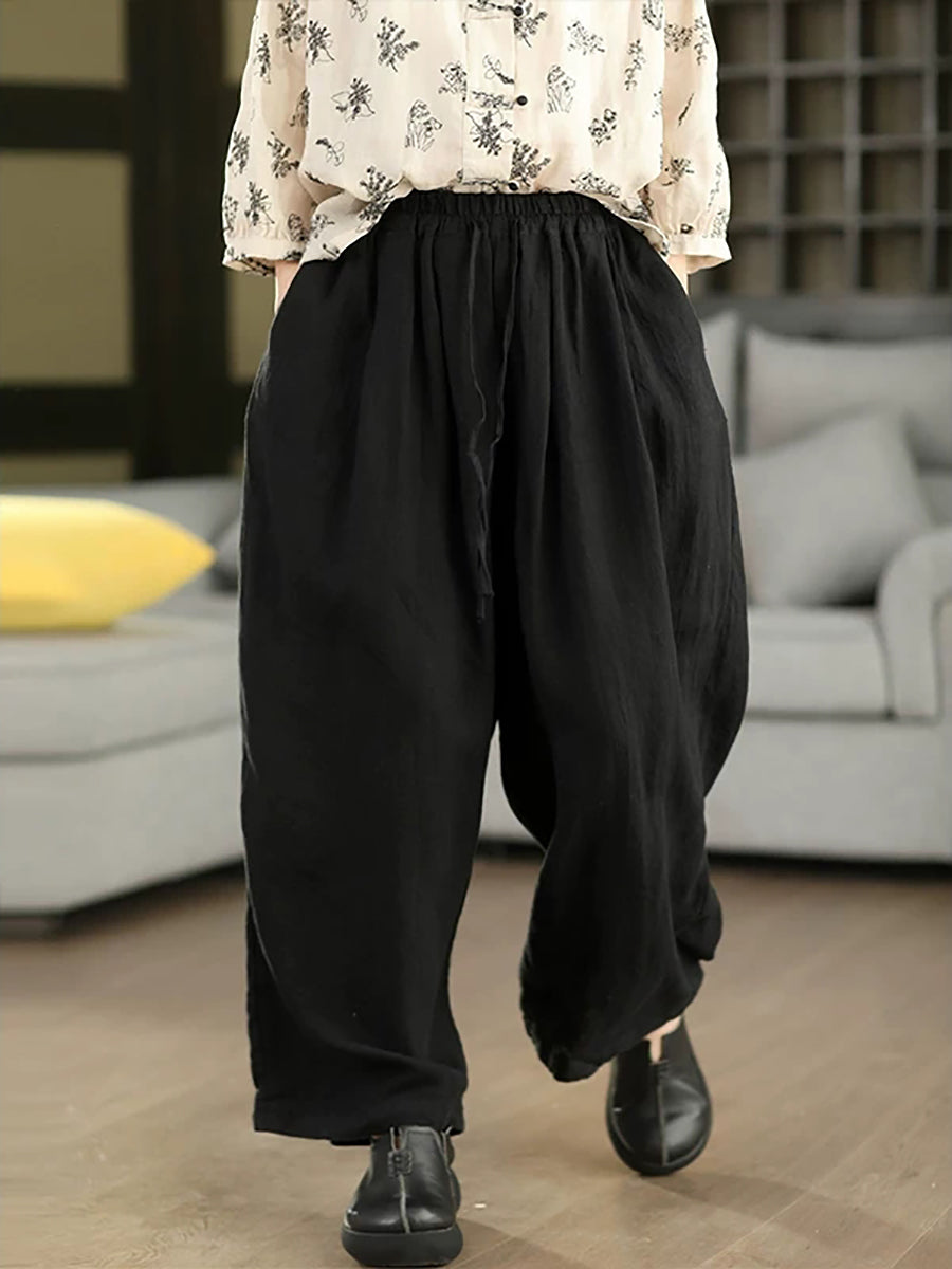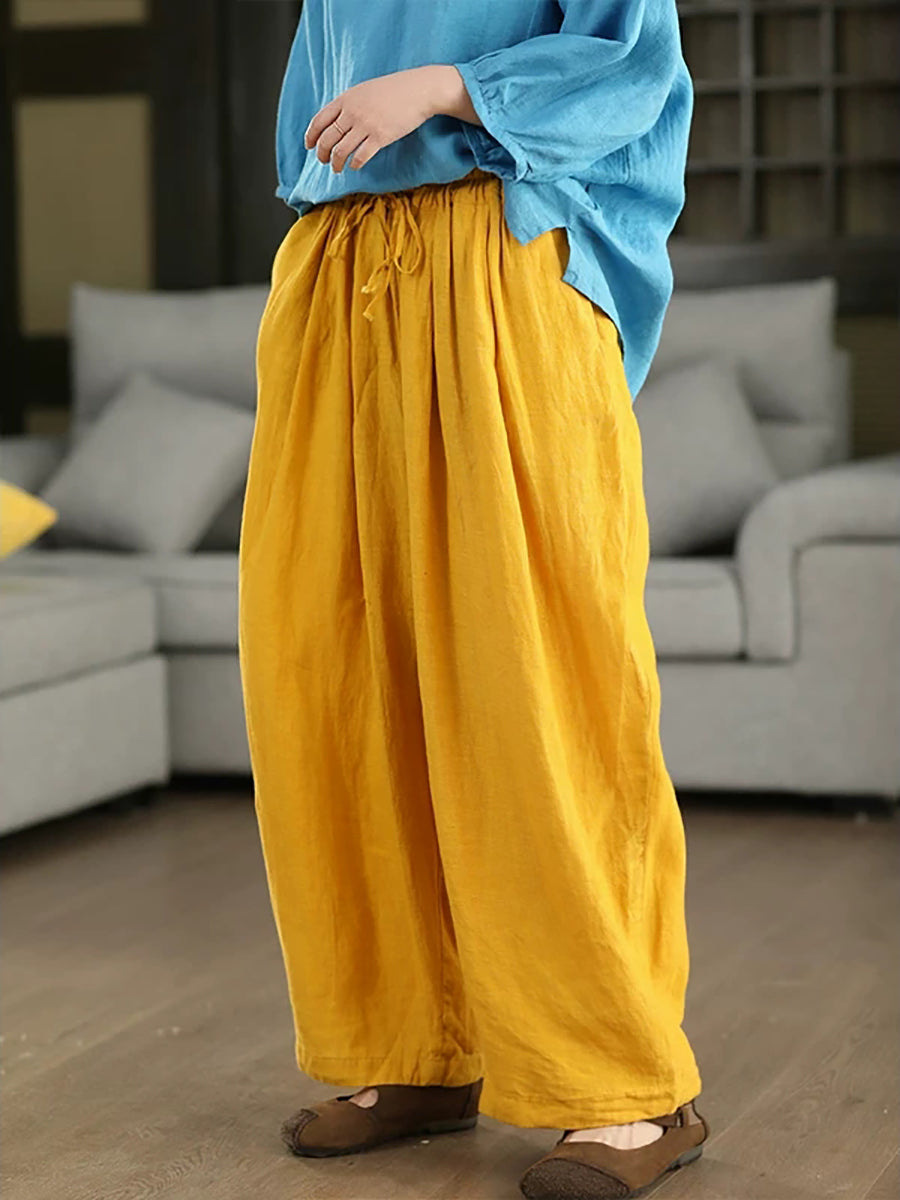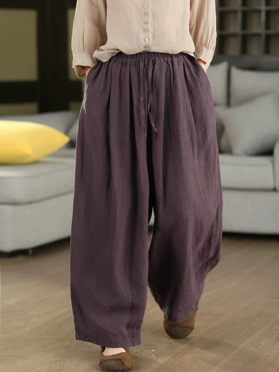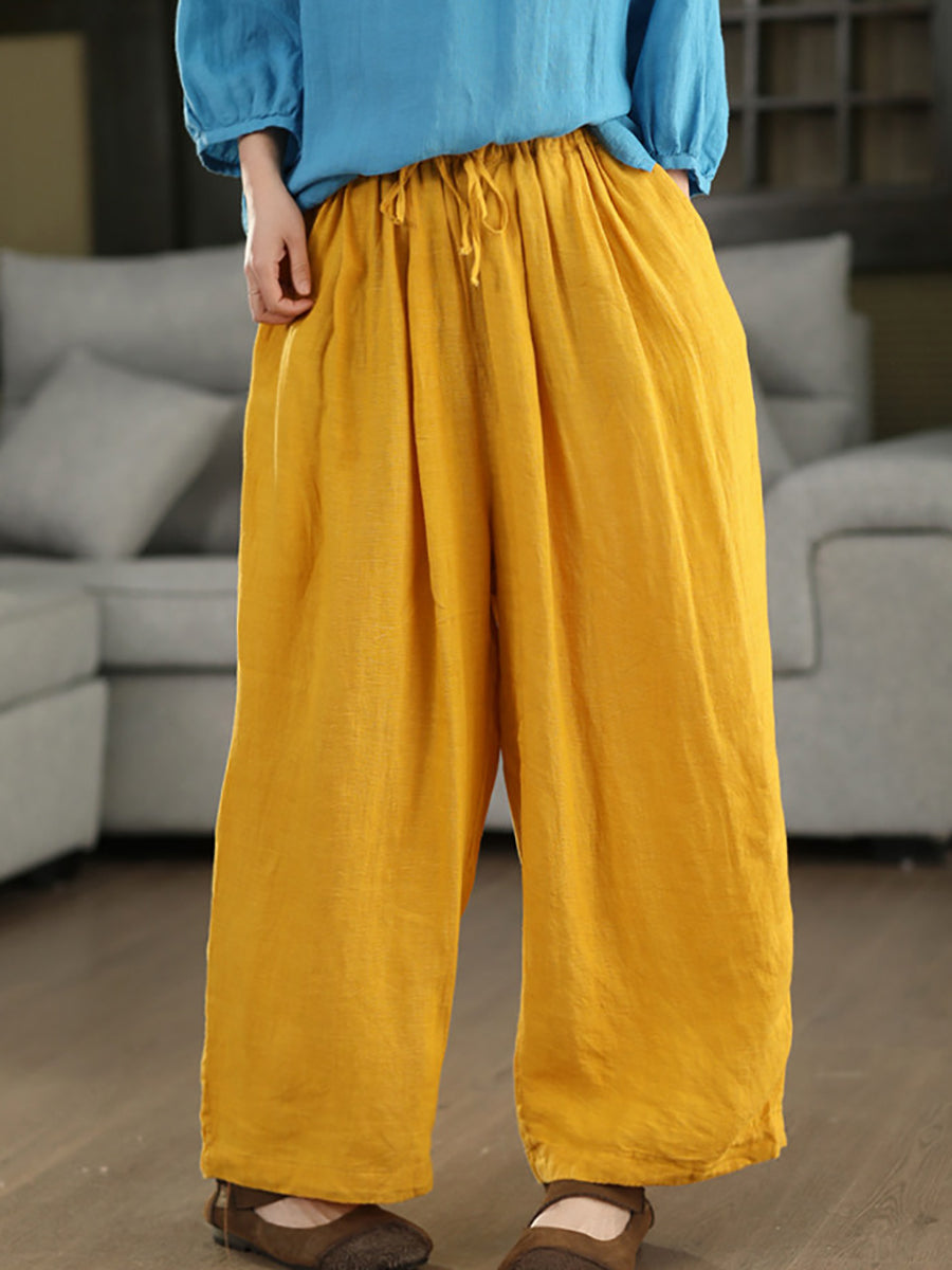 Women Summer Pure Color 100%Linen Harem Pants