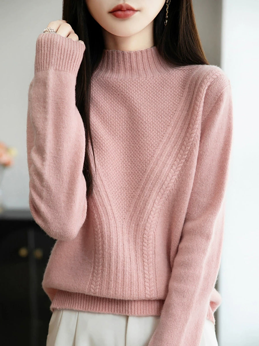 Women Winter Pure Color Half-Turtleneck Sweater