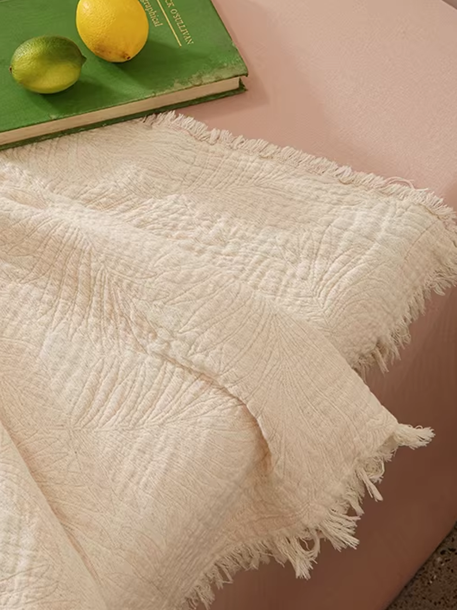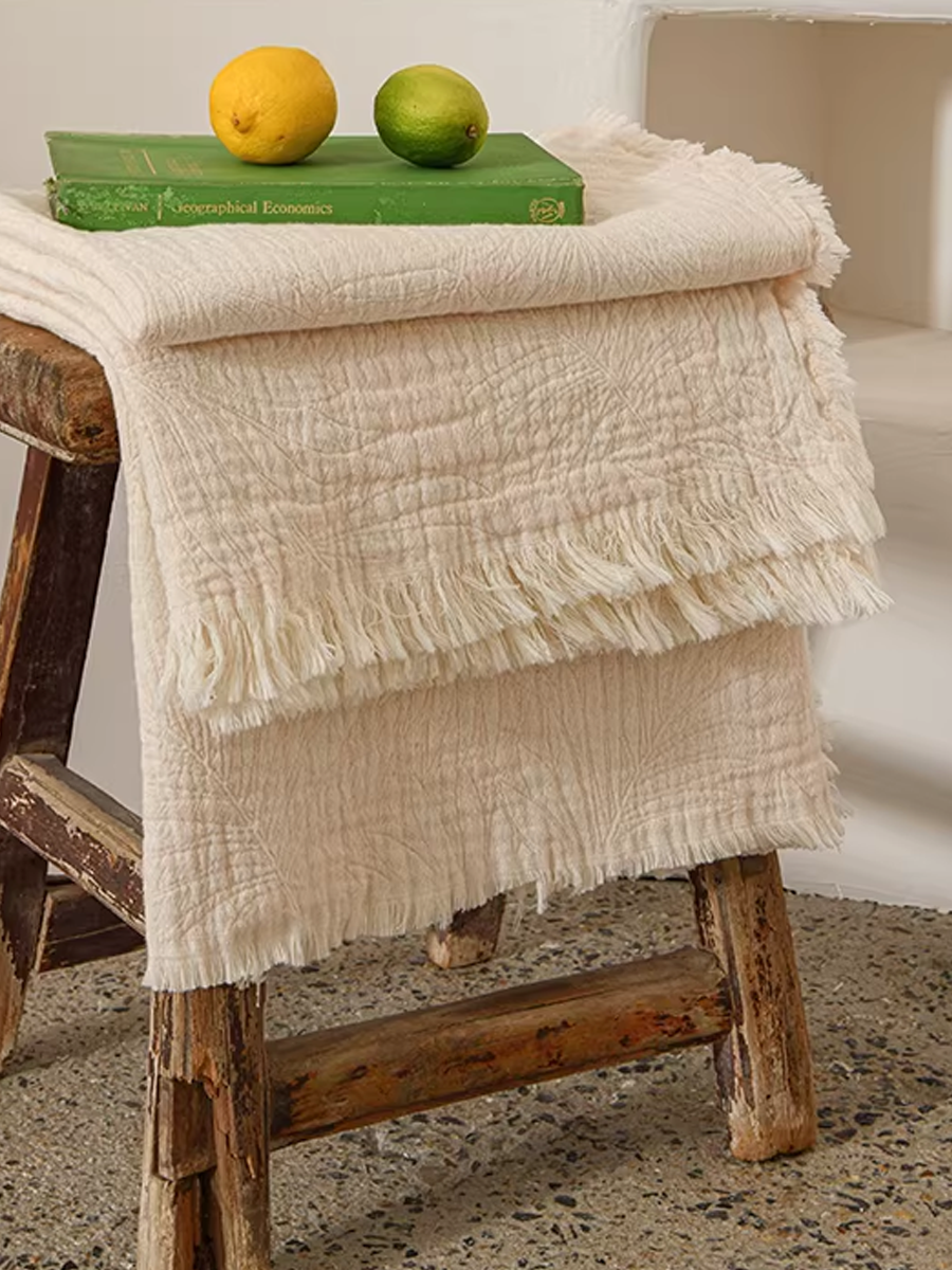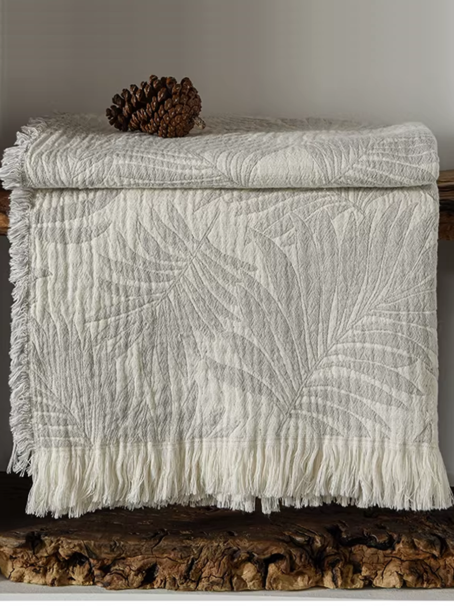 Yarn-Dyed Double-Ply Plants Jacquard Throw Blanket