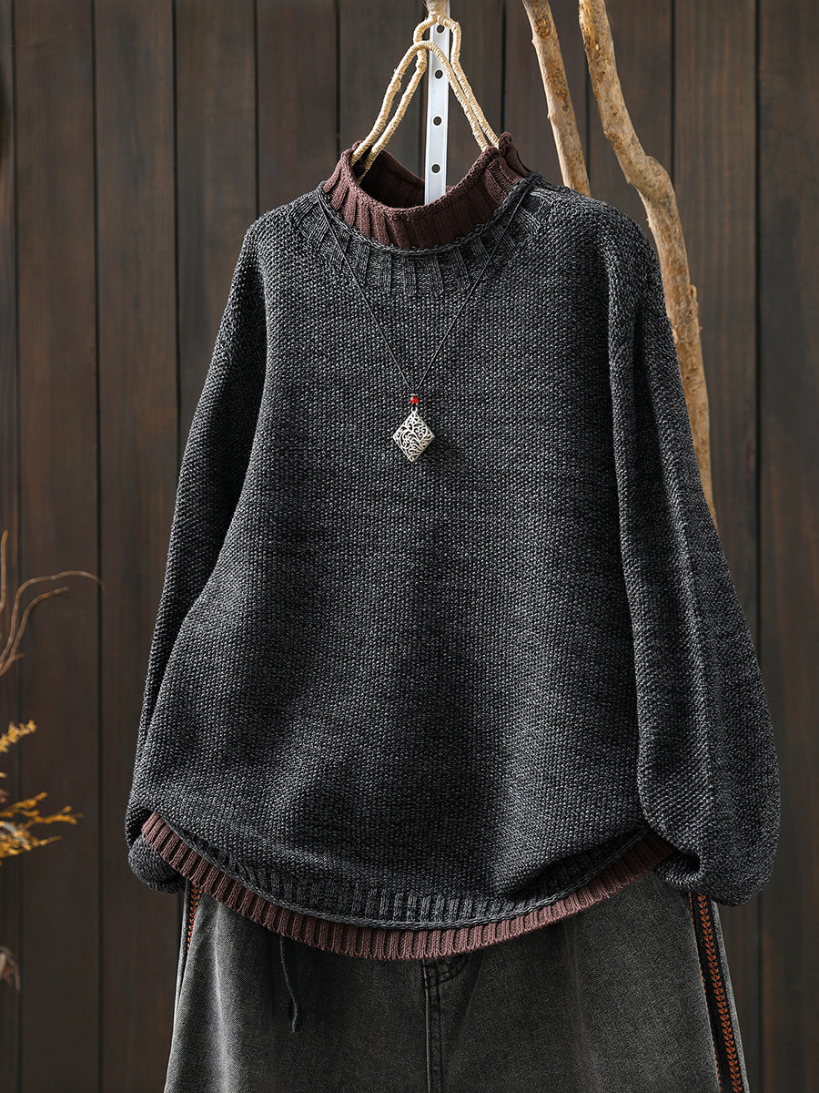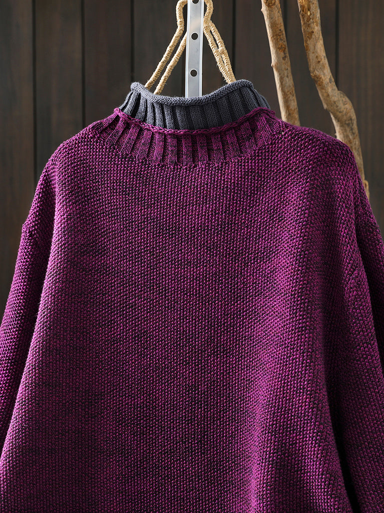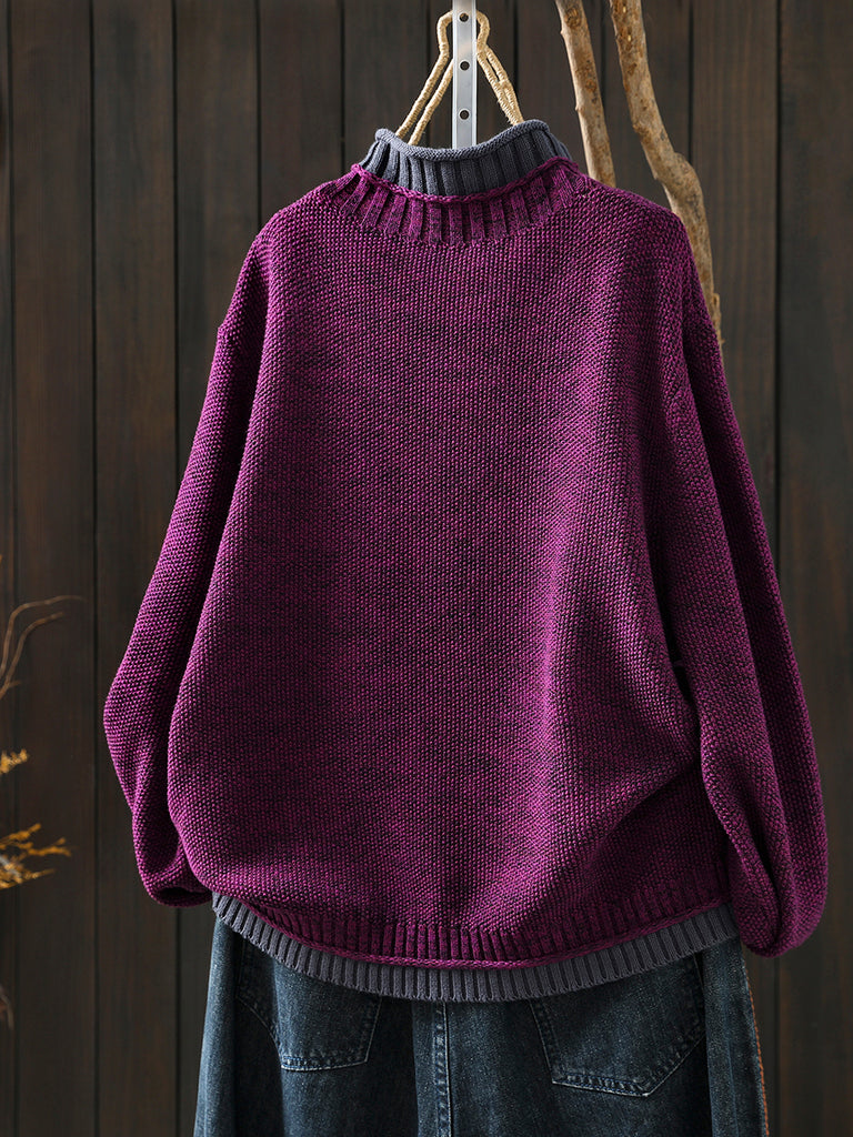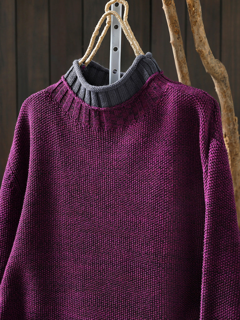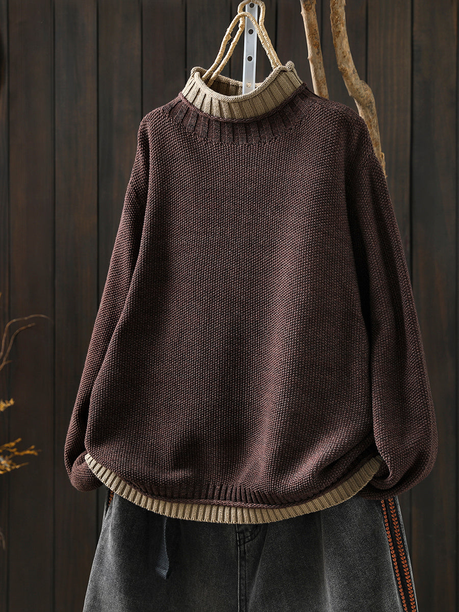 Women Autumn Artsy Colorblock Half-Turtleneck Sweater