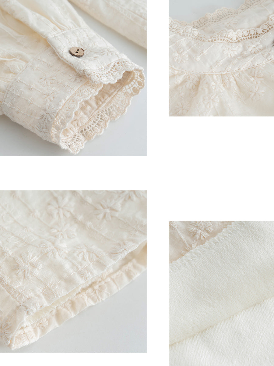 Women Artsy Autumn Embroidery Lace Collar Shirt