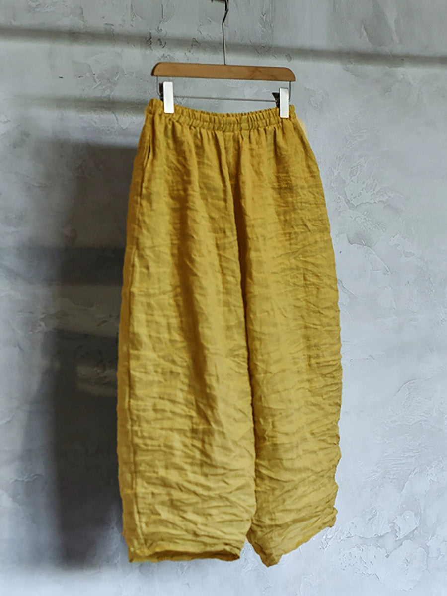 Women Spring Retro Pure Color Linen Wide-leg Pants