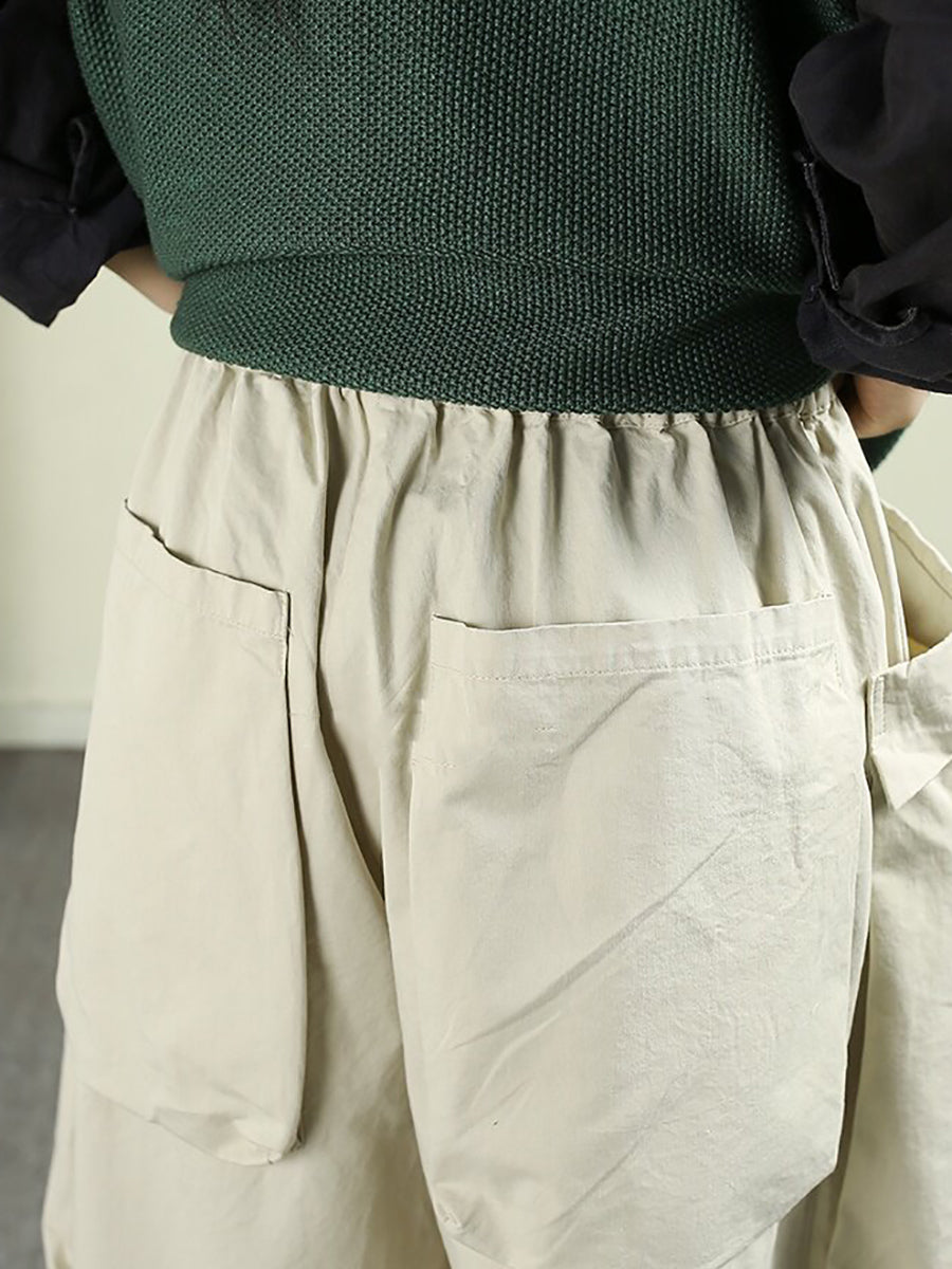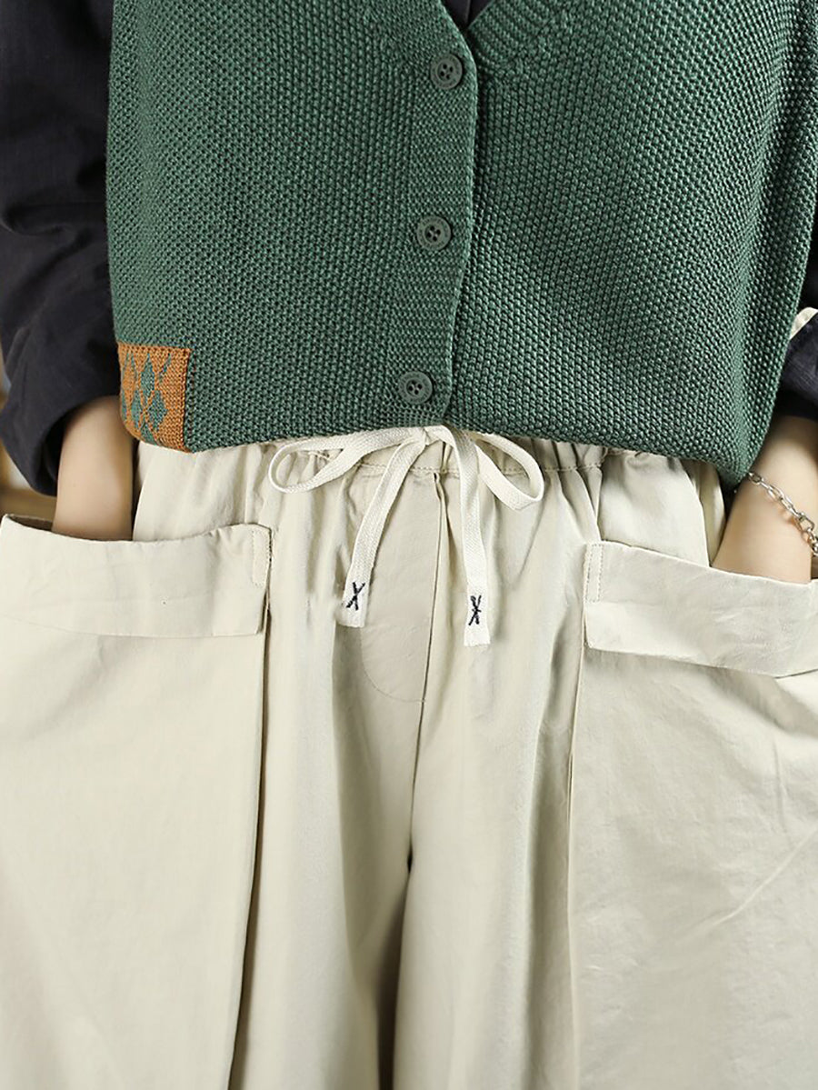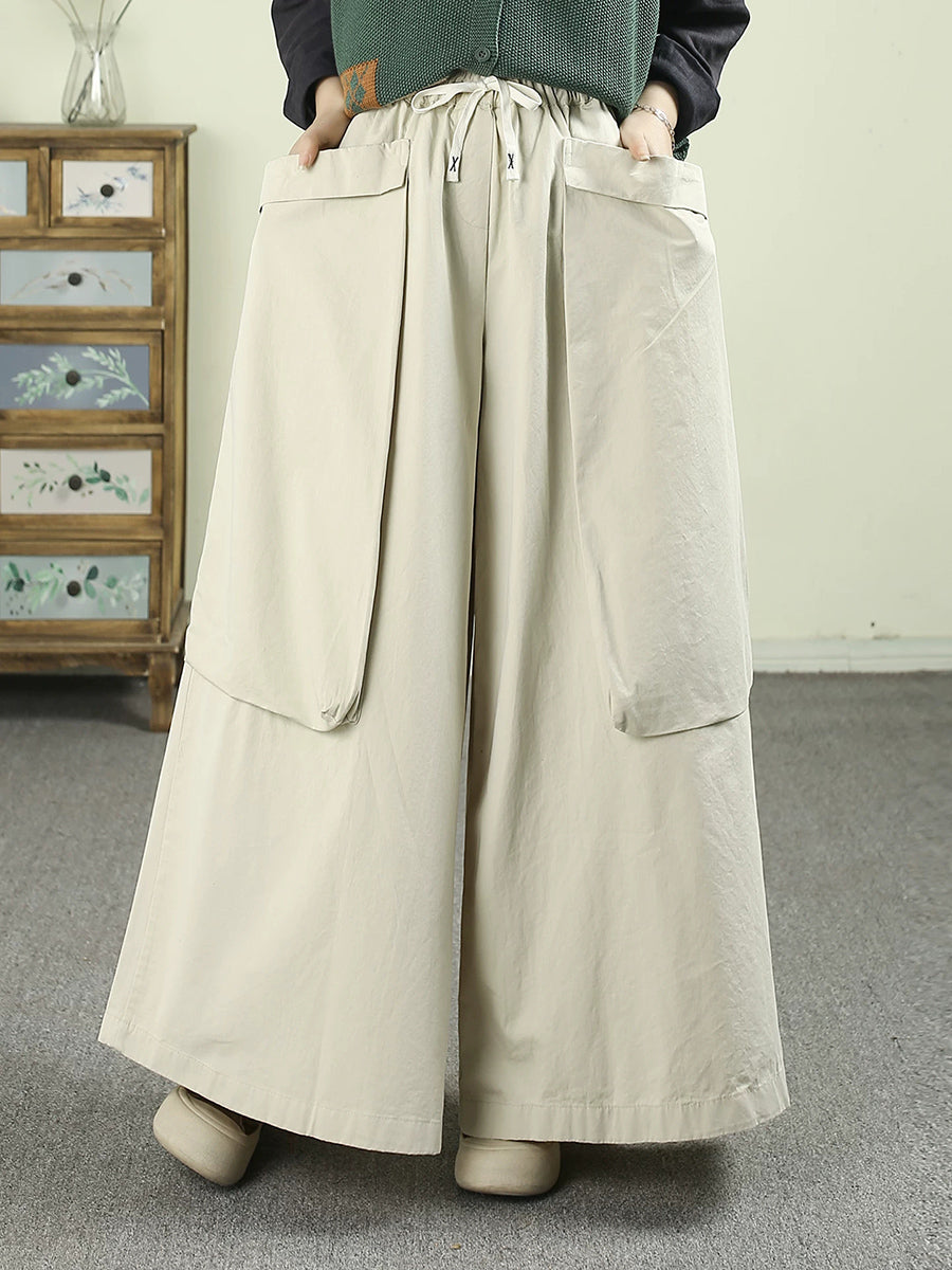 Women Spring Casual Pure Color Cotton Wide-leg Pants