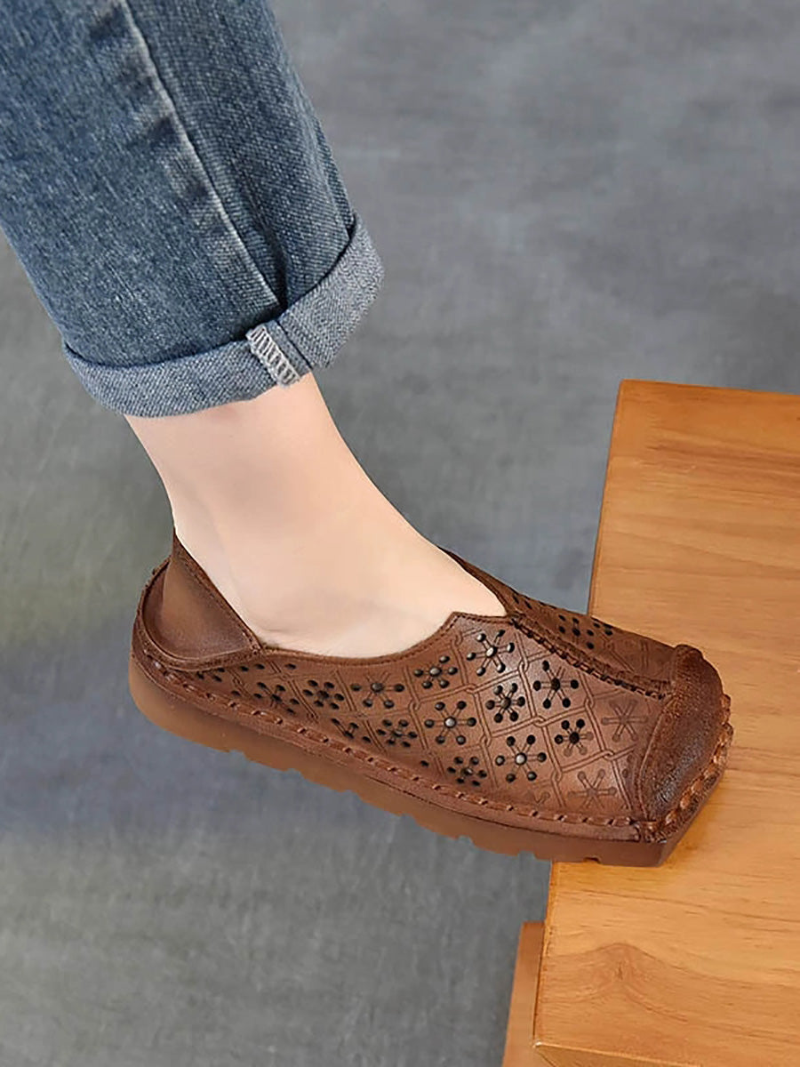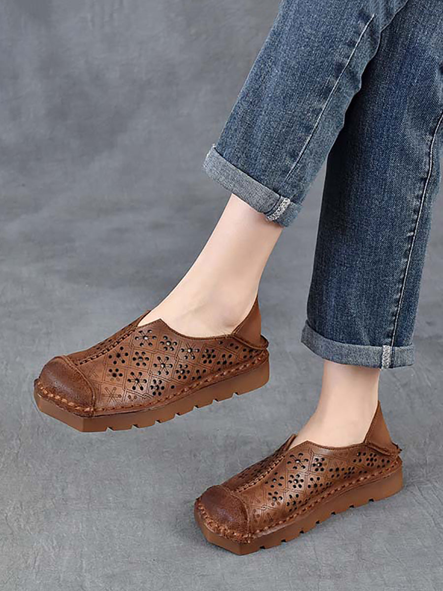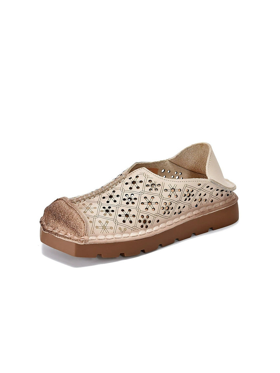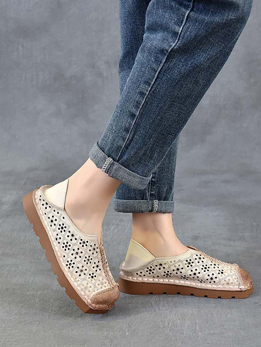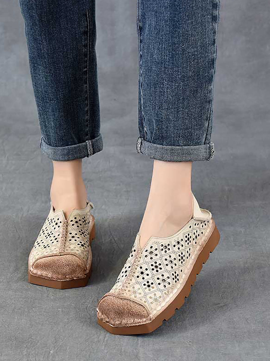 Women Summer Genuine Leather Spliced Hollow Out Shoes