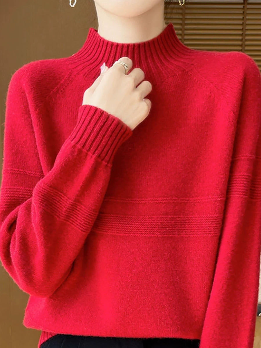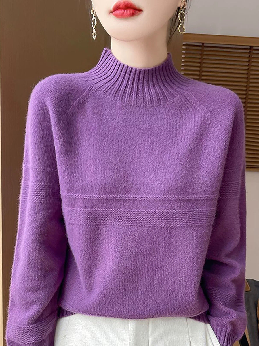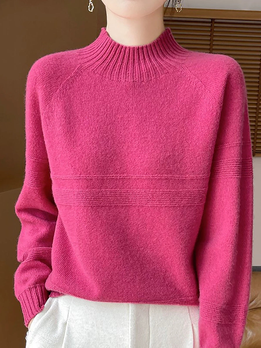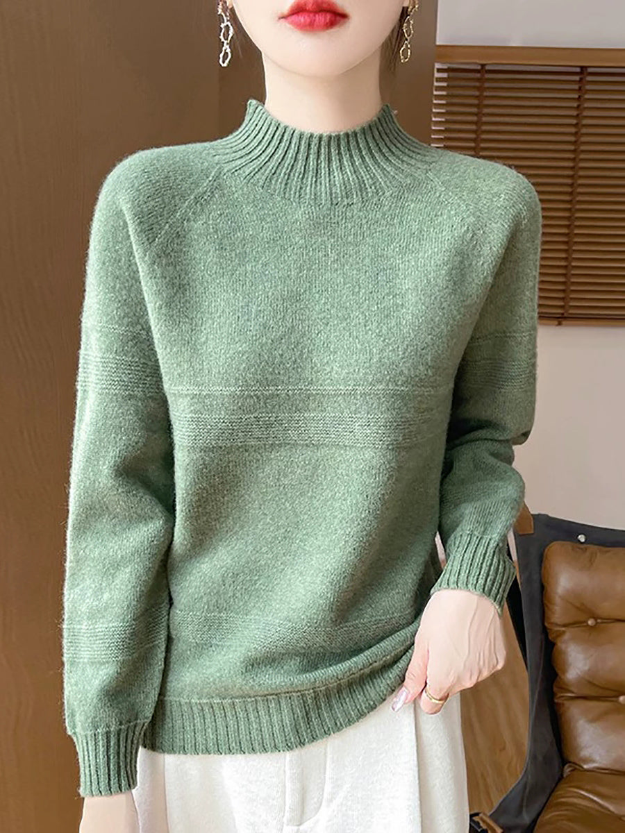 Women Artsy Winter Pure Color Turtleneck Wool Sweater