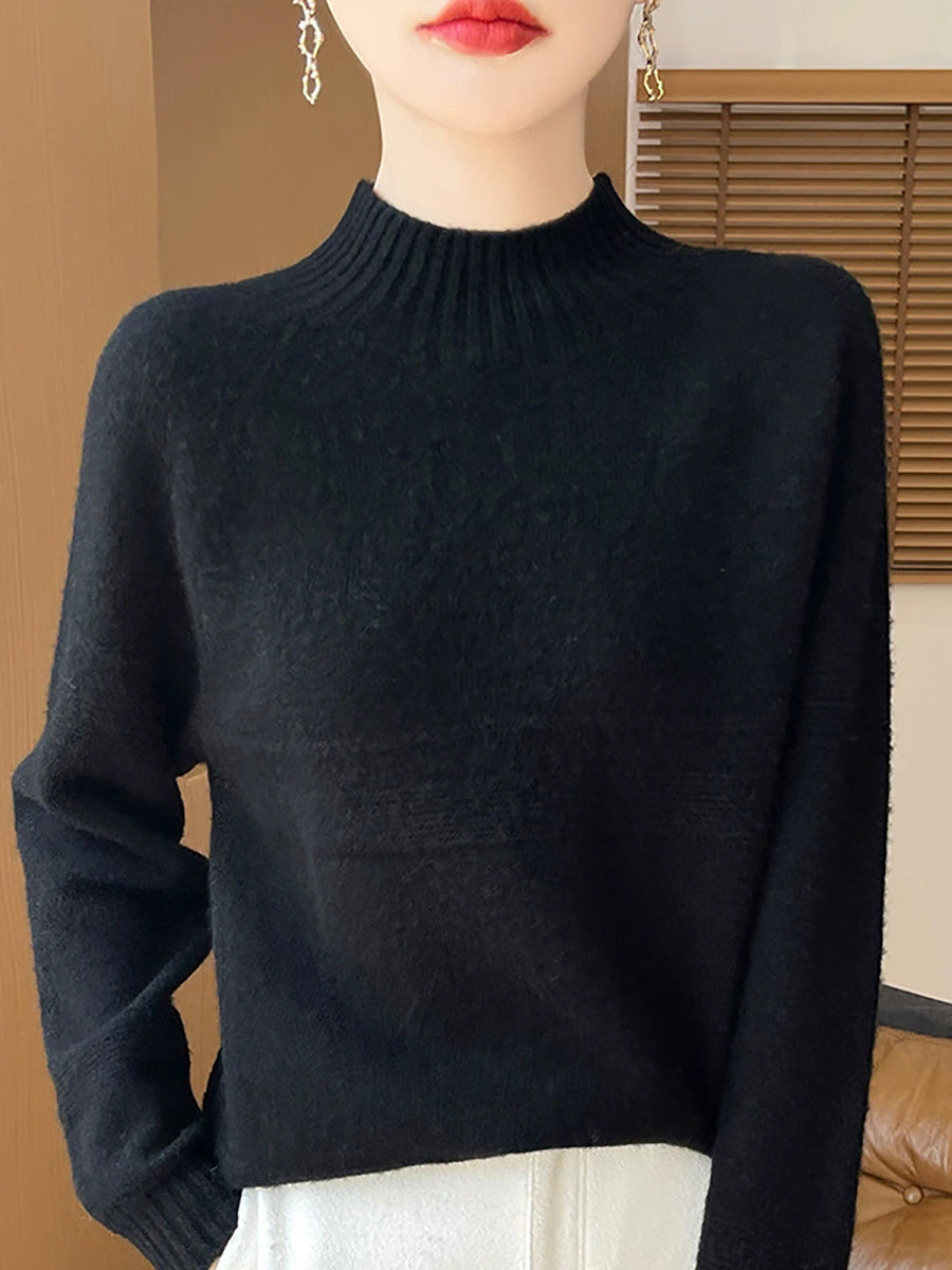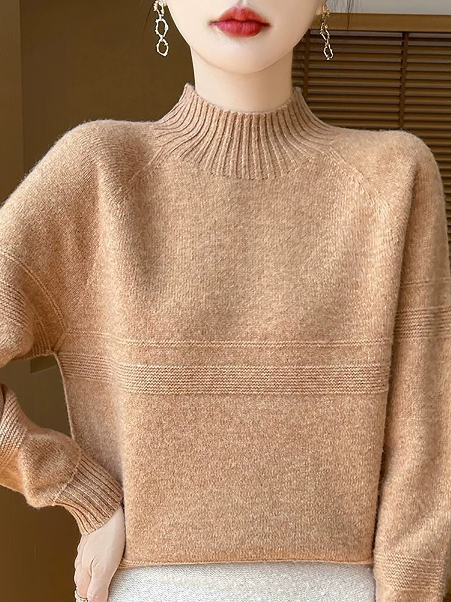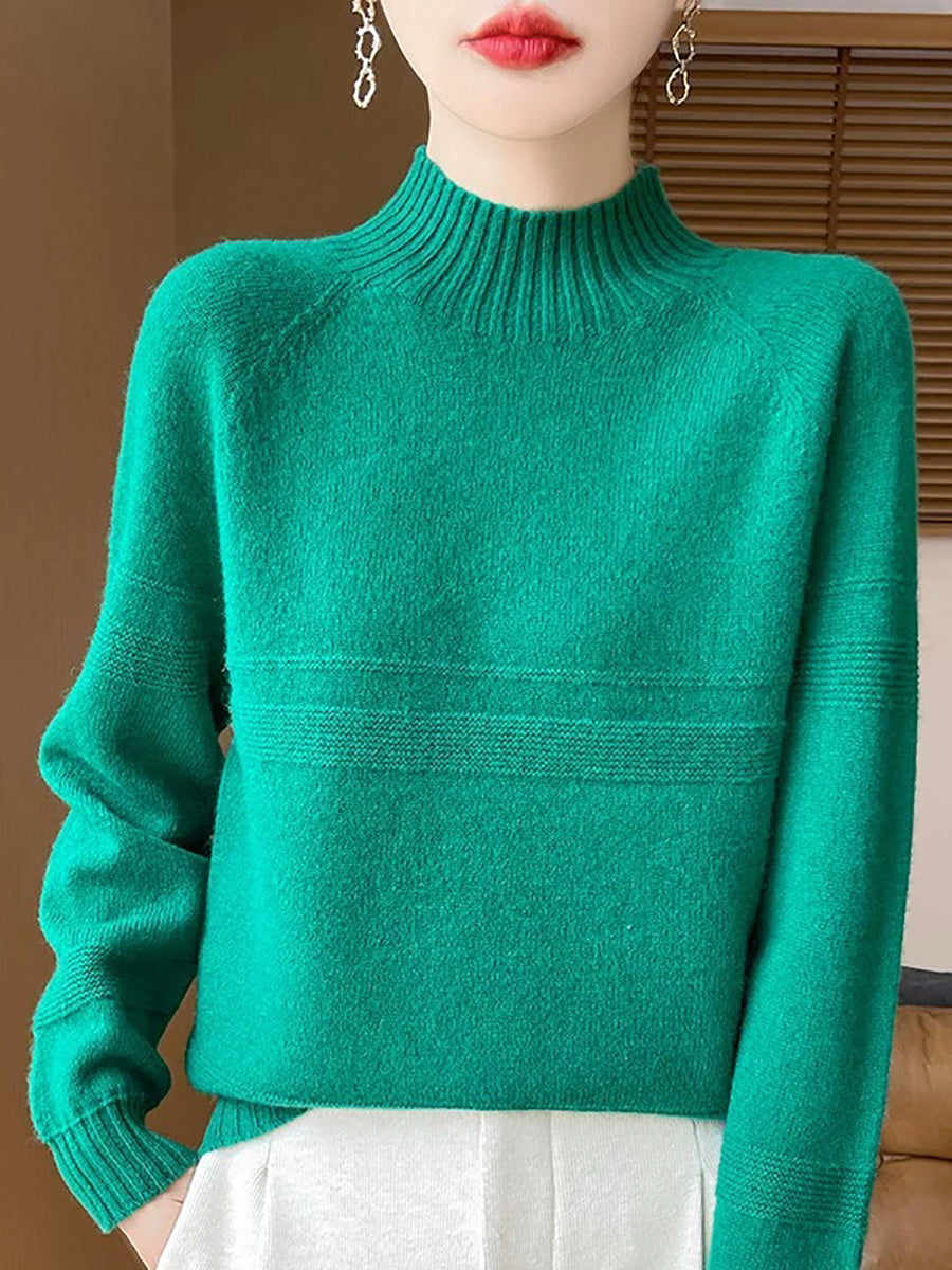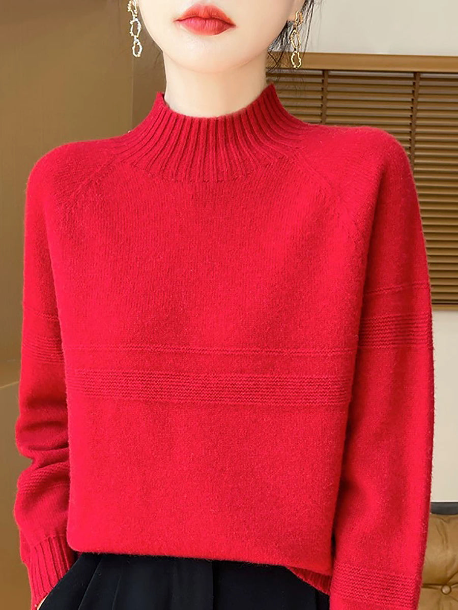 Women Artsy Winter Pure Color Turtleneck Wool Sweater