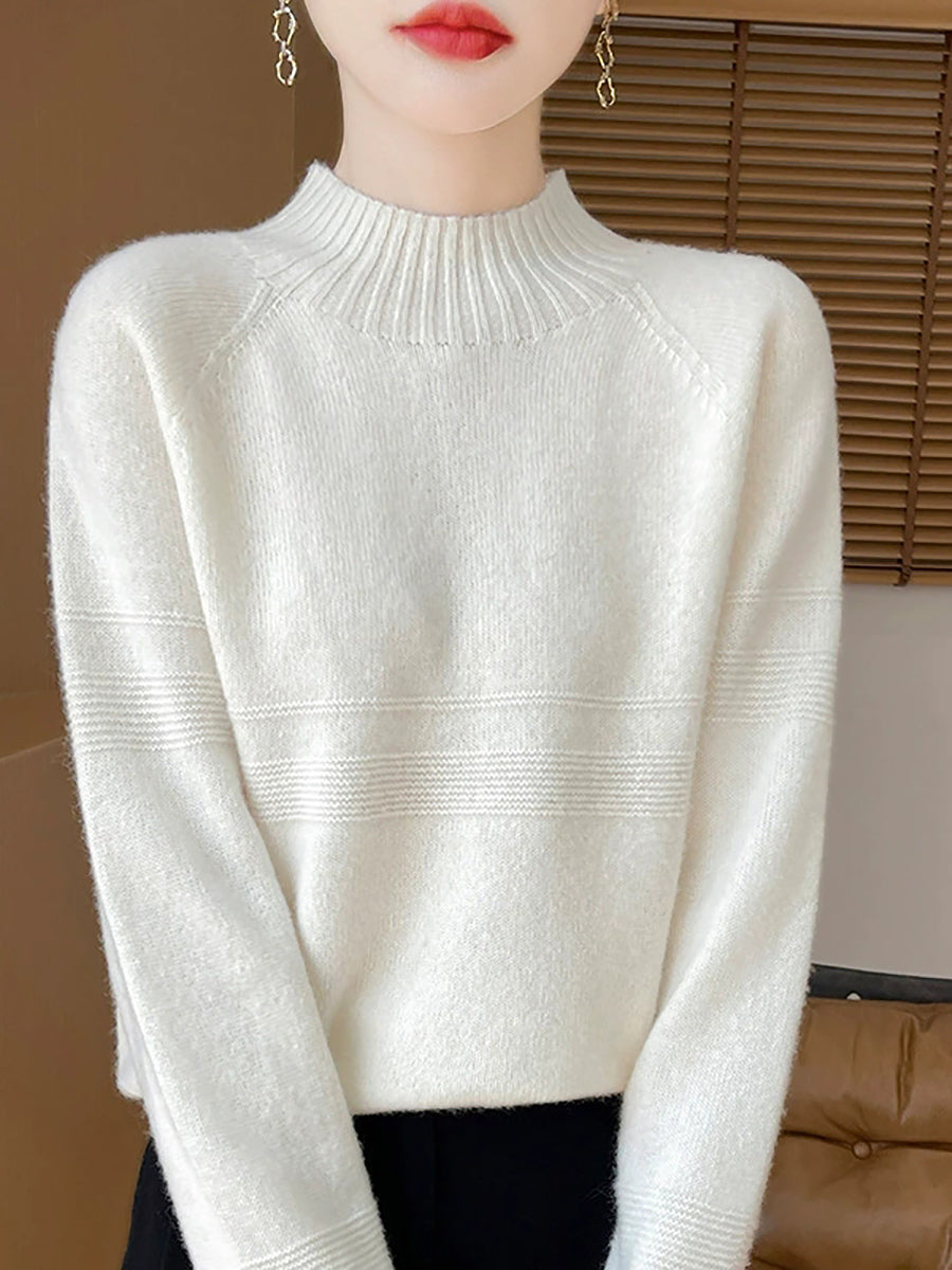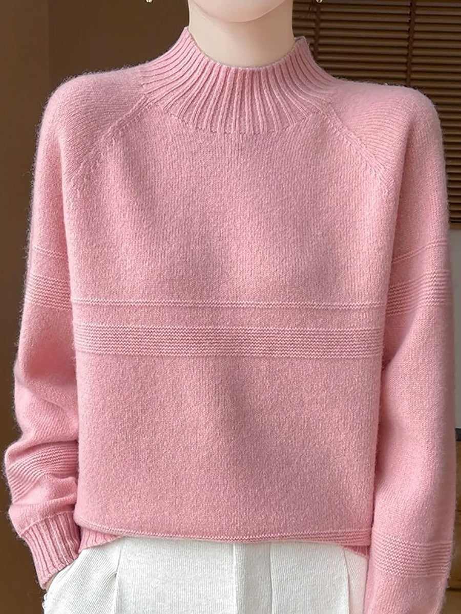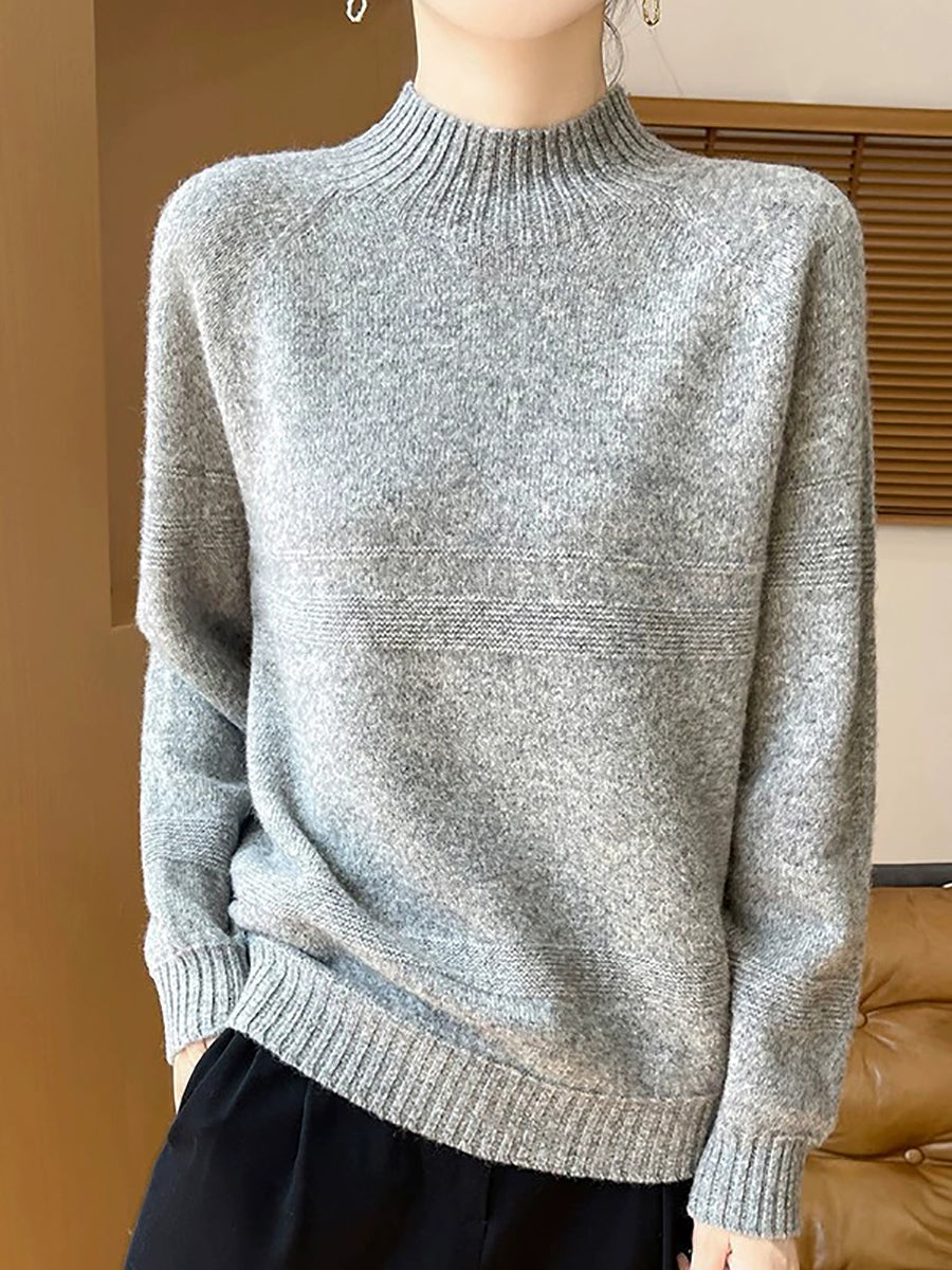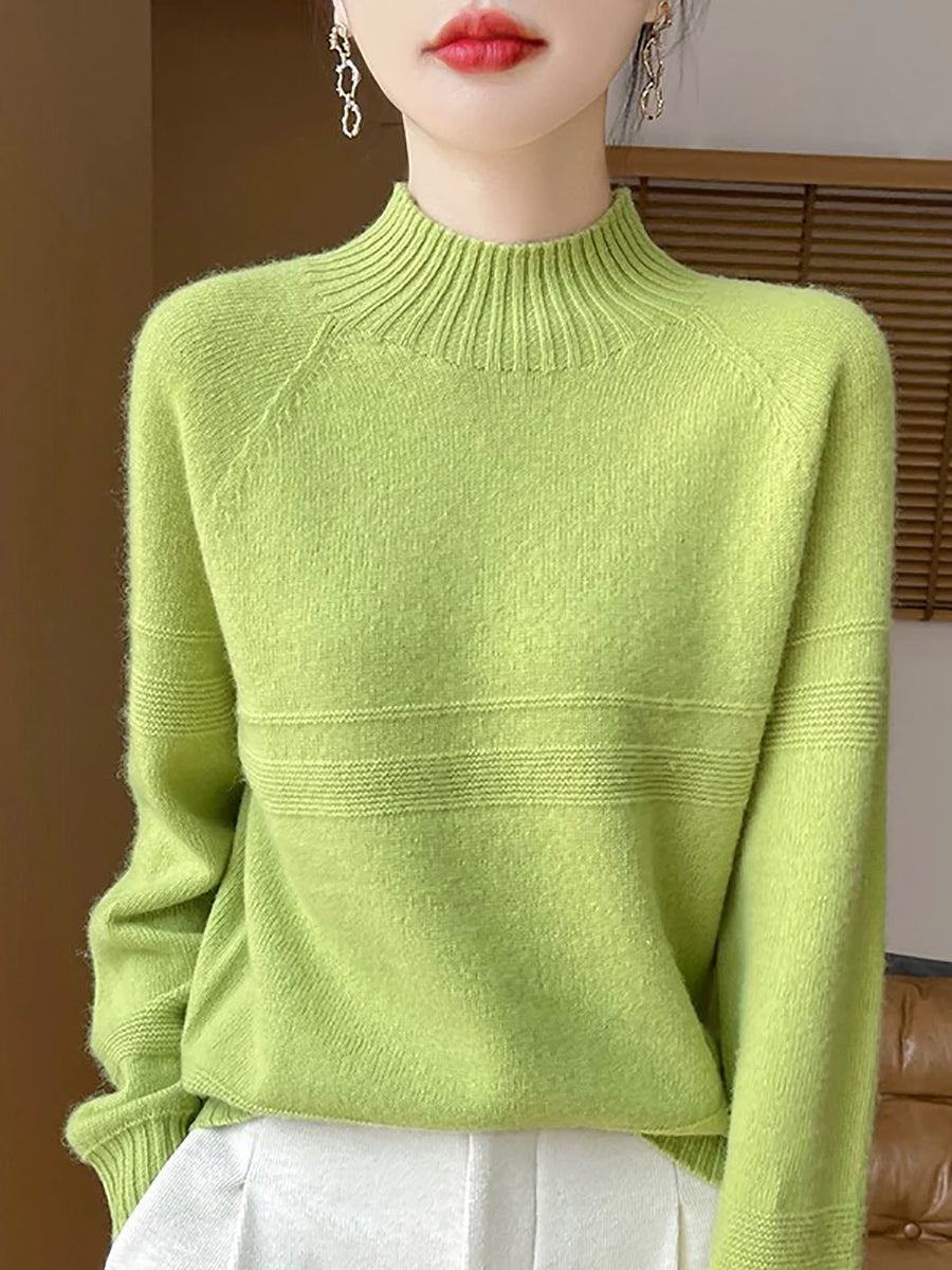 Women Artsy Winter Pure Color Turtleneck Wool Sweater
