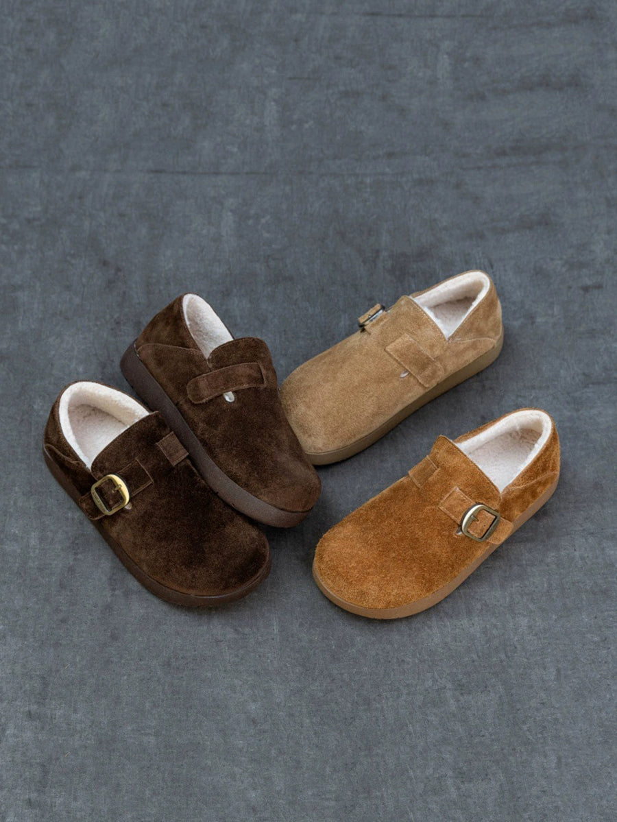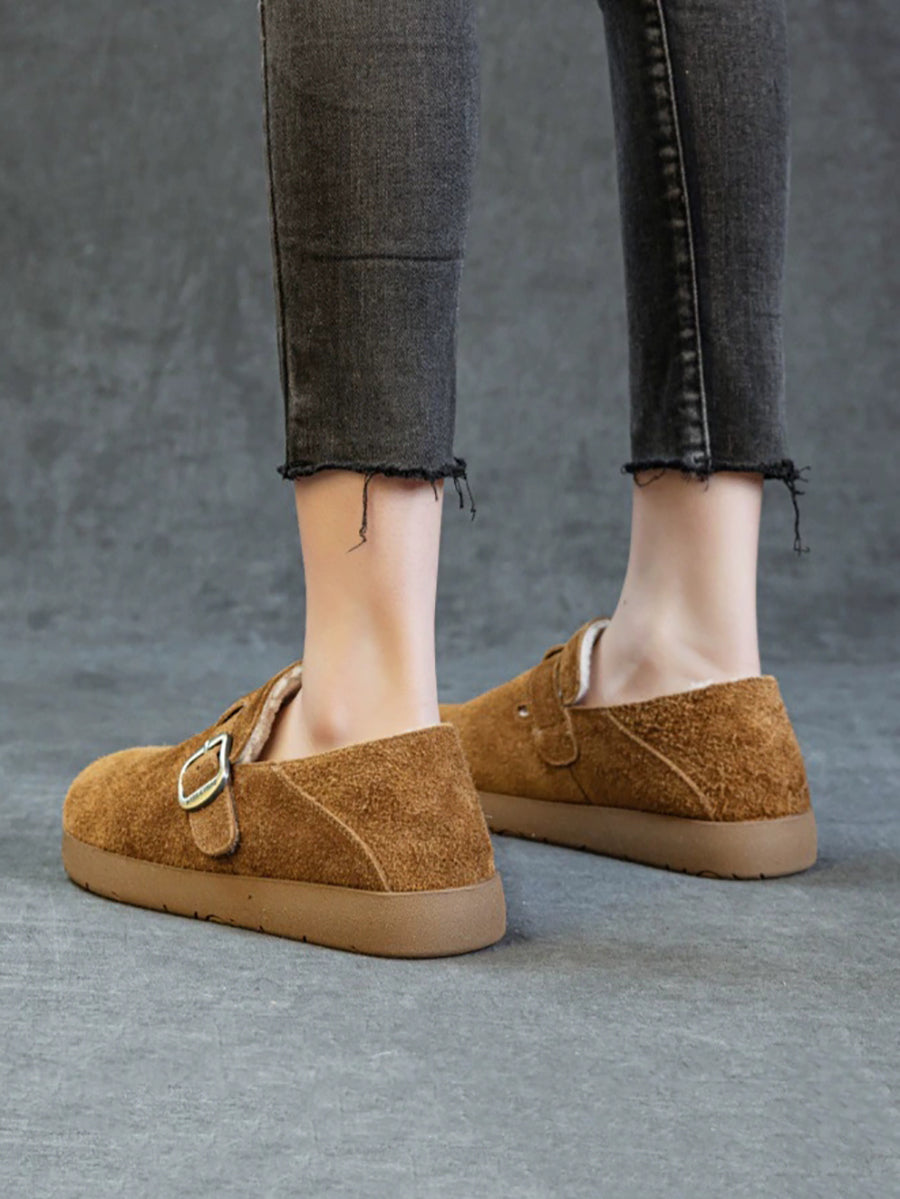 Women Winter Suded Leather Fleece-lined Flat Shoes