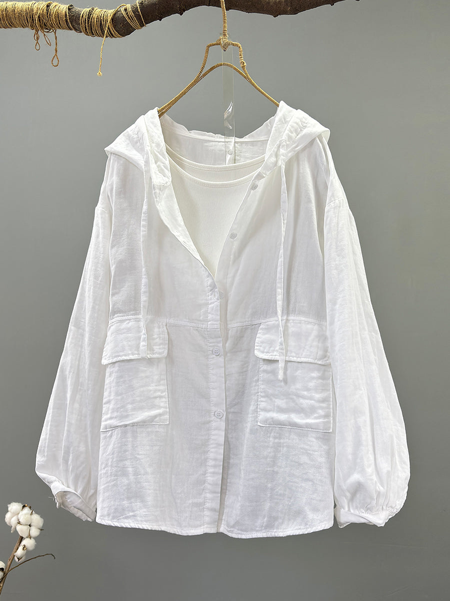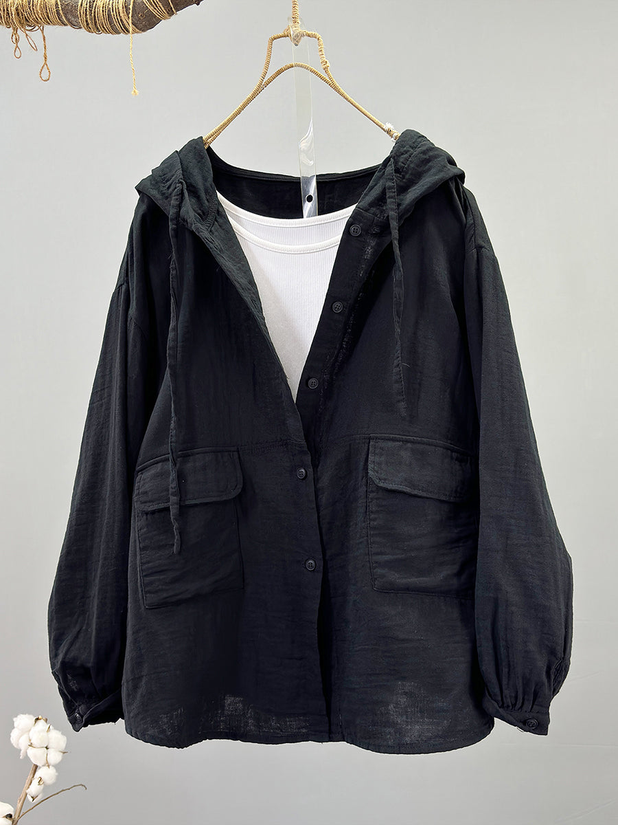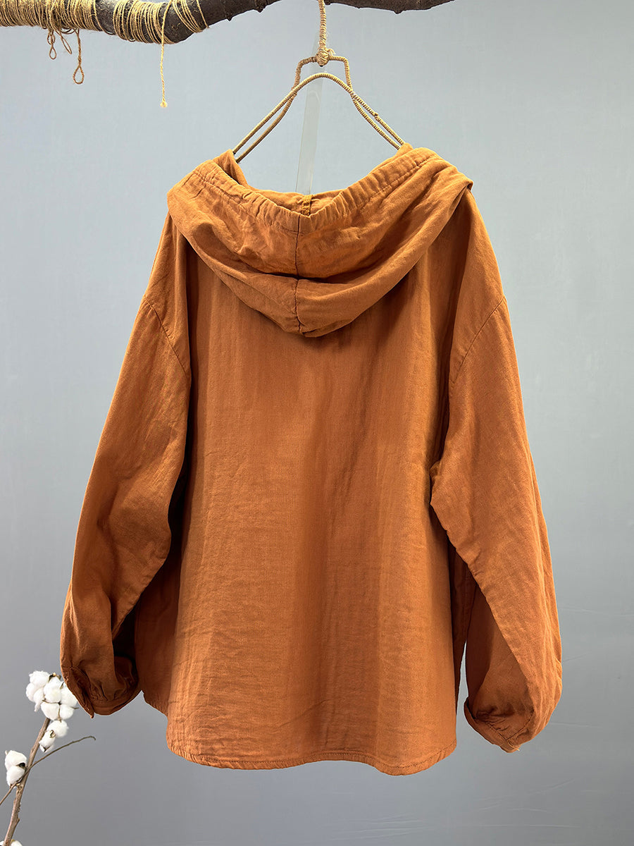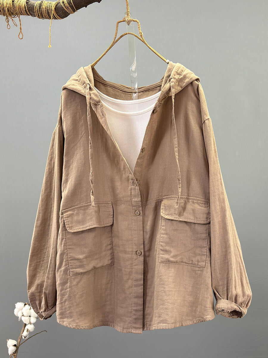 Women Spring Casual 100%Cotton Hooded Coat