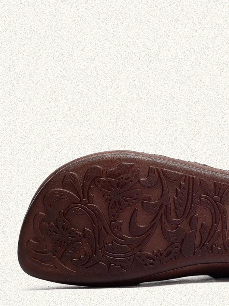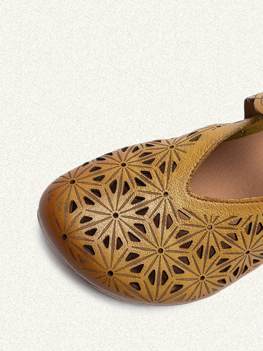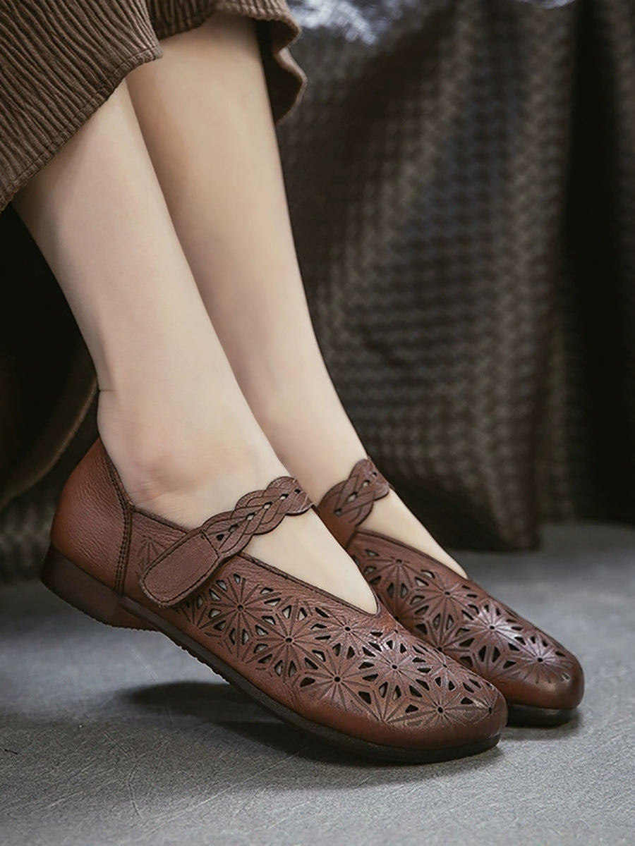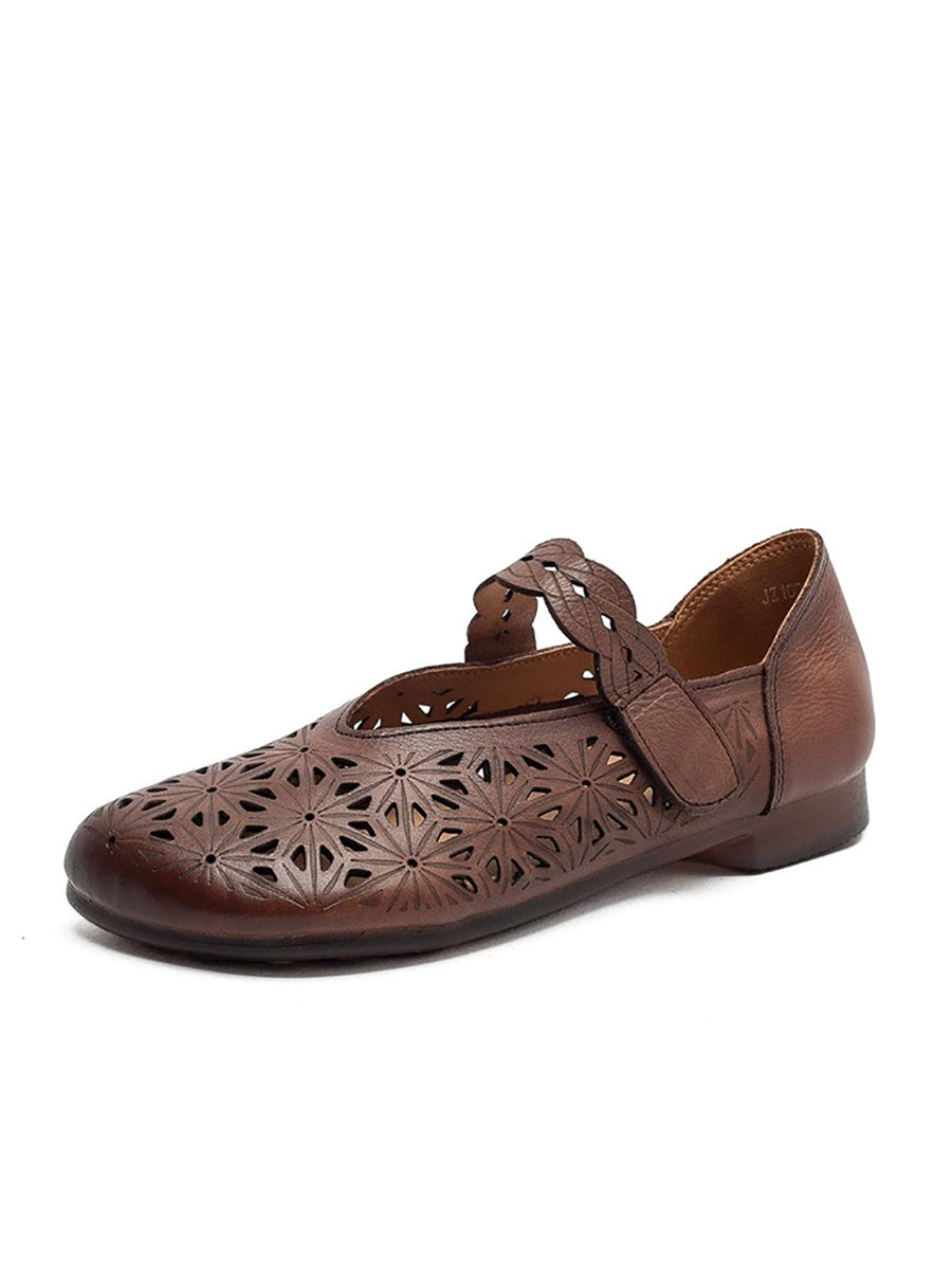 Women Genuine Leather Hollow Out Low Heel Sandals