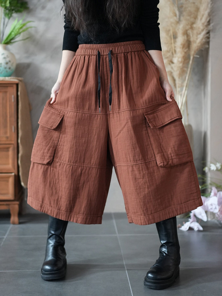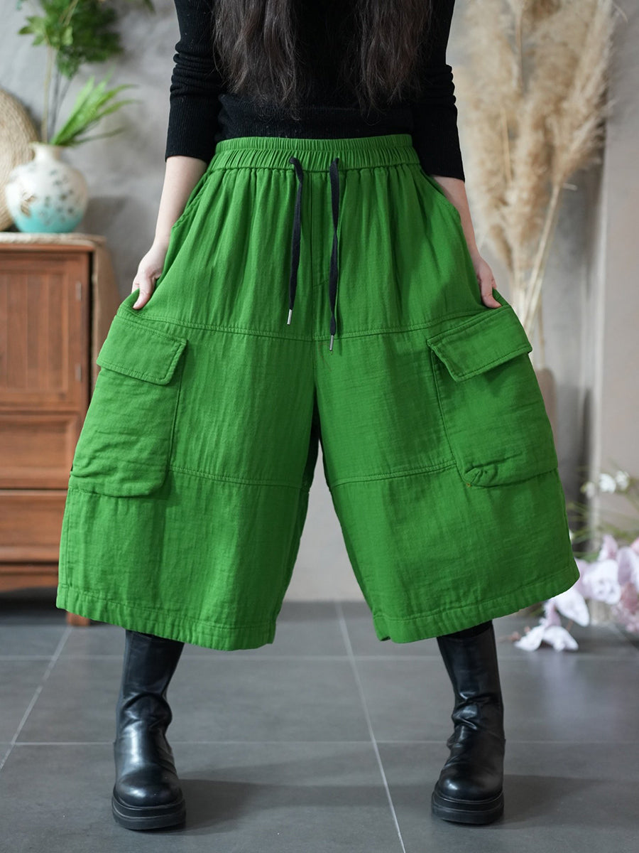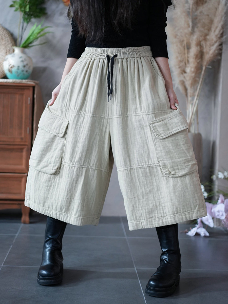 Women Spring Pure Color Wide-leg Capri Pants