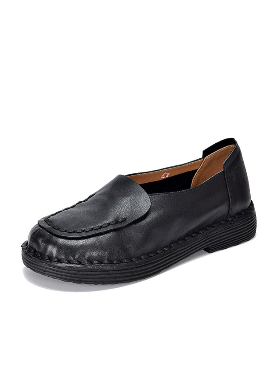 Women Spring Retro Genuine Leather Spliced Low Heel Shoes