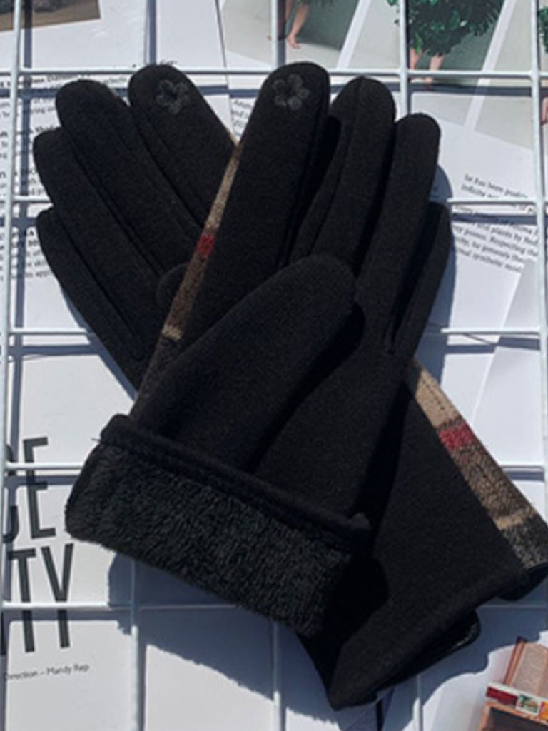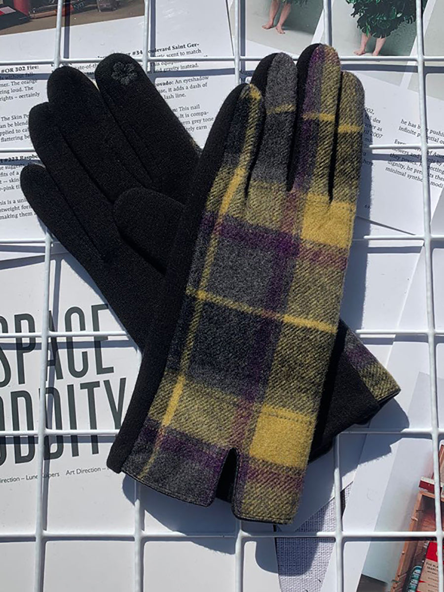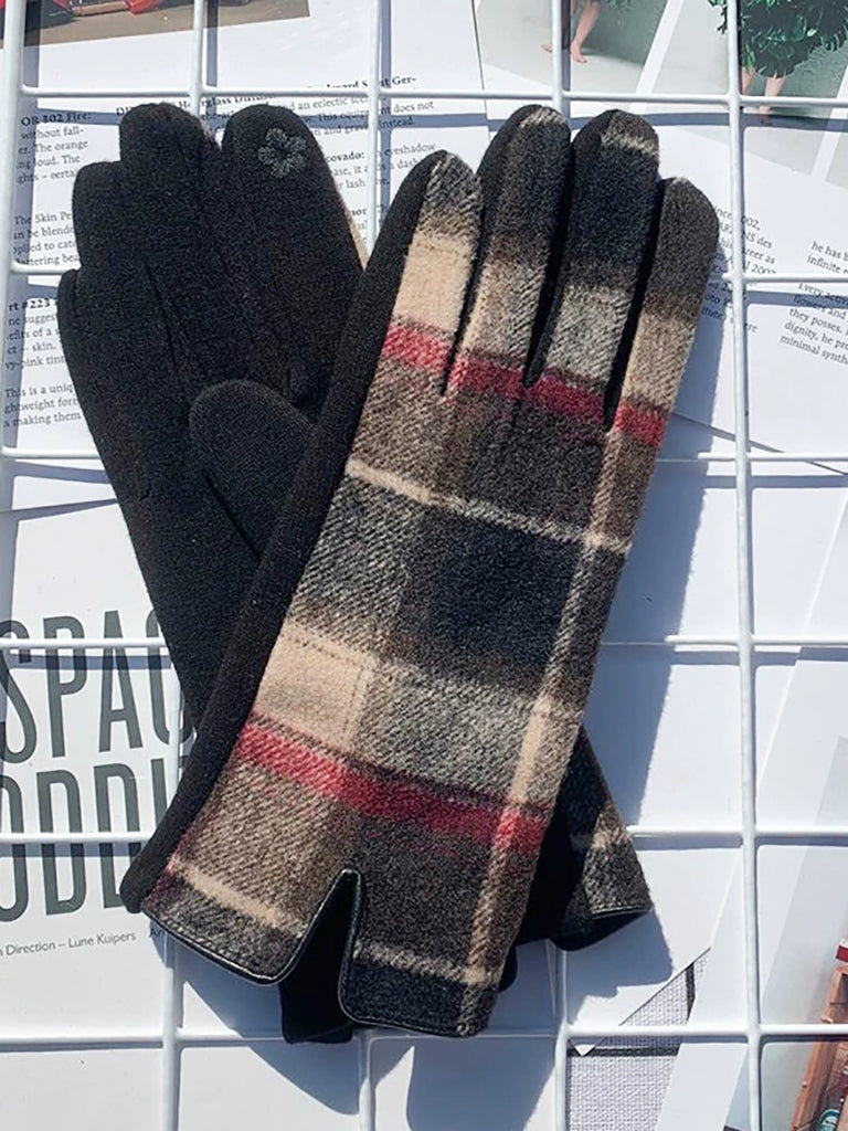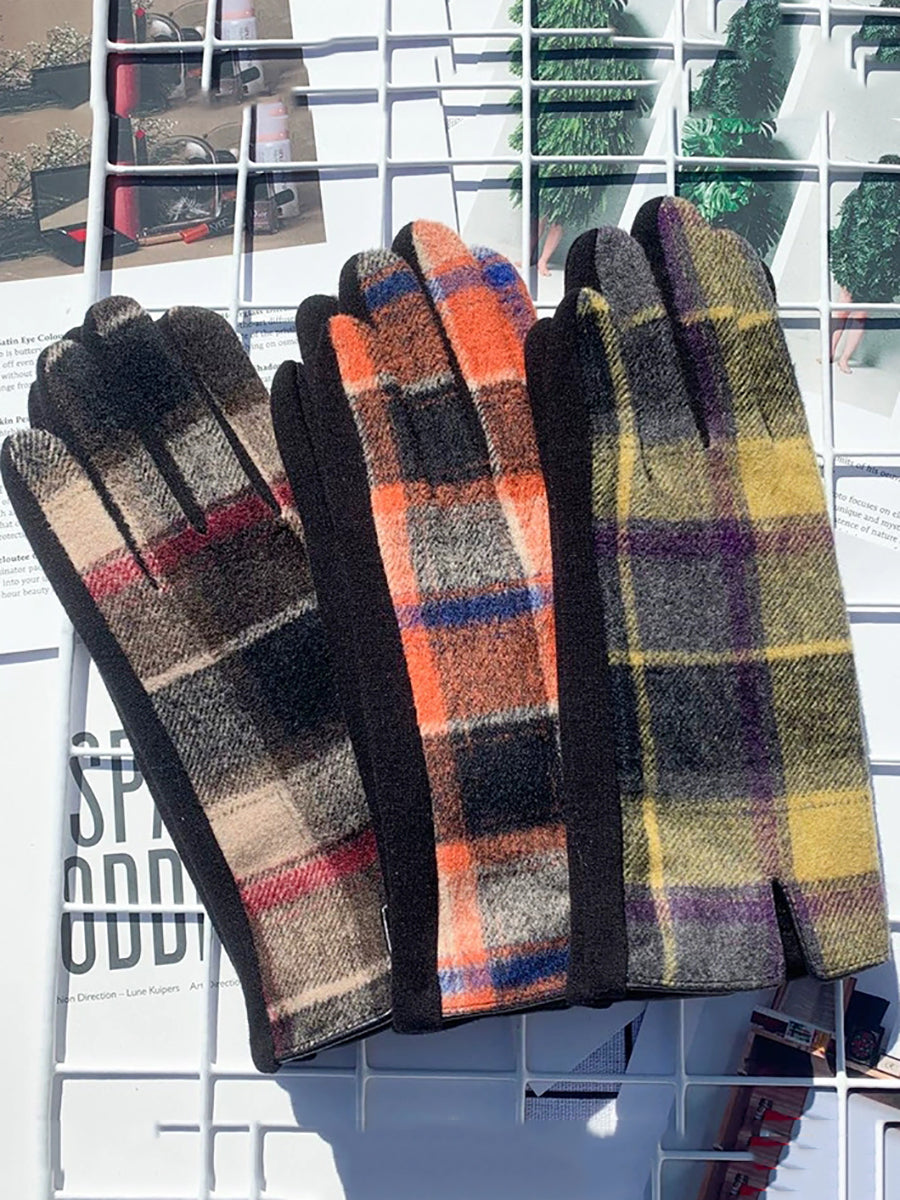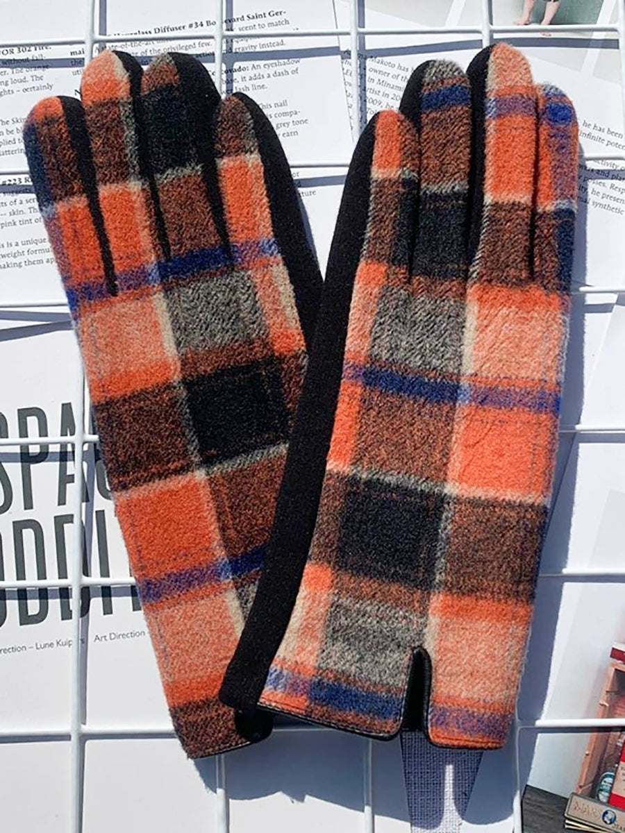 Women Ethnic Plaid Warm Touchscreen Cycling Gloves