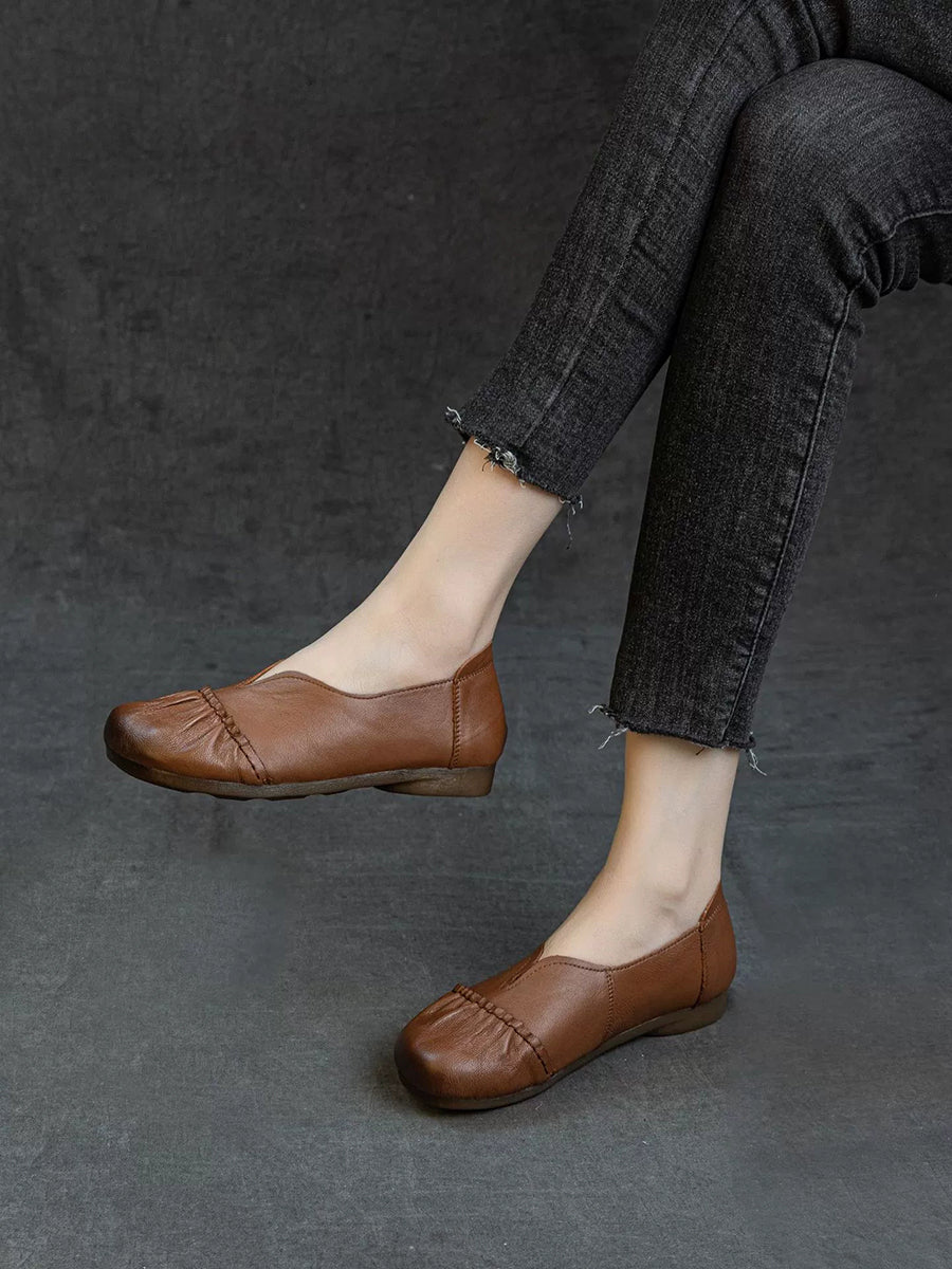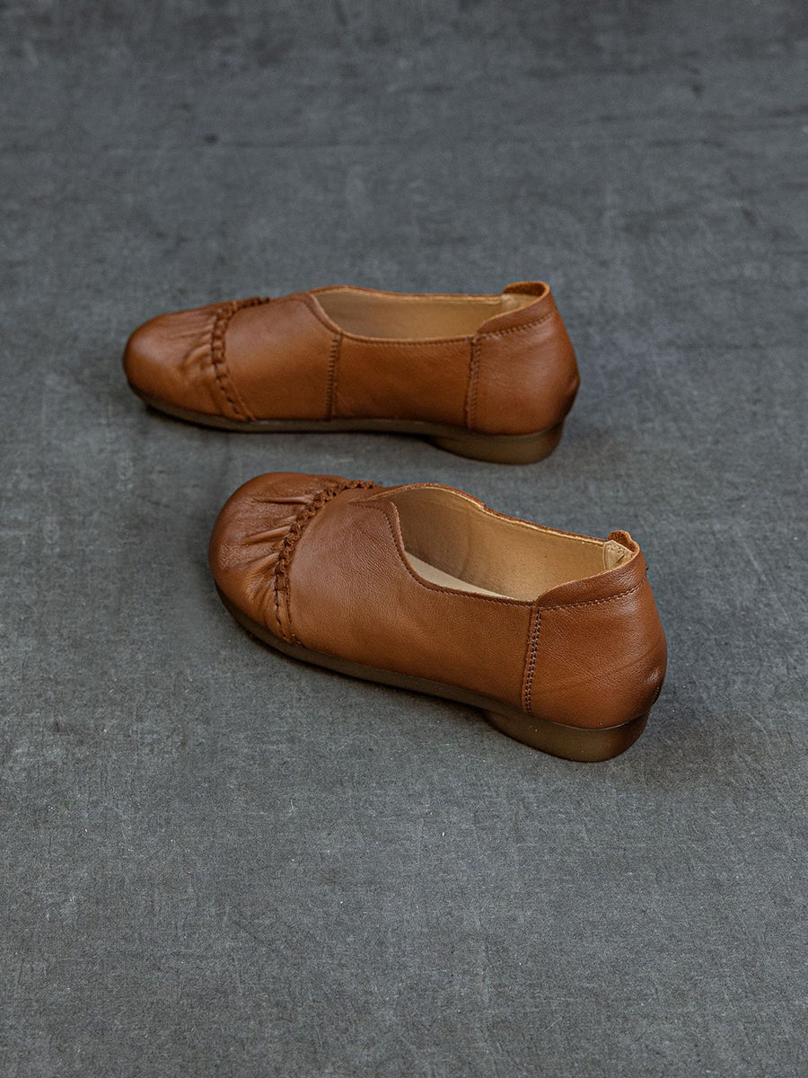 Women Spring Genuine Leather Spliced Low Heel Shoes