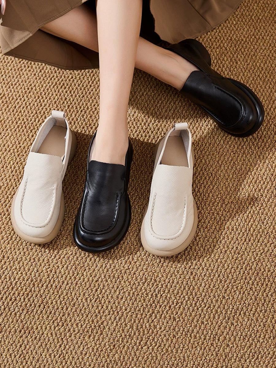 Women Spring Genuine Leather Spliced Low Heel Shoes