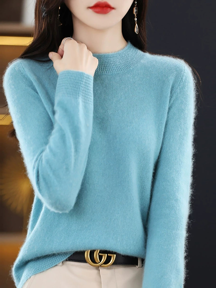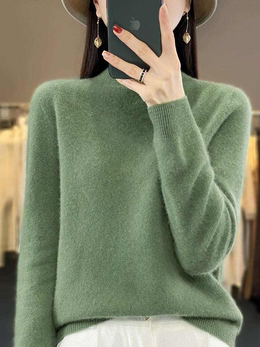 Women Artsy Spring Pure Color Half-Turtleneck Sweater