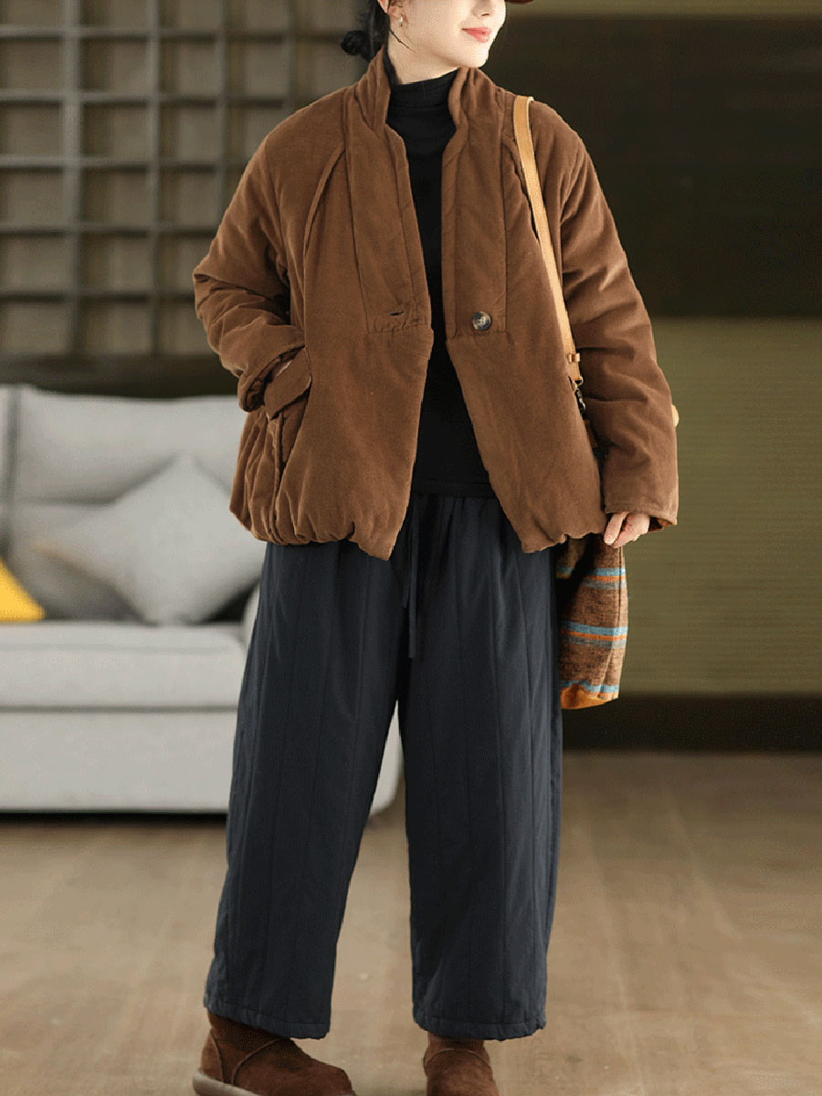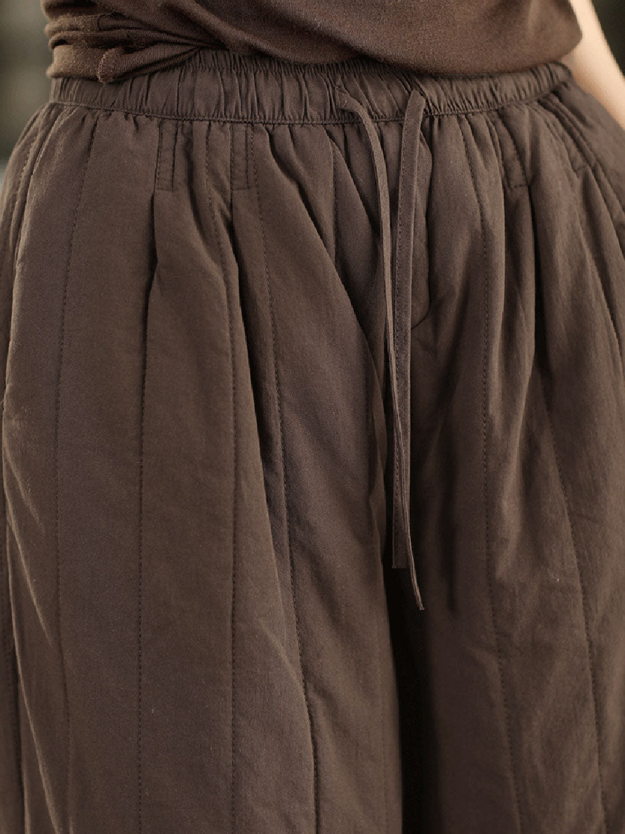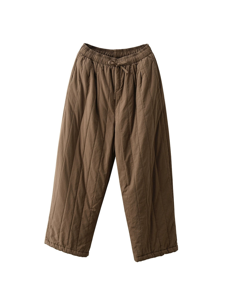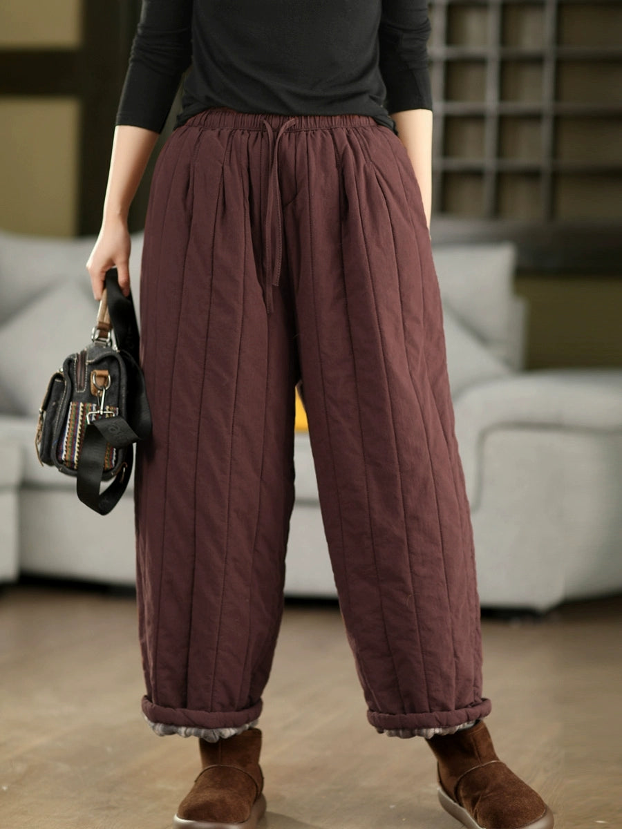 Women Winter Retro Pure Color 100%Cotton Padded Pants