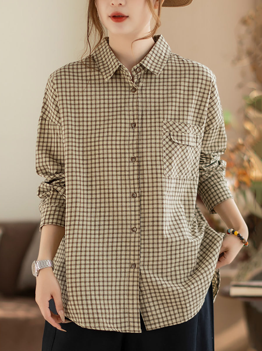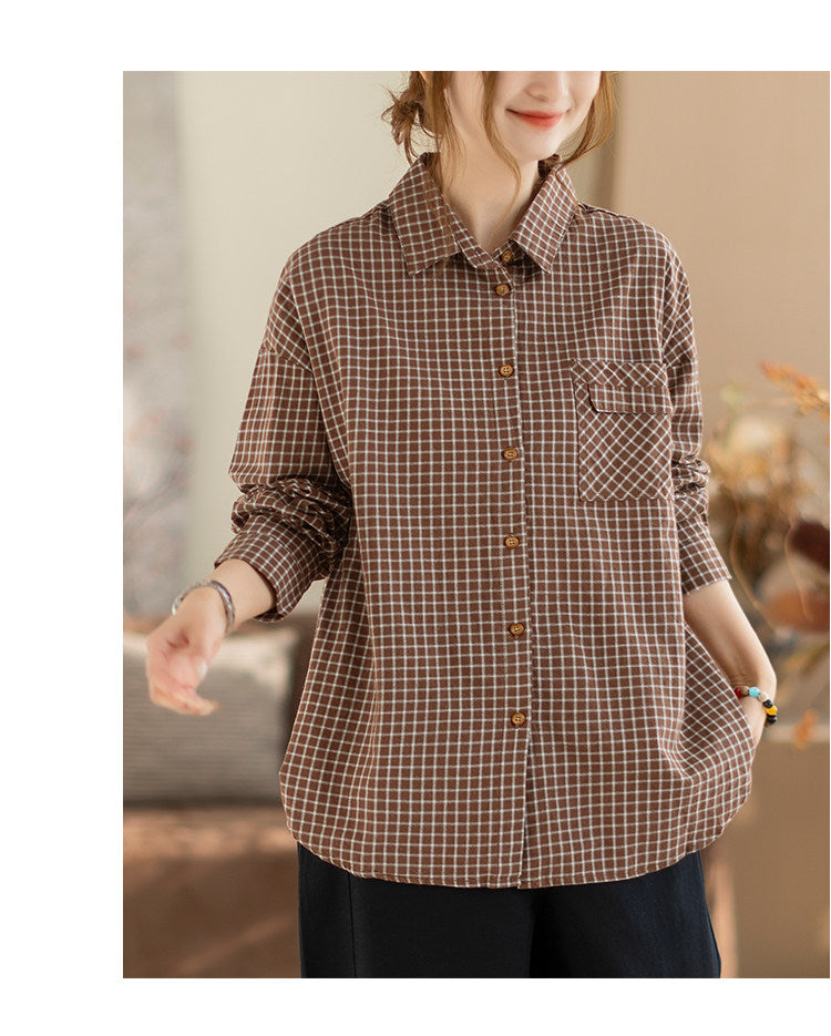 Women Spring Artsy Lattice Turn-down Collar Shirt