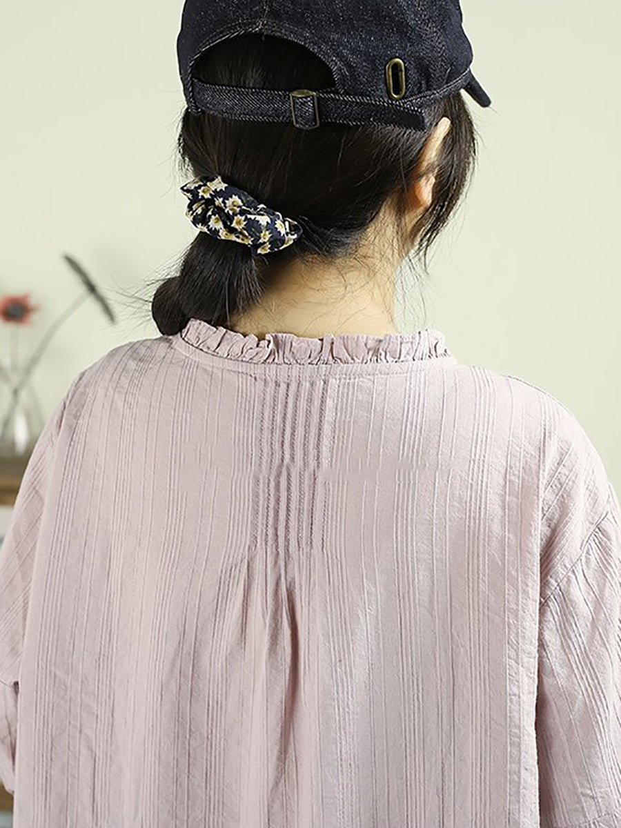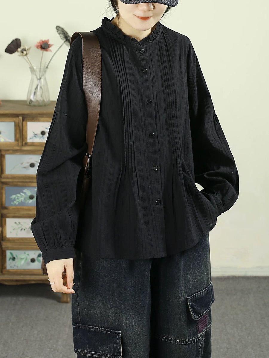 Women Spring Artsy Pure Color Shiired Stand Colalr Shirt