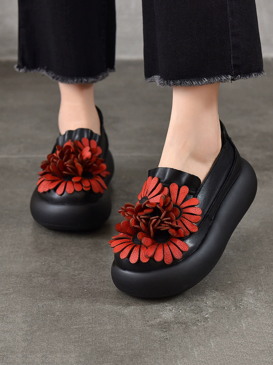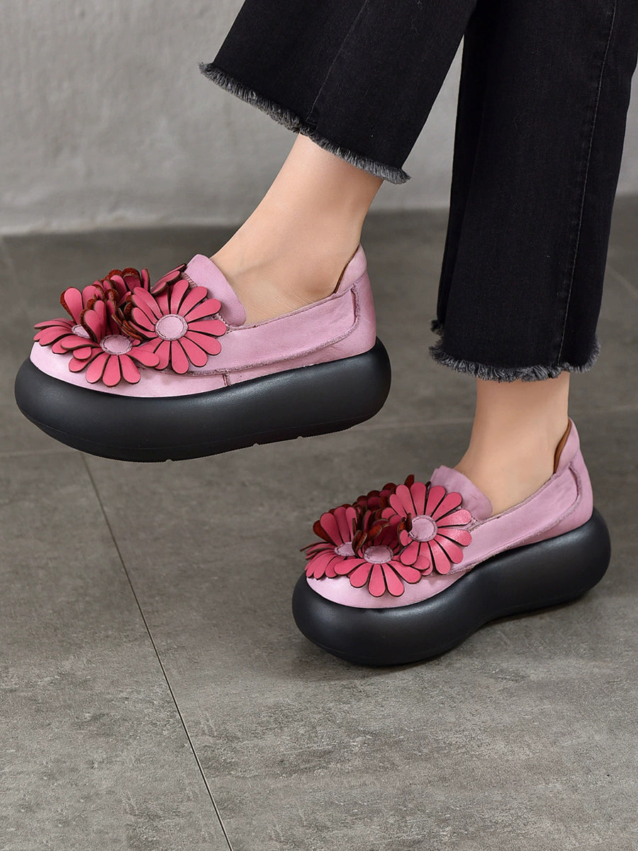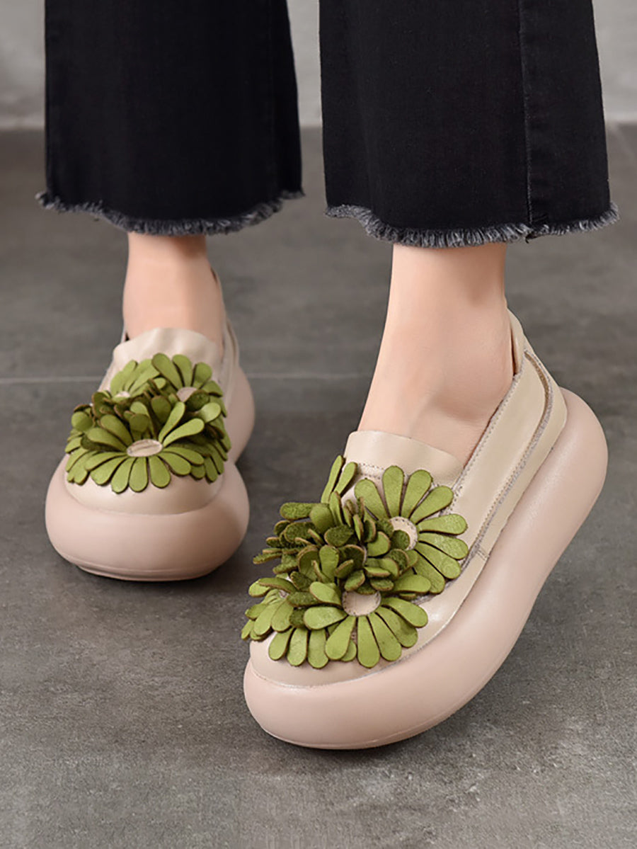 Women Spring Genuine Leather Flower Spliced Platform Shoes