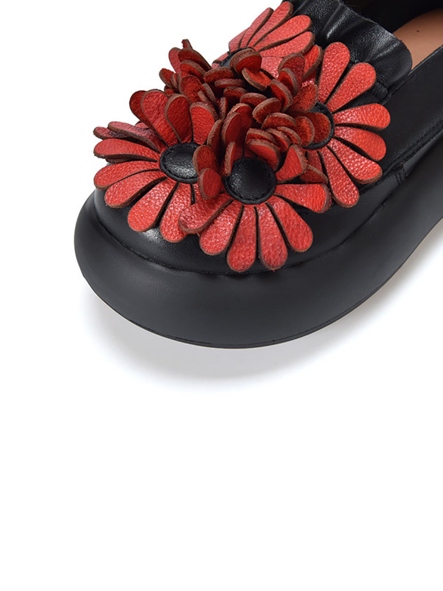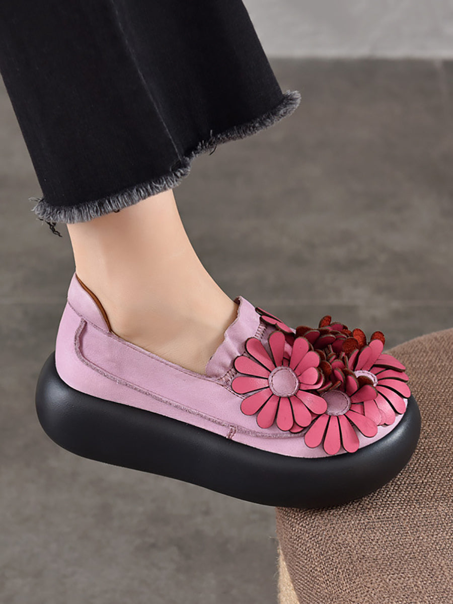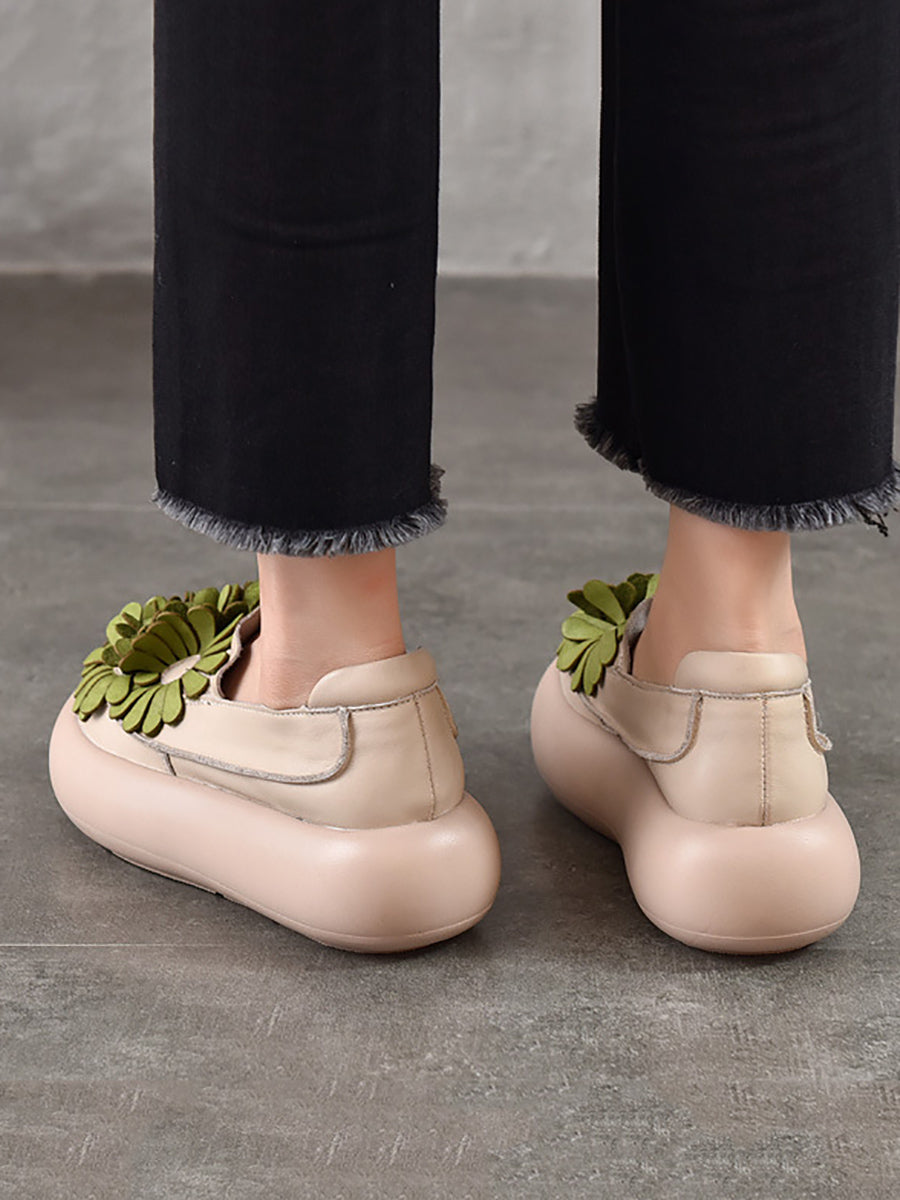 Women Spring Genuine Leather Flower Spliced Platform Shoes